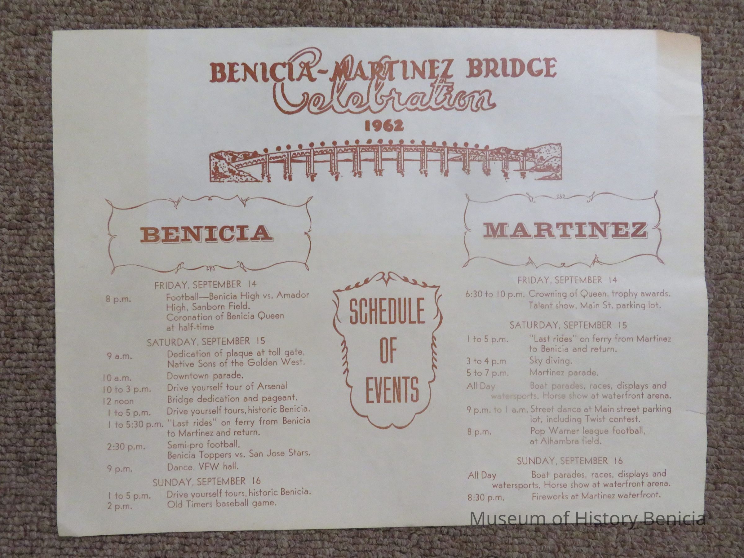 Flyer on Benicia-Martinez Bridge Celebration 1962