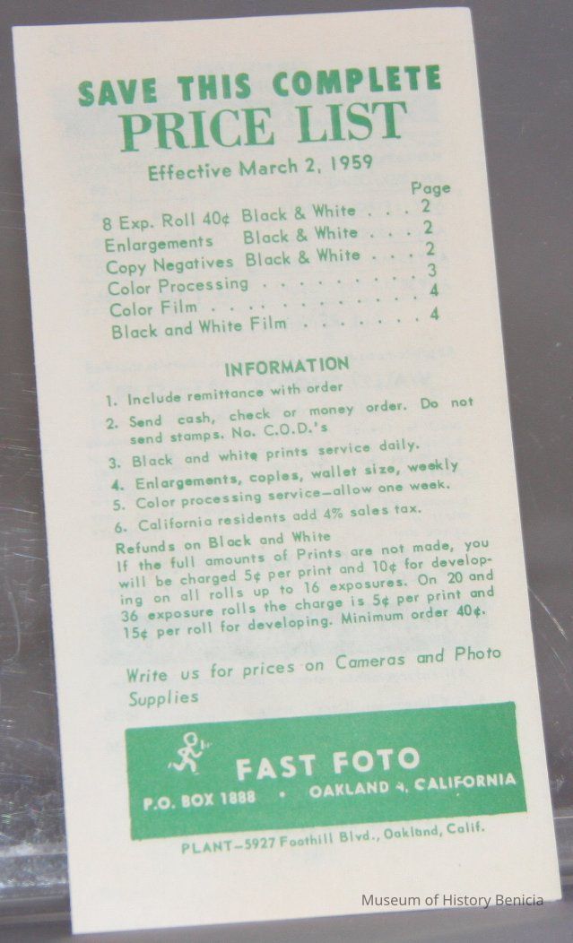 Order form for Fast Foto, Oakland CA. Green and white colors.