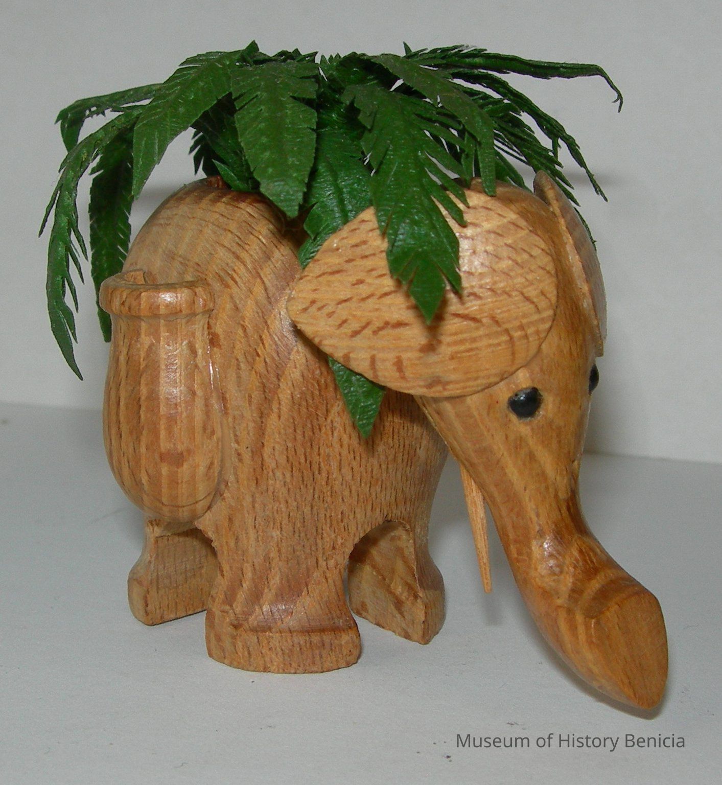 Wooden elephant planter with fern