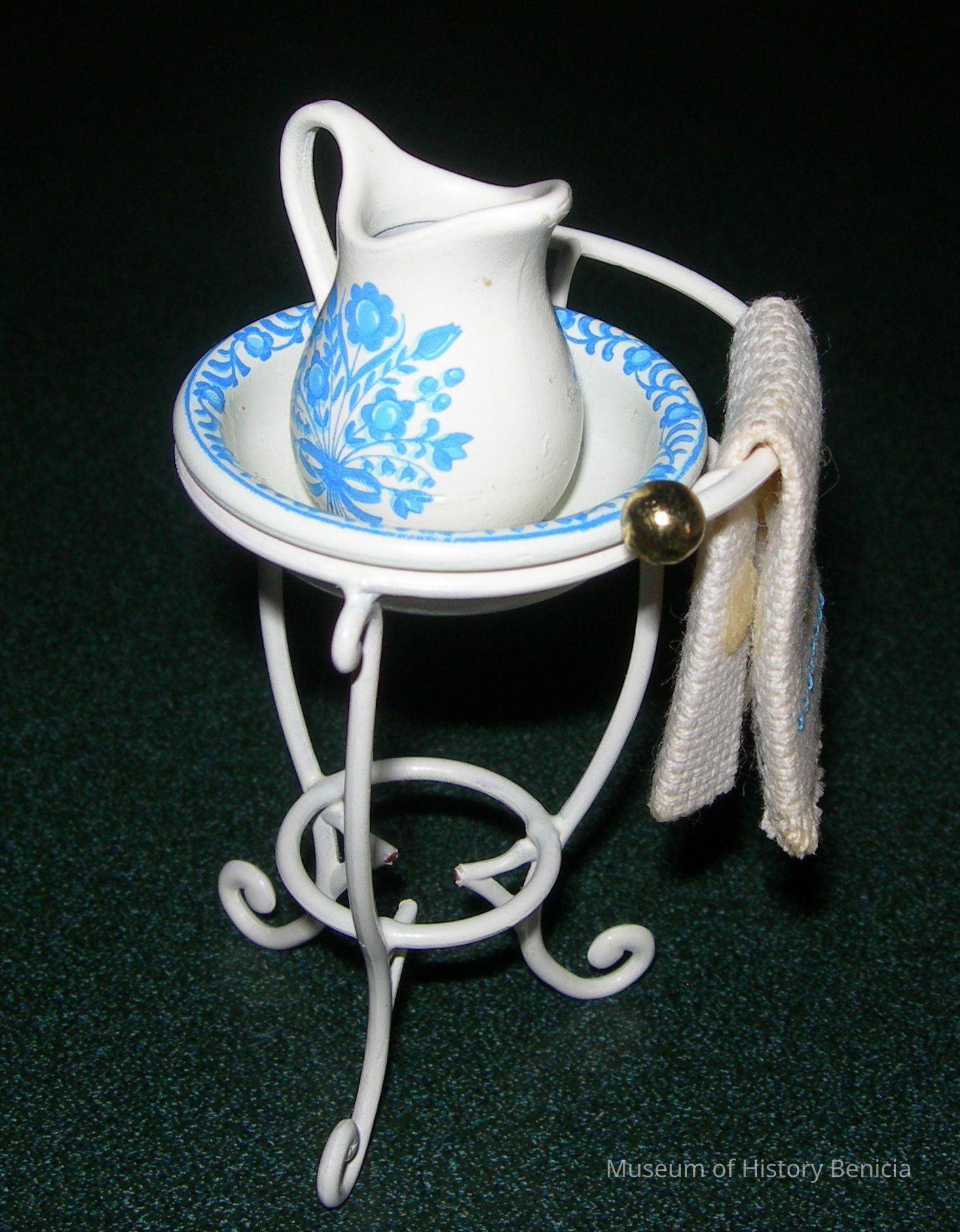 Four piece set - bowl and pitcher in a stand with a towel