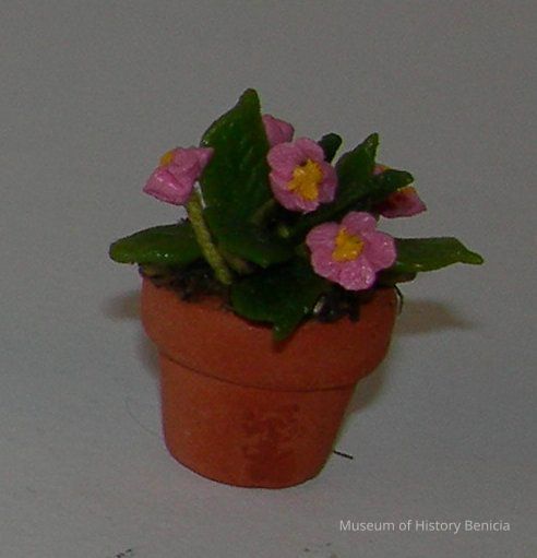 Potted plant - small pink flowers, green leaves in terracotta pot