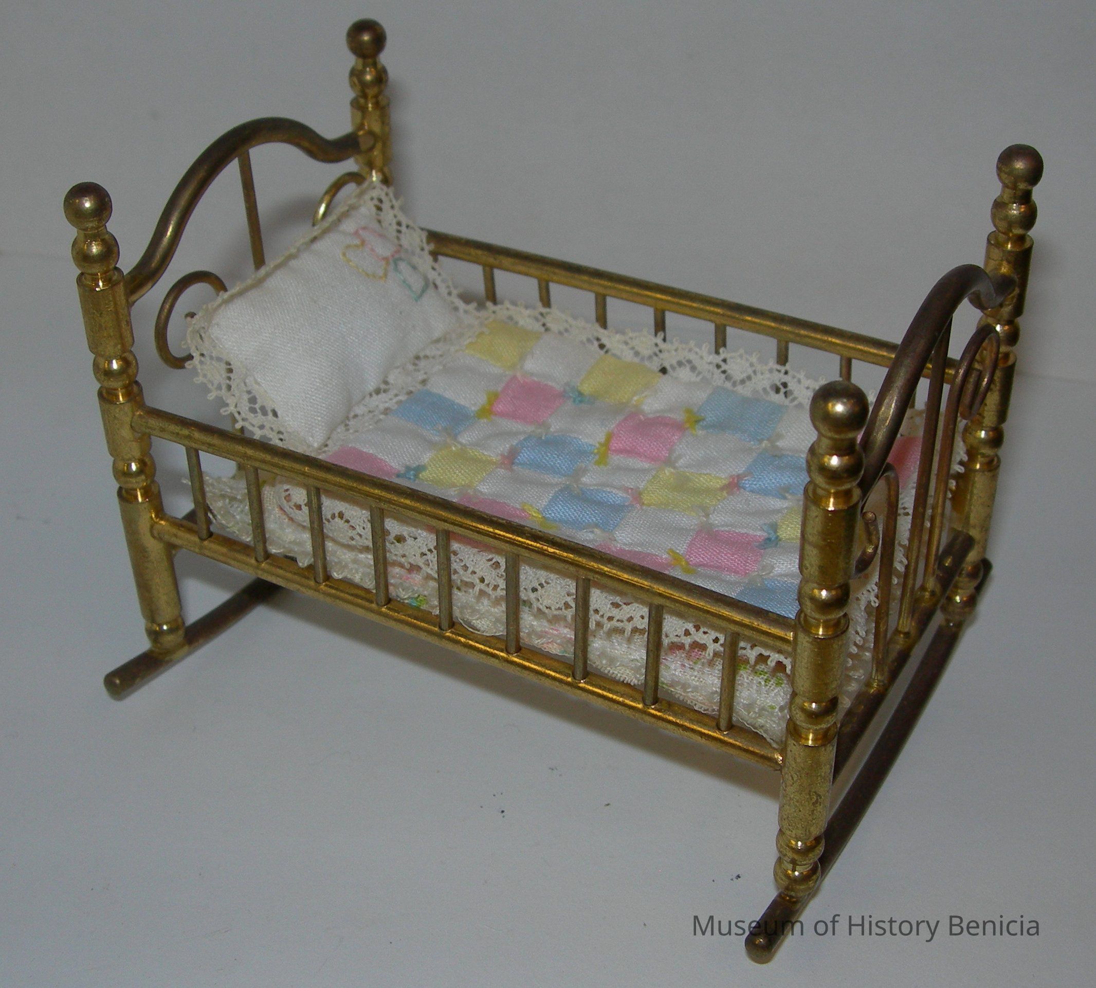 Rocking Crib/Cradle - gold color metal (slightly tarnished)