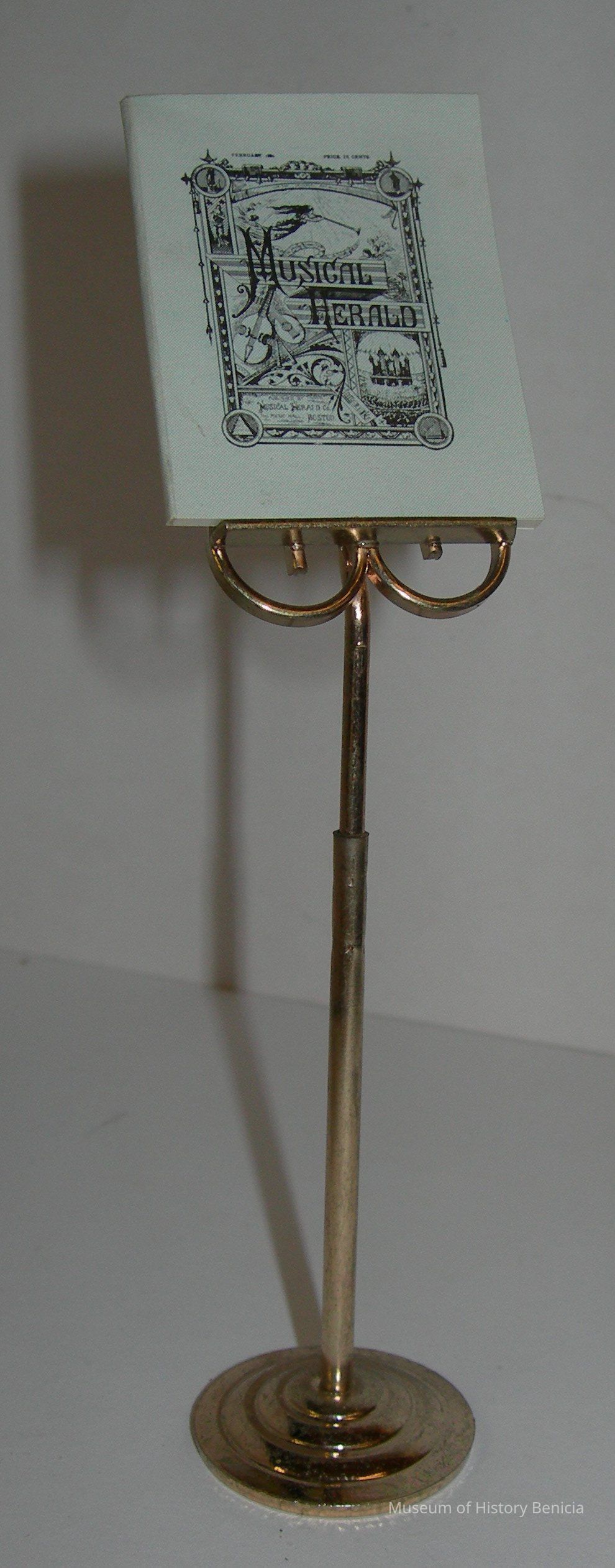 Metal music stand with "Musical Herald" booklet booklet - not with dollhouse - in storage 2/C26