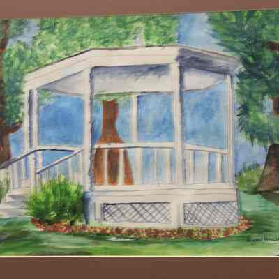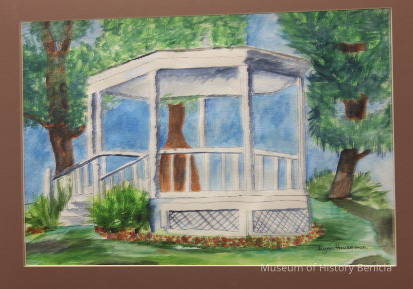 "Gazebo in City Park" watercolor painting done by Ryan Houseman in 1995, a Benicia Middle School student matted and mounted on foamcore