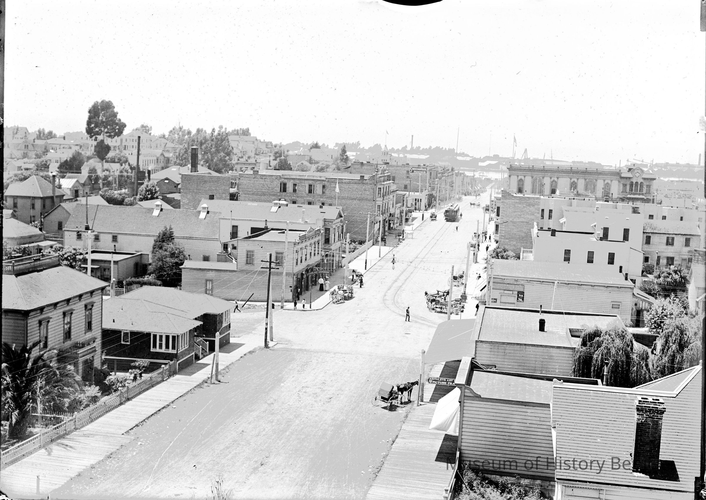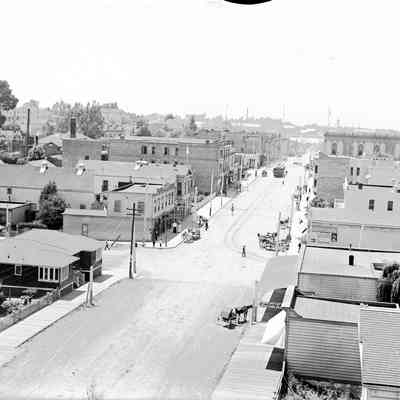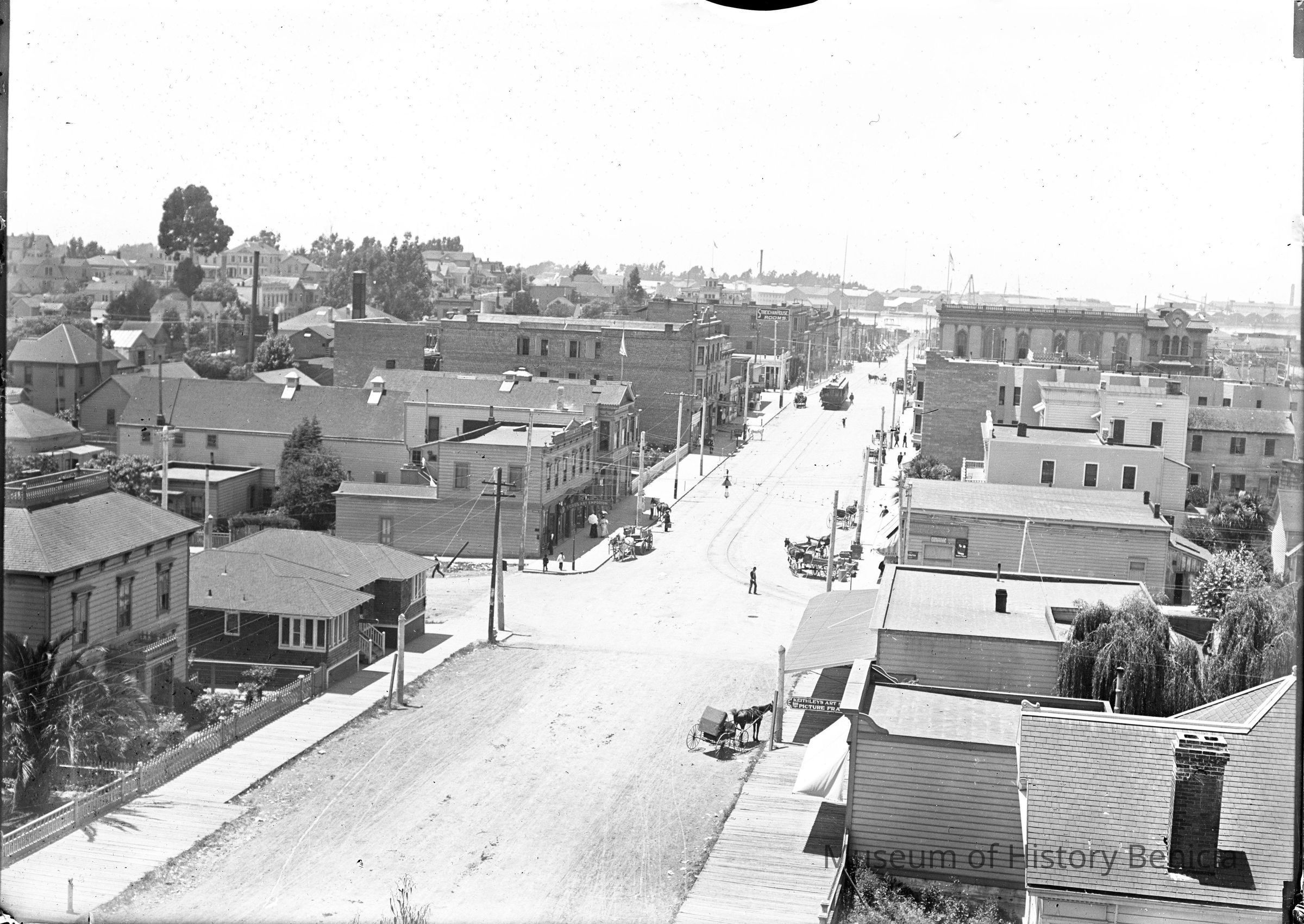 The image is of Vallejo from Wilson's Peak looking down Georgia Street. Based on the businesses shown in the image it was taken about 1910.