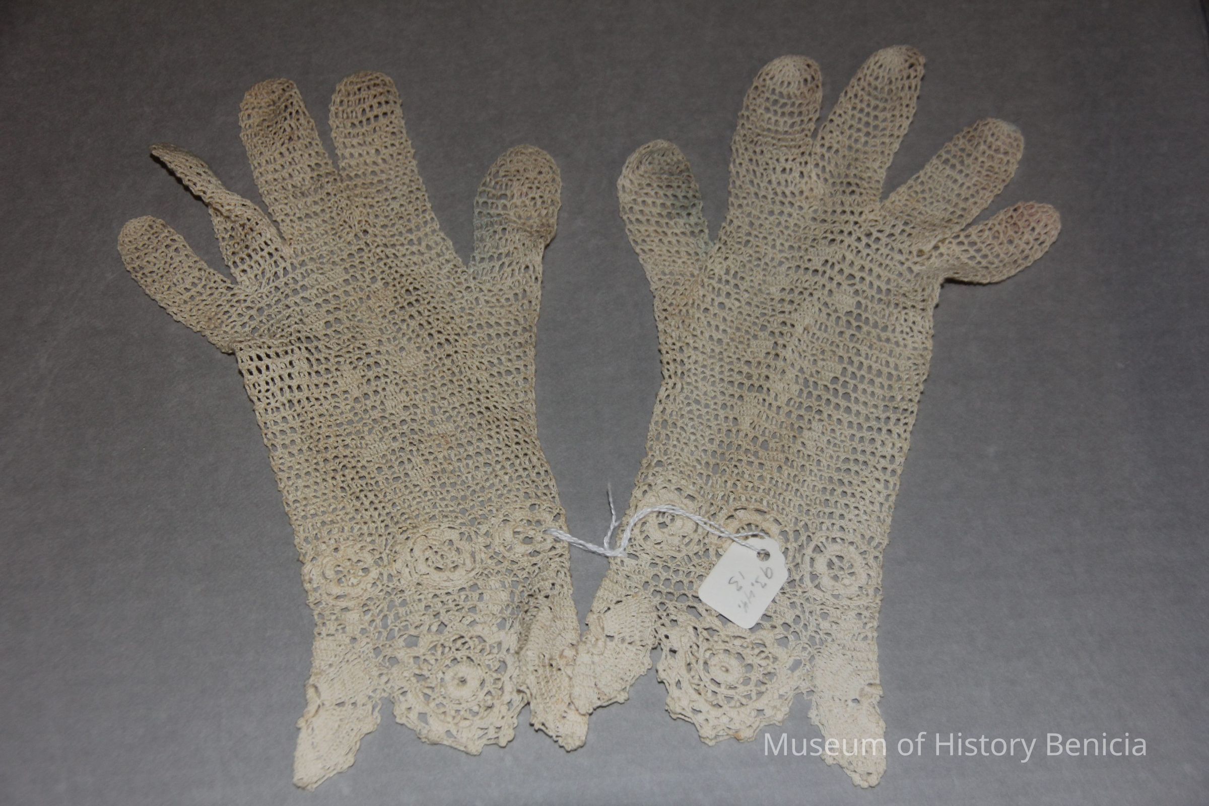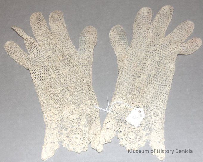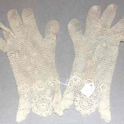 lace gloves - Open needlework with scalloped edges. White