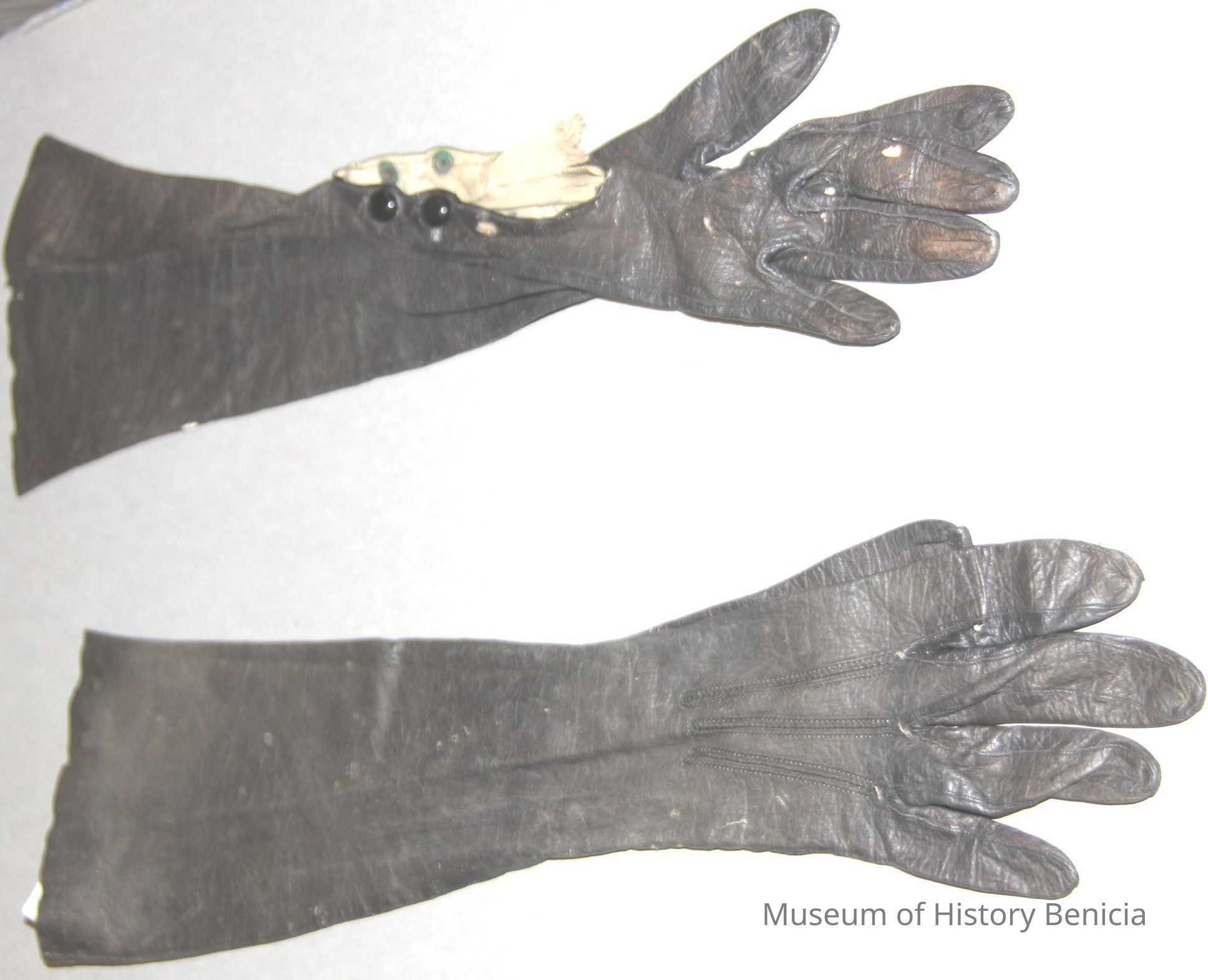 Brown kid gloves with snaps