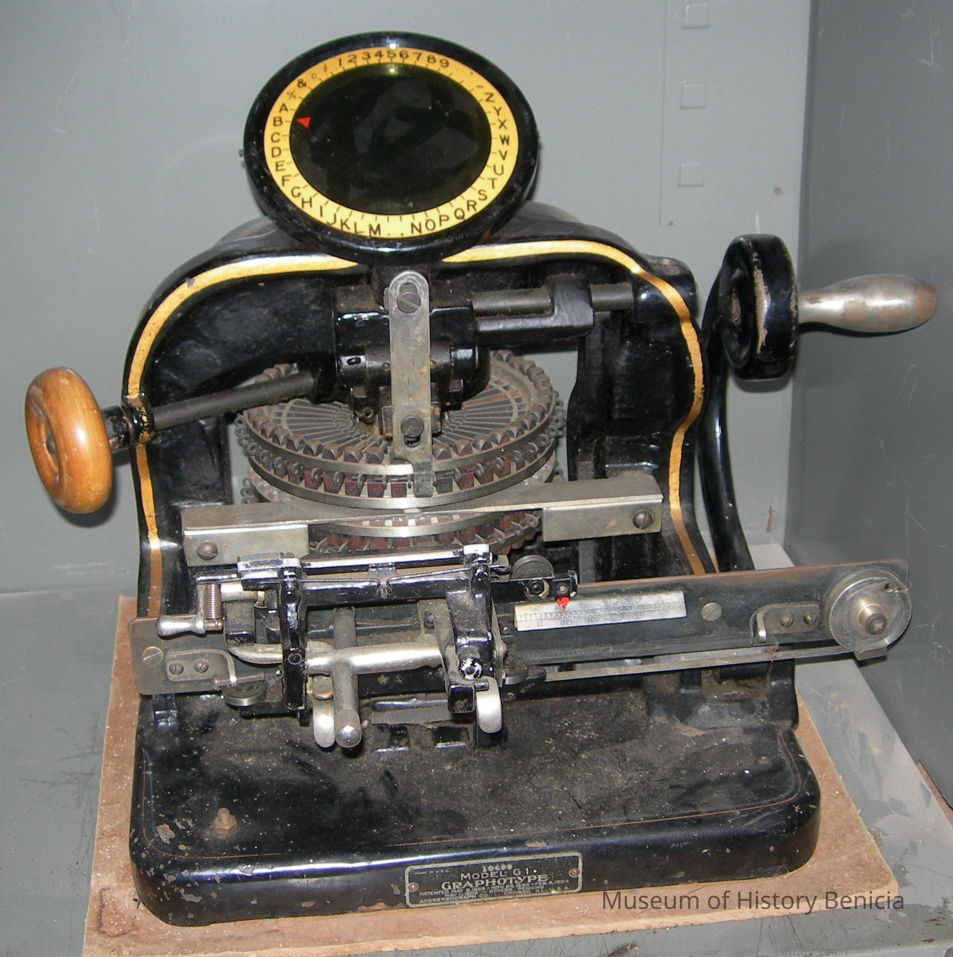 Graphotype model G1 #10499 Black. Patented May 9, 1899, November 28, 1899, February 2, 1904, & May 11, 1908.