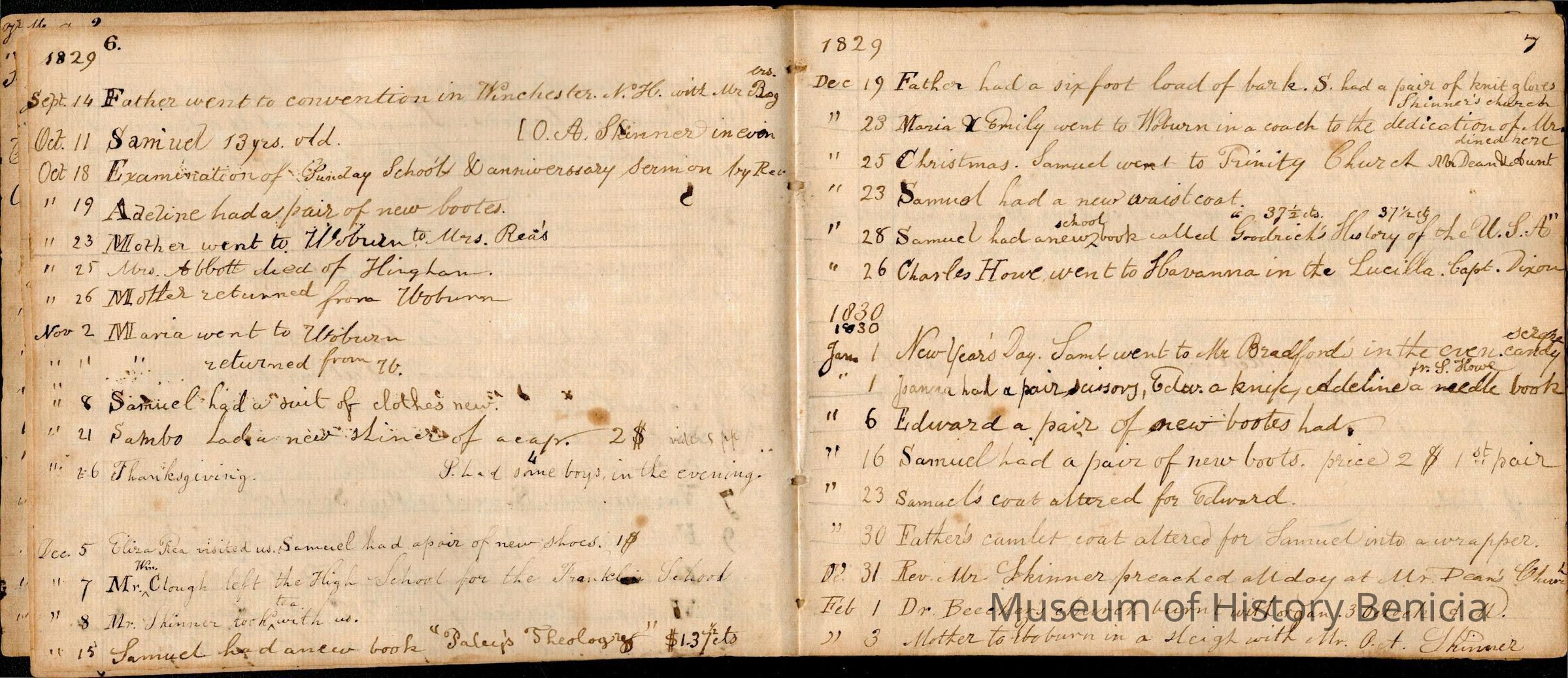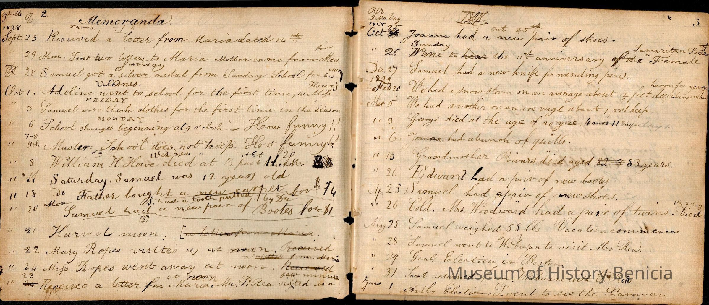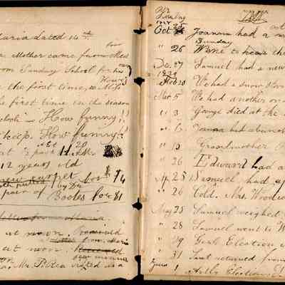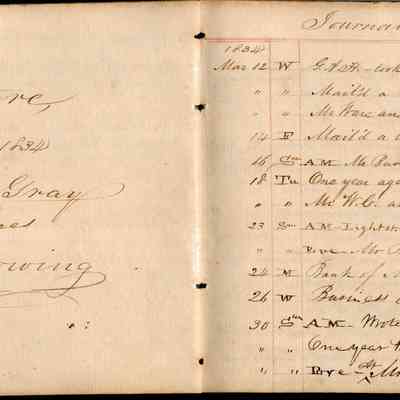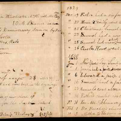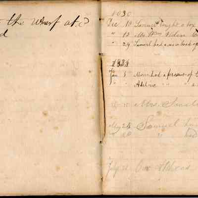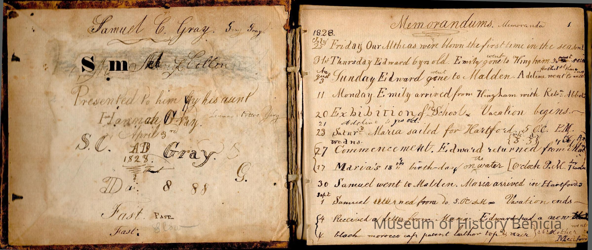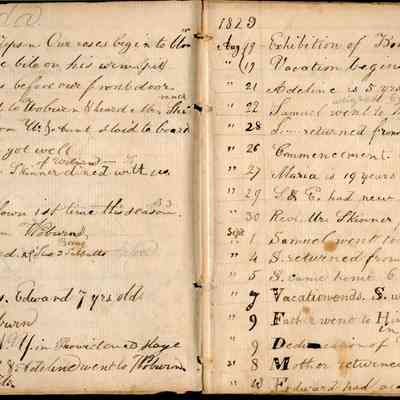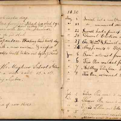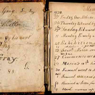 This is an early diary kept by Samuel Gray starting in 1828. The book was kept by Samuel thru 1837 with some entries by his mother Joanna Gray.