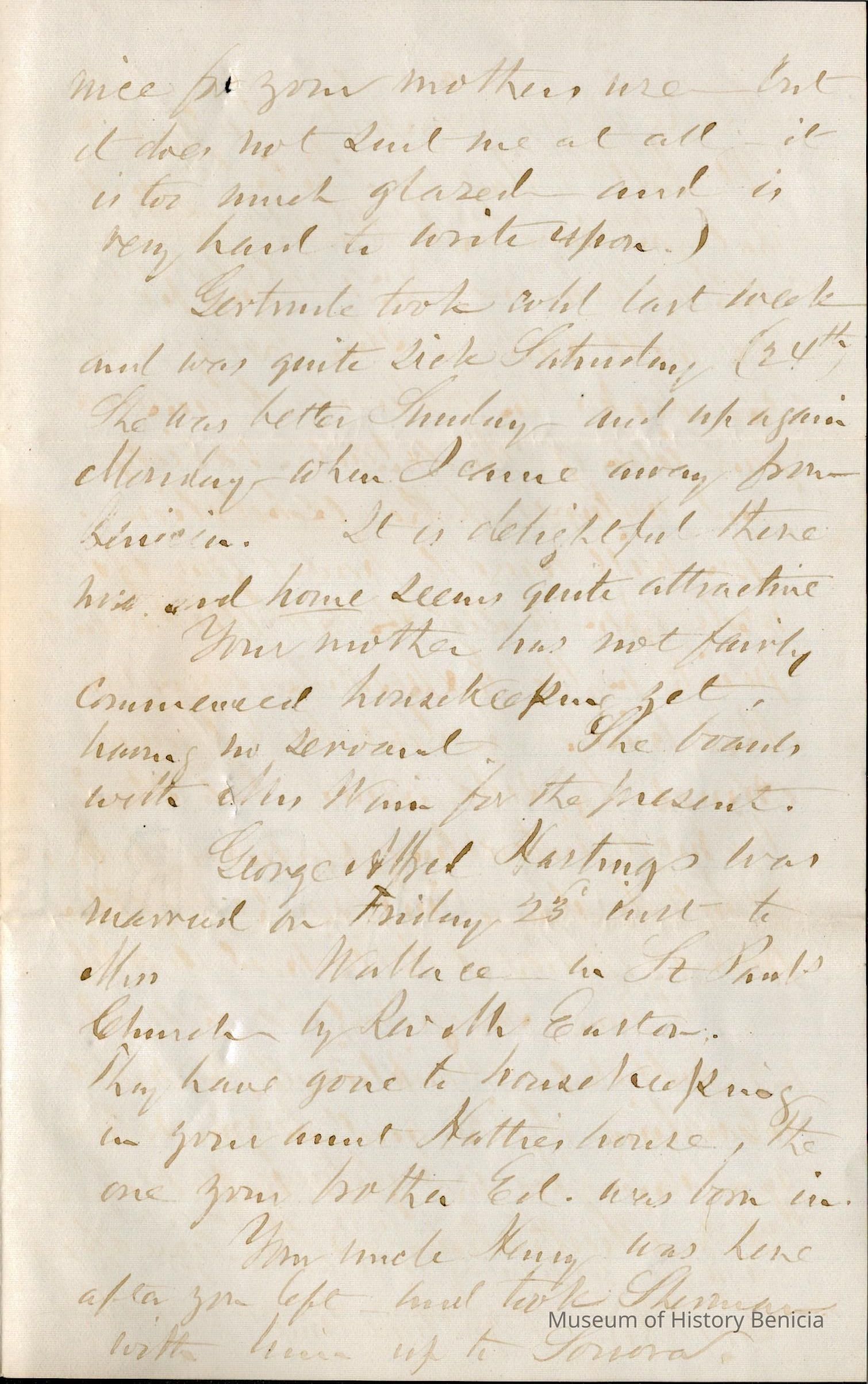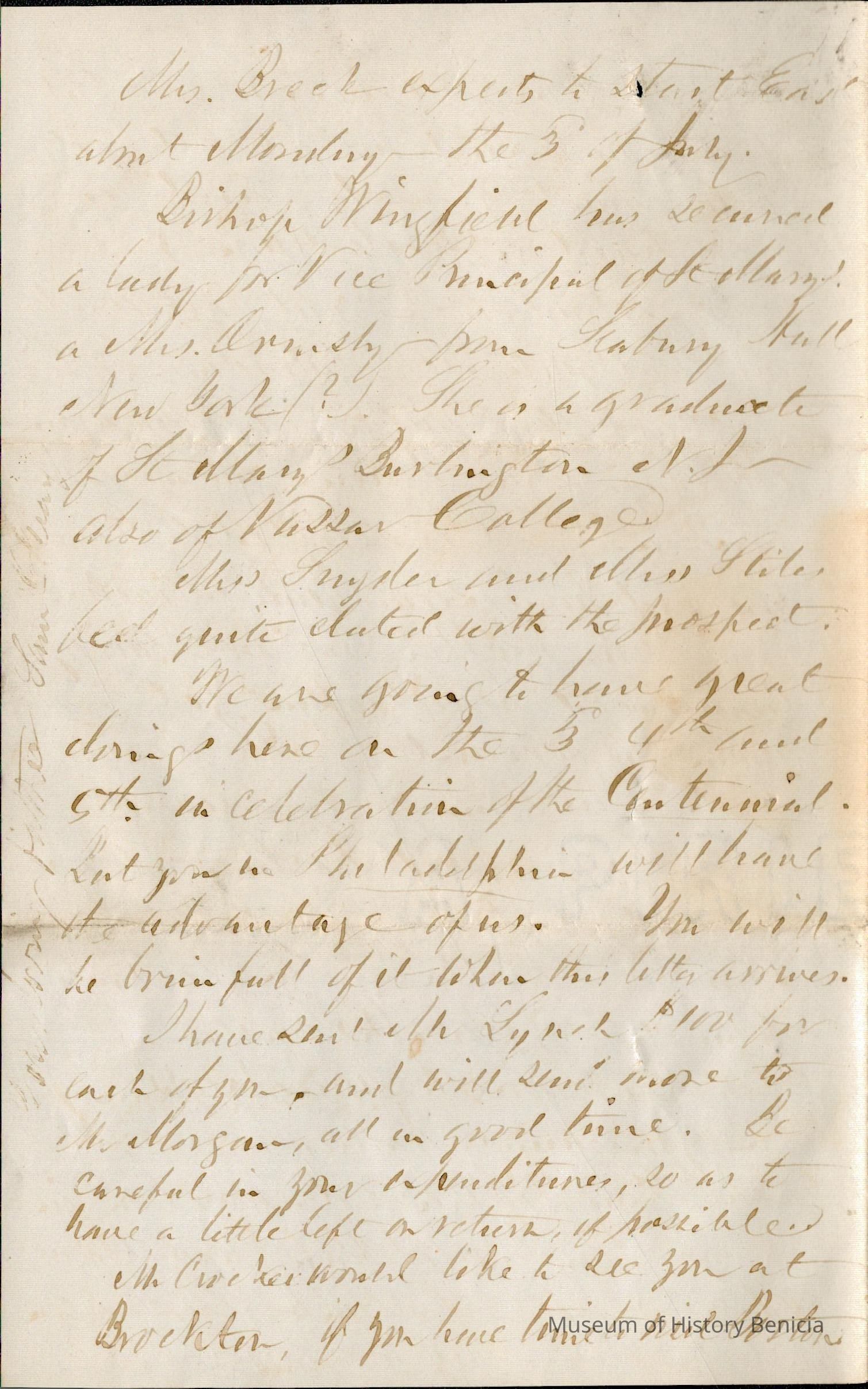 The rest of the letter talks of local news and family. He does mention a new vice principal at St. Mary's (Mrs. Ormsby) and other people who have been traveling.