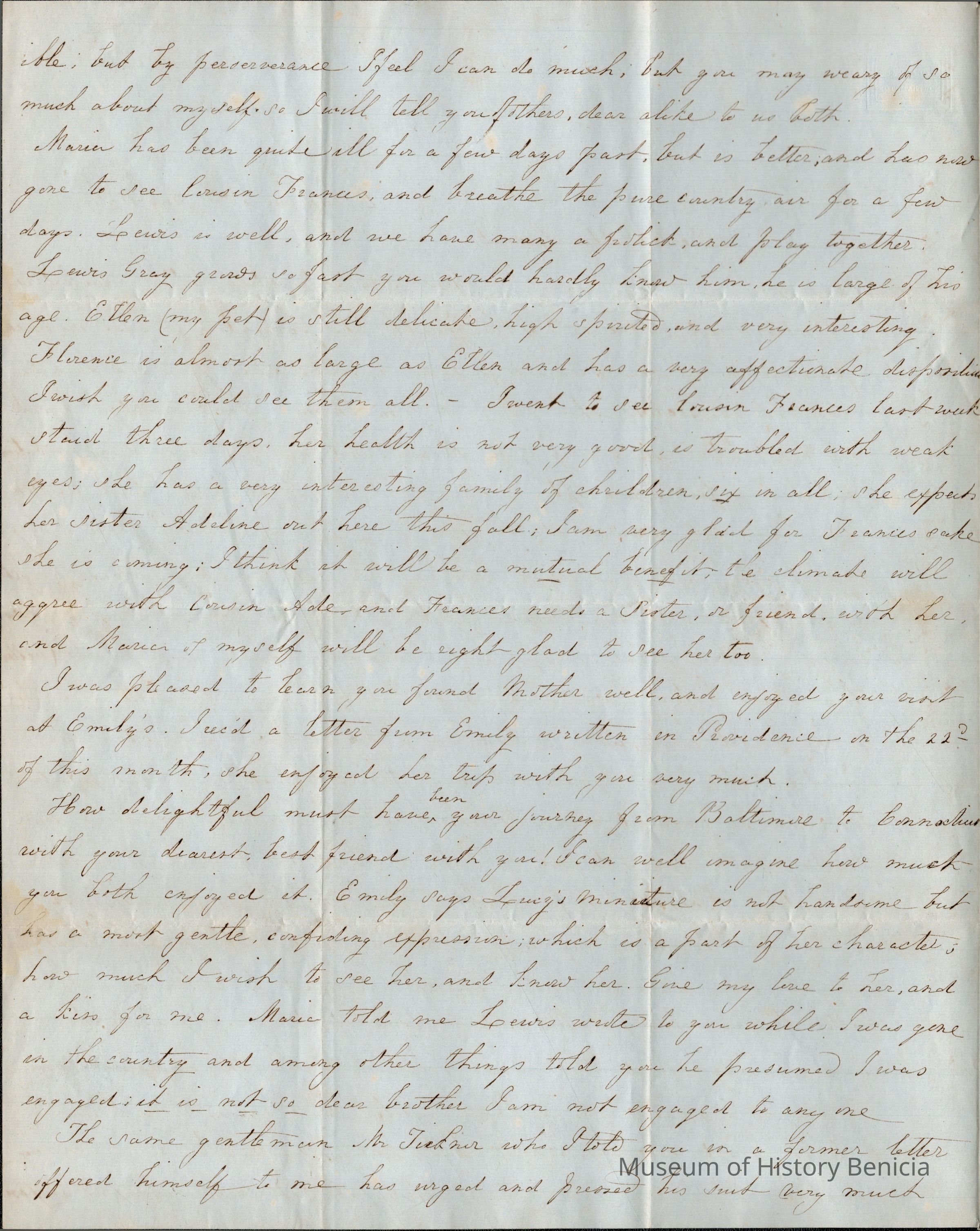 She mentioned letters she has to respond to including a very affectionate letter from William Blanding (he was noted in a letter in 1844 as having proposed to Mary).