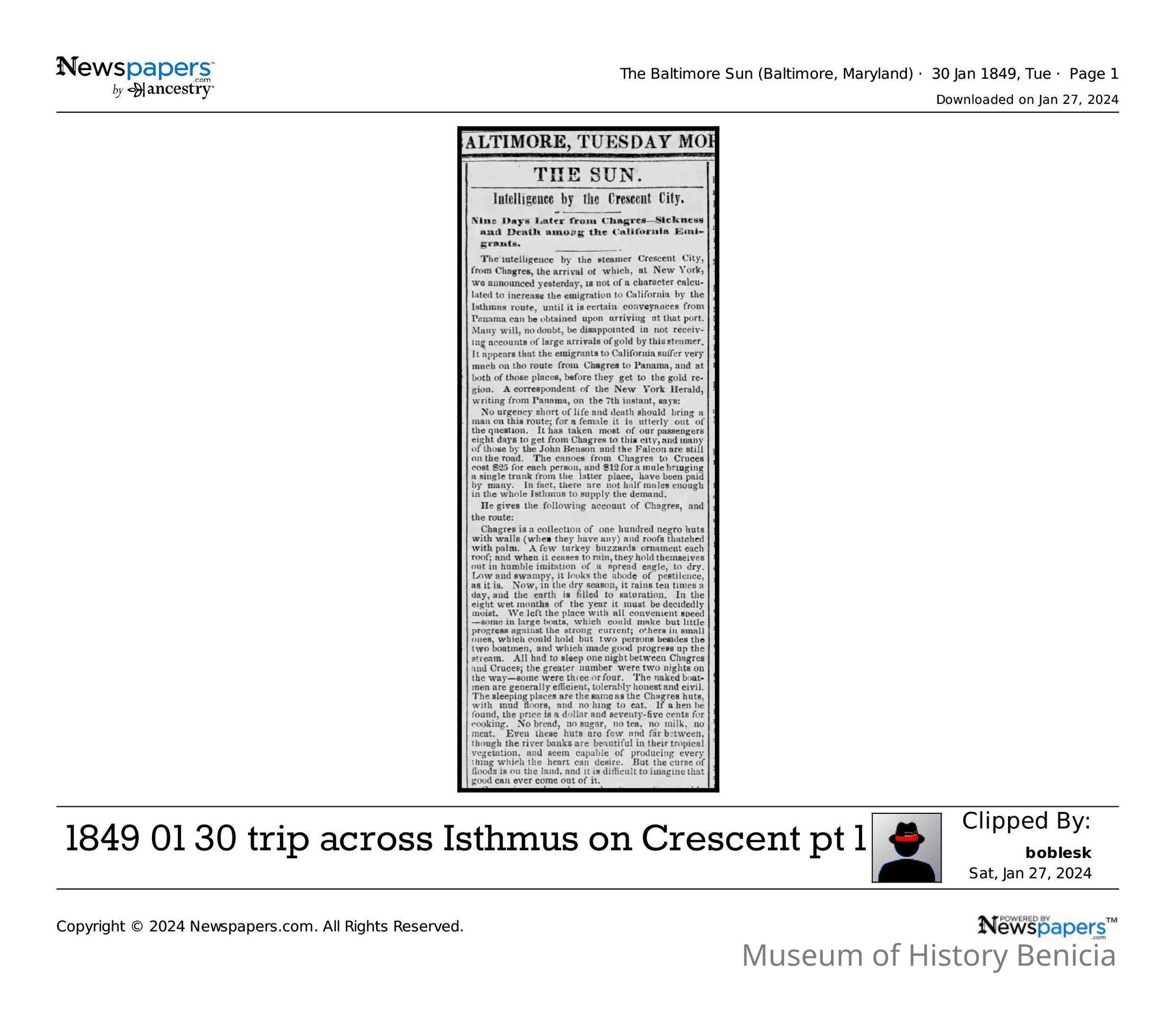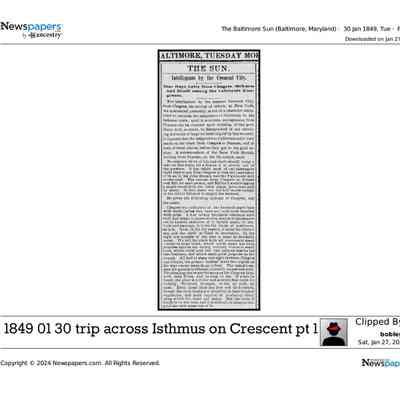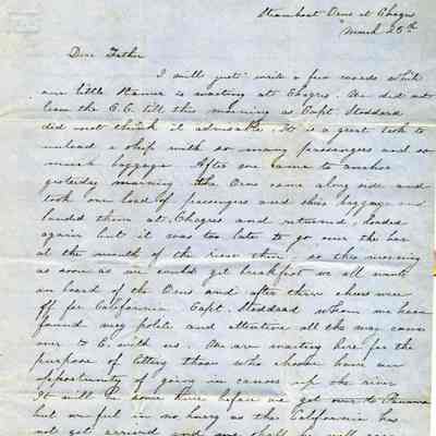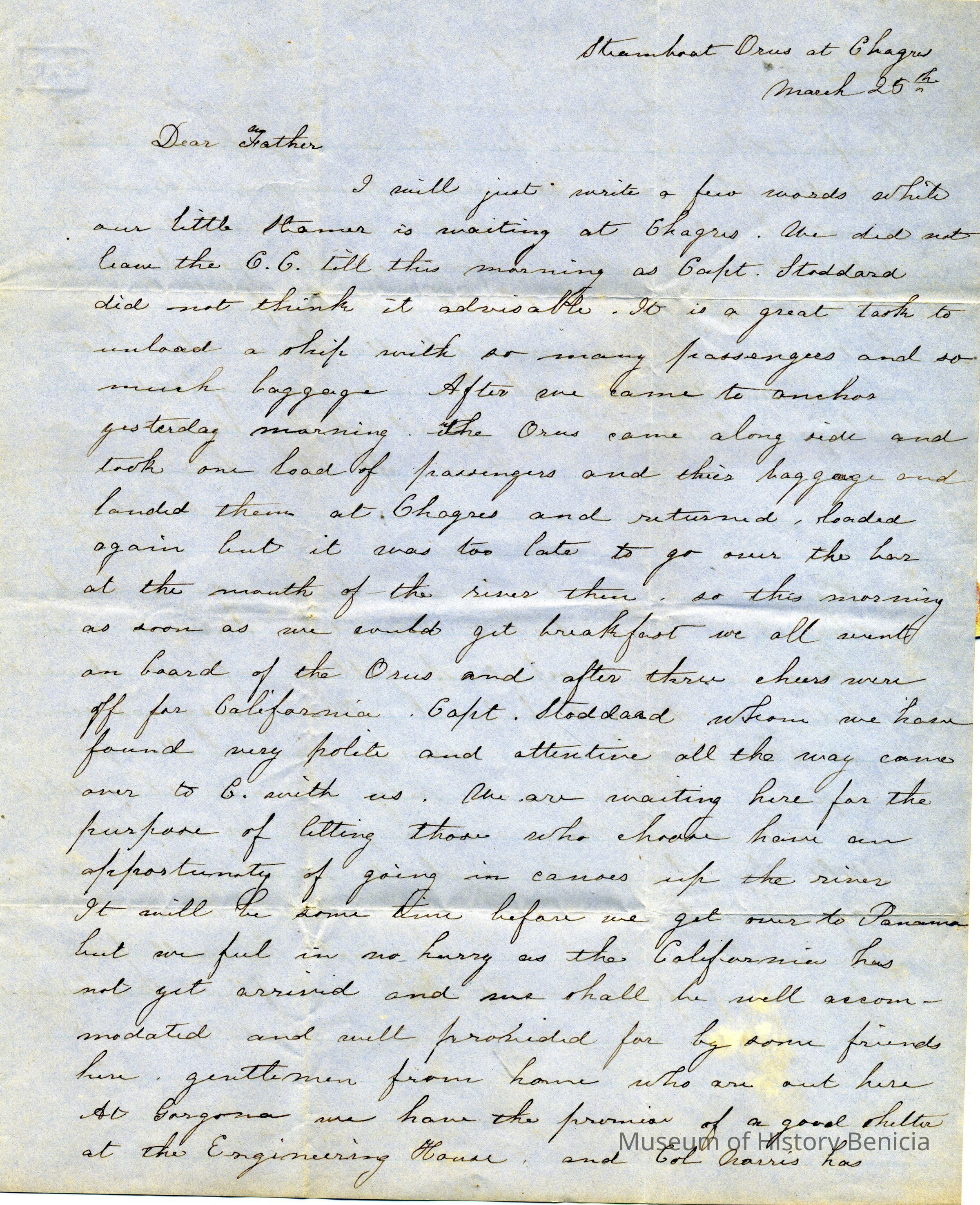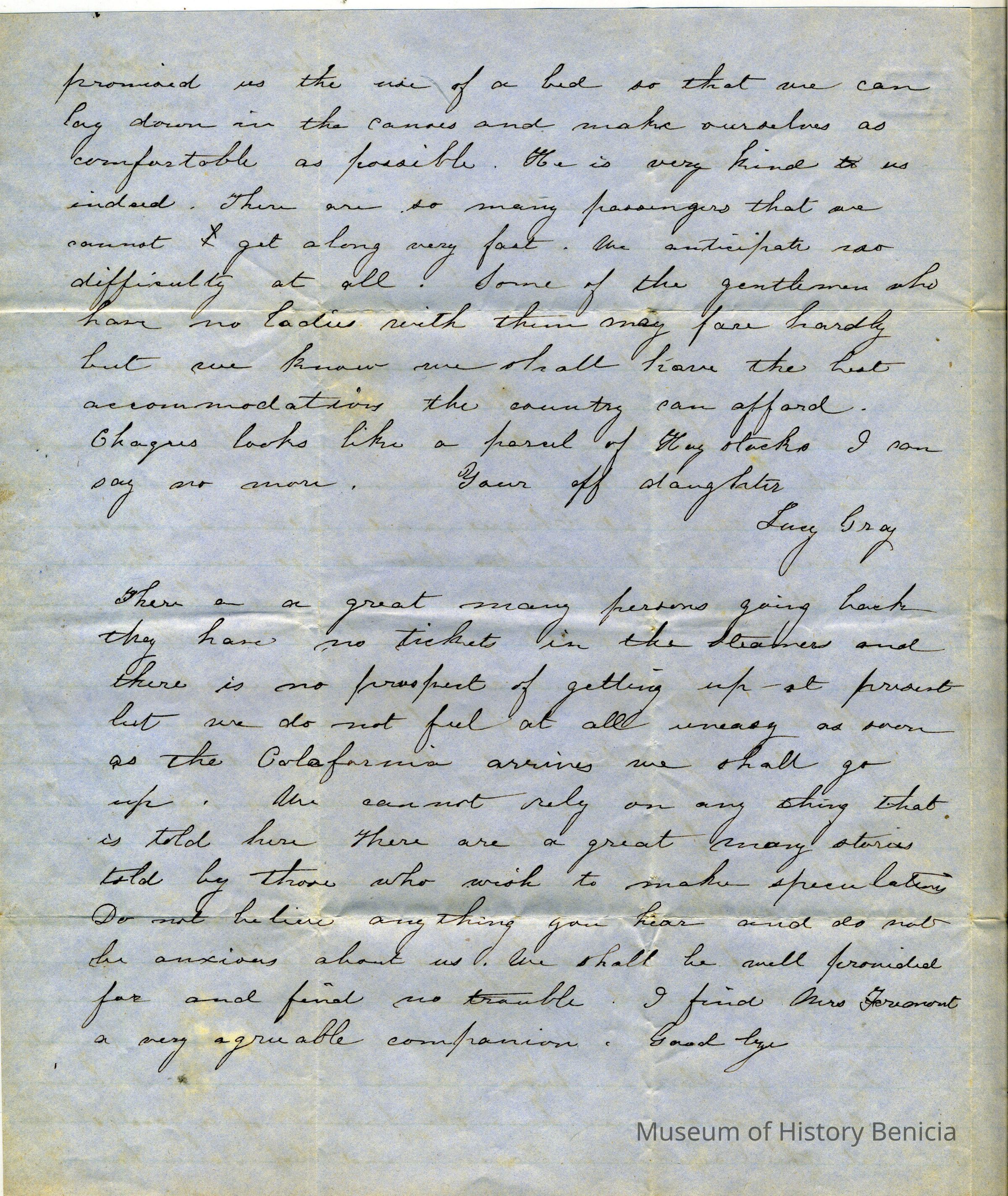 This is a letter from Lucy Wetmore Gray to her Father, Chauncey Wetmore Sr., describing the trip across the Isthmus of Panama to California in 1849.Collection