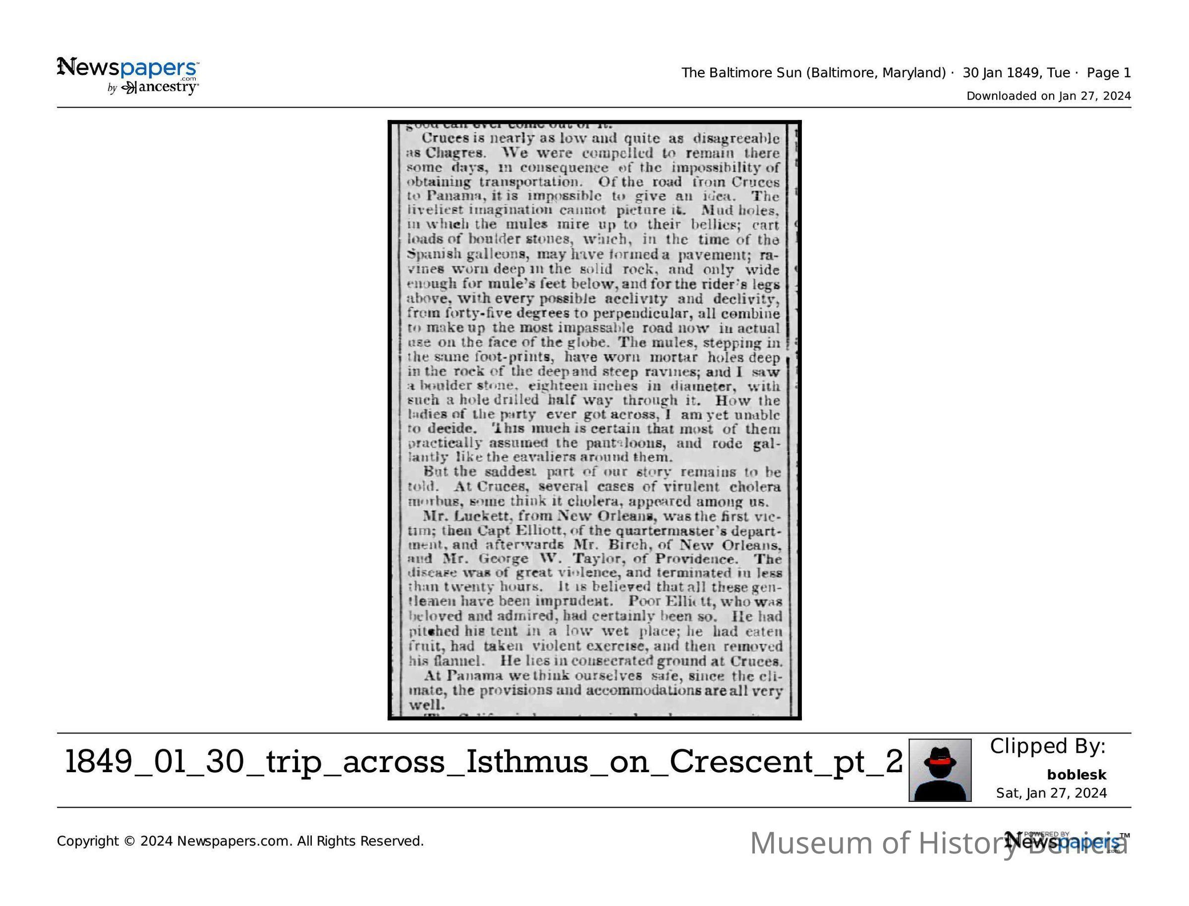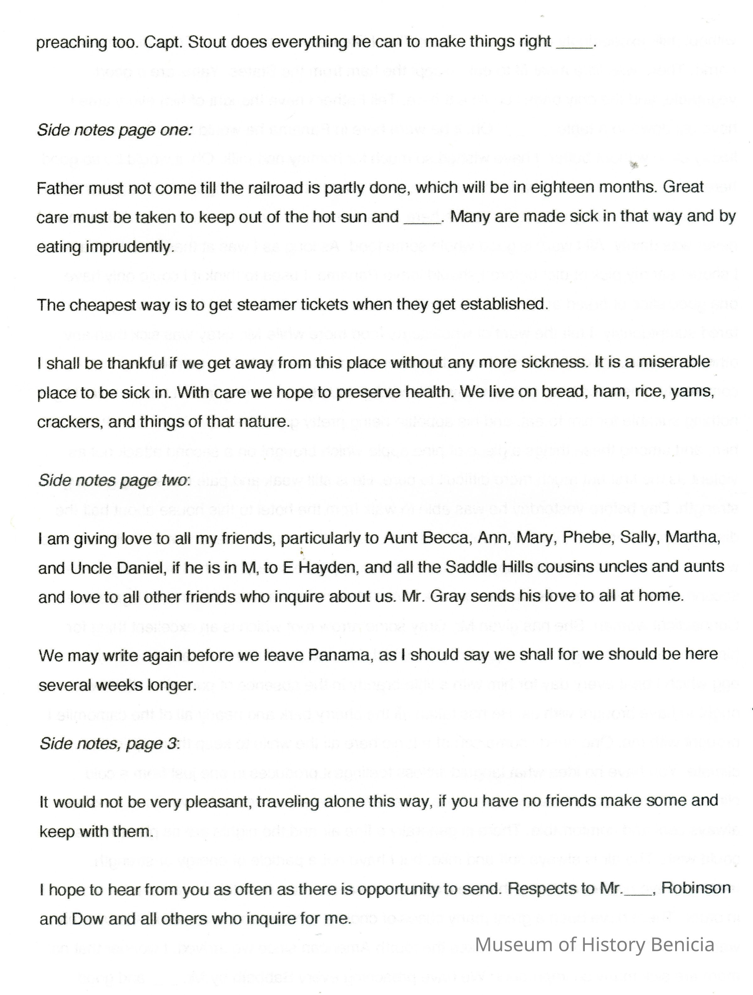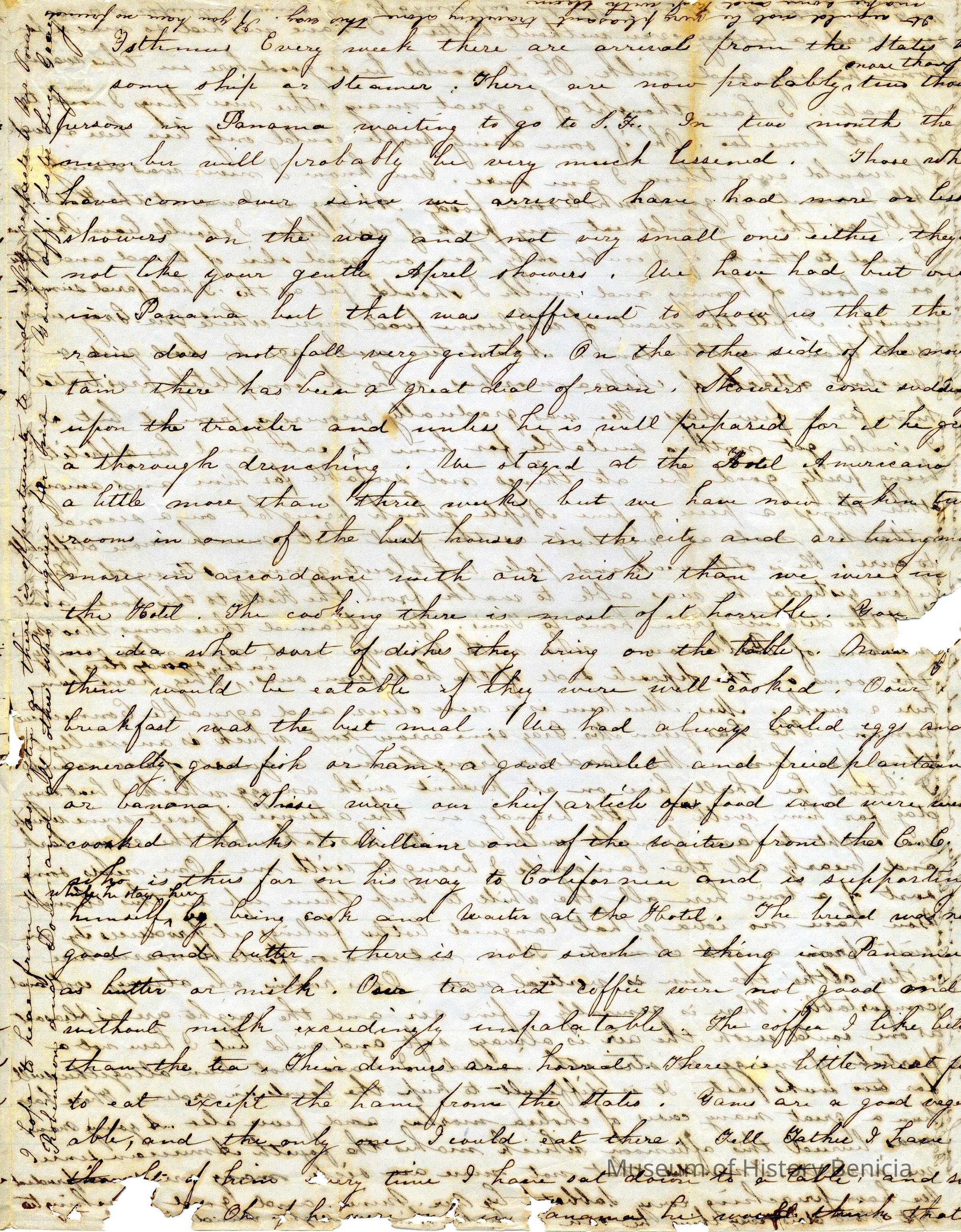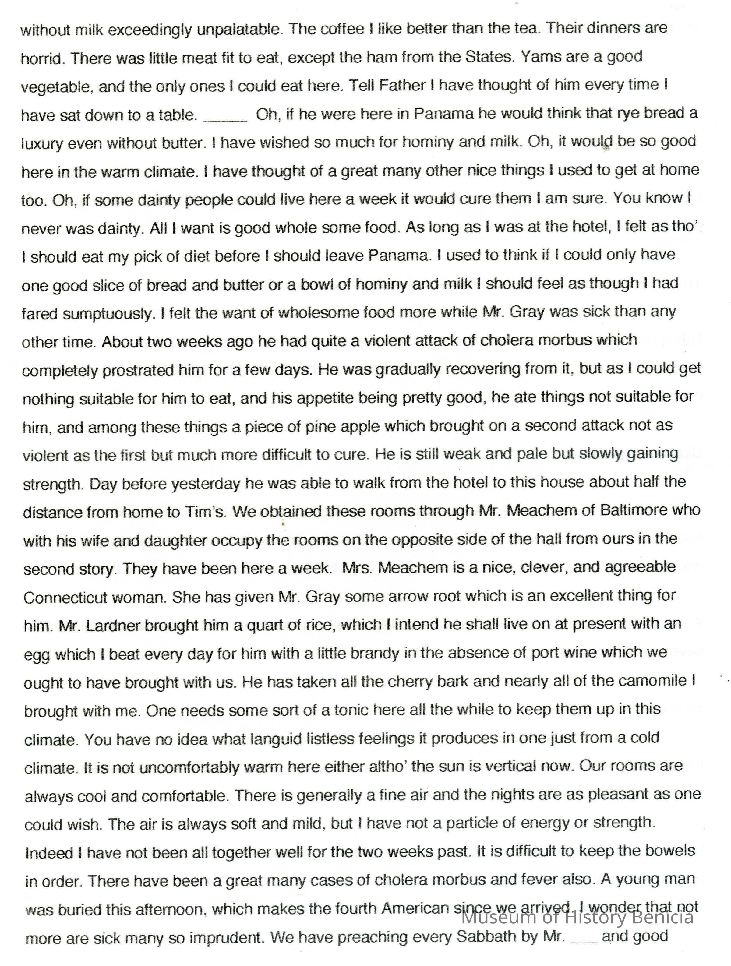 This is a letter from Lucy Wetmore Gray to her sister describing the trip across the Isthmus of Panama to California in 1849.Collection