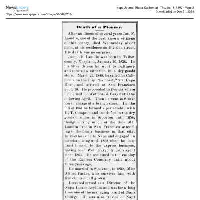 The image depicts a handwritten document titled "Articles of Co-Partnership," outlining an agreement between Chauncey E. Wetmore, Samuel Gray, and Joseph F. Lamdin. The agreement establishes a partnership in Benicia, California, for trading and mercantile business under the name J.F. Lamdin & Co., commencing on March 23, 1850. The terms include Wetmore and Gray furnishing goods at competitive prices and sharing responsibilities, liabilities, and profits, with three-fourths allocated to Wetmore and Gray and one-fourth to Landin. The partnership is set to continue until December, 1850.