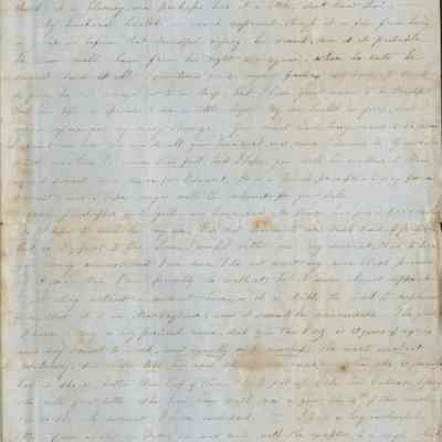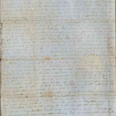 She mentions that her husband suffered an injury that has left him deaf in one ear but doesn't give any particulars. On another topic she mentions how expensive it is for Lucy to pay $12 for a servant. She says her servant cost Uncle $600 and her husband, Mr. Davis, paid $350 on her. (The 1840 Federal Census shows Mary's uncle, Edward Epps Powers having 3 slaves, 2 female and 1 male. The 1850 Census shows names of two people in his household as Elizabeth, age 55 and Nancy age 13 with a hard to read last name that could be "slave" although they are not shown as black. Mary's next letter confirms that Mary and her husband bought their black servant from her uncle for $600.)