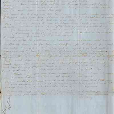 She talks of their modest means and how they aren't rich but are happy. She says that her husband has nearly paid Uncle the $600 he owes for their black girl. (In the previous letter she talks about their servant and how much she cost. This confirms that she came from the Edward Epps Powers estate and is probably the 13 year old girl named Nancy in the 1850 Federal Census for Mr. Powers.)