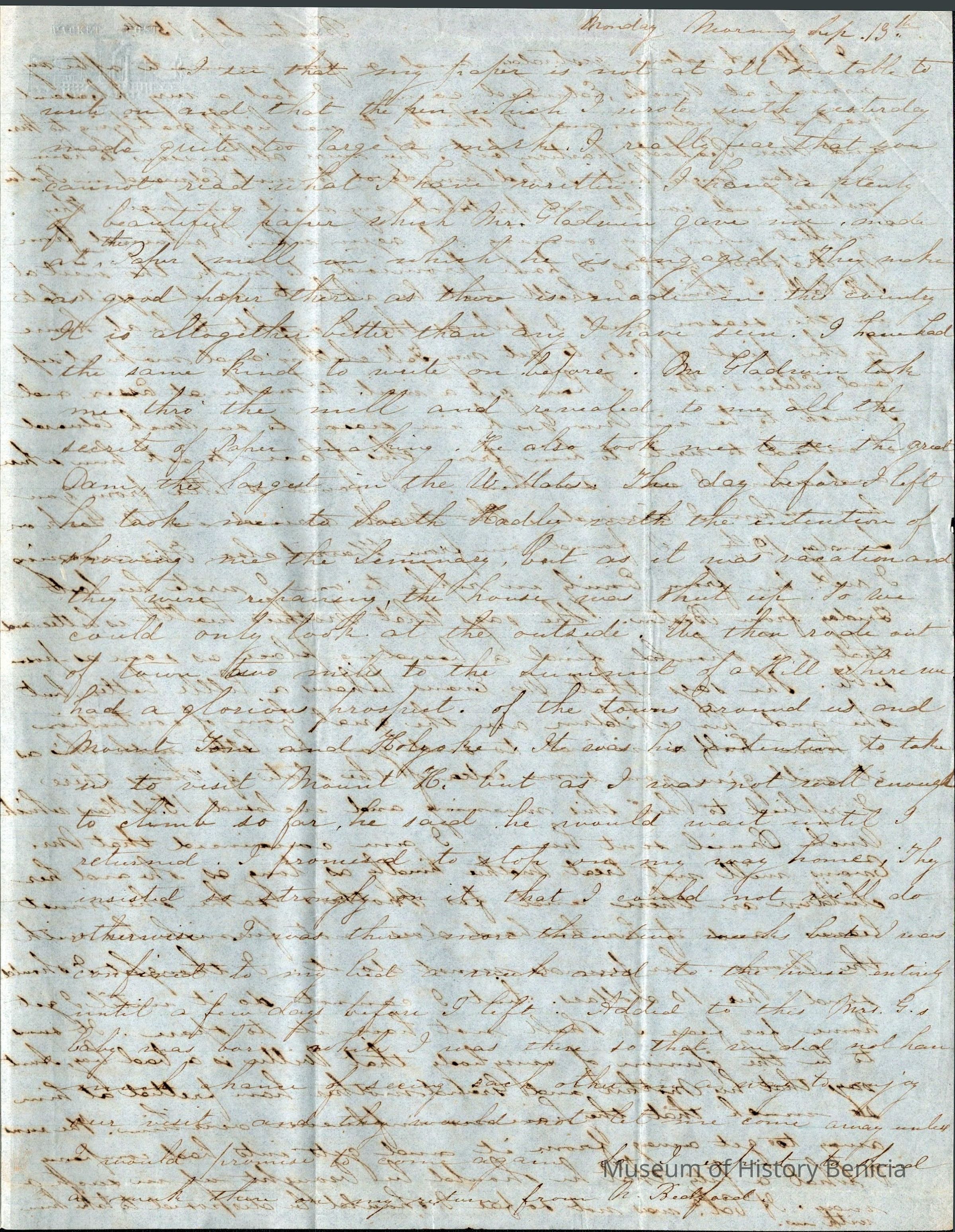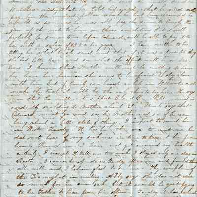 The letter becomes hard to read at this point because of ink that shows thru the paper from the other side. It seems to have been written over three or four days from 09/12/1852 to 09/15/1852 and is mostly about family problems.Letter Details