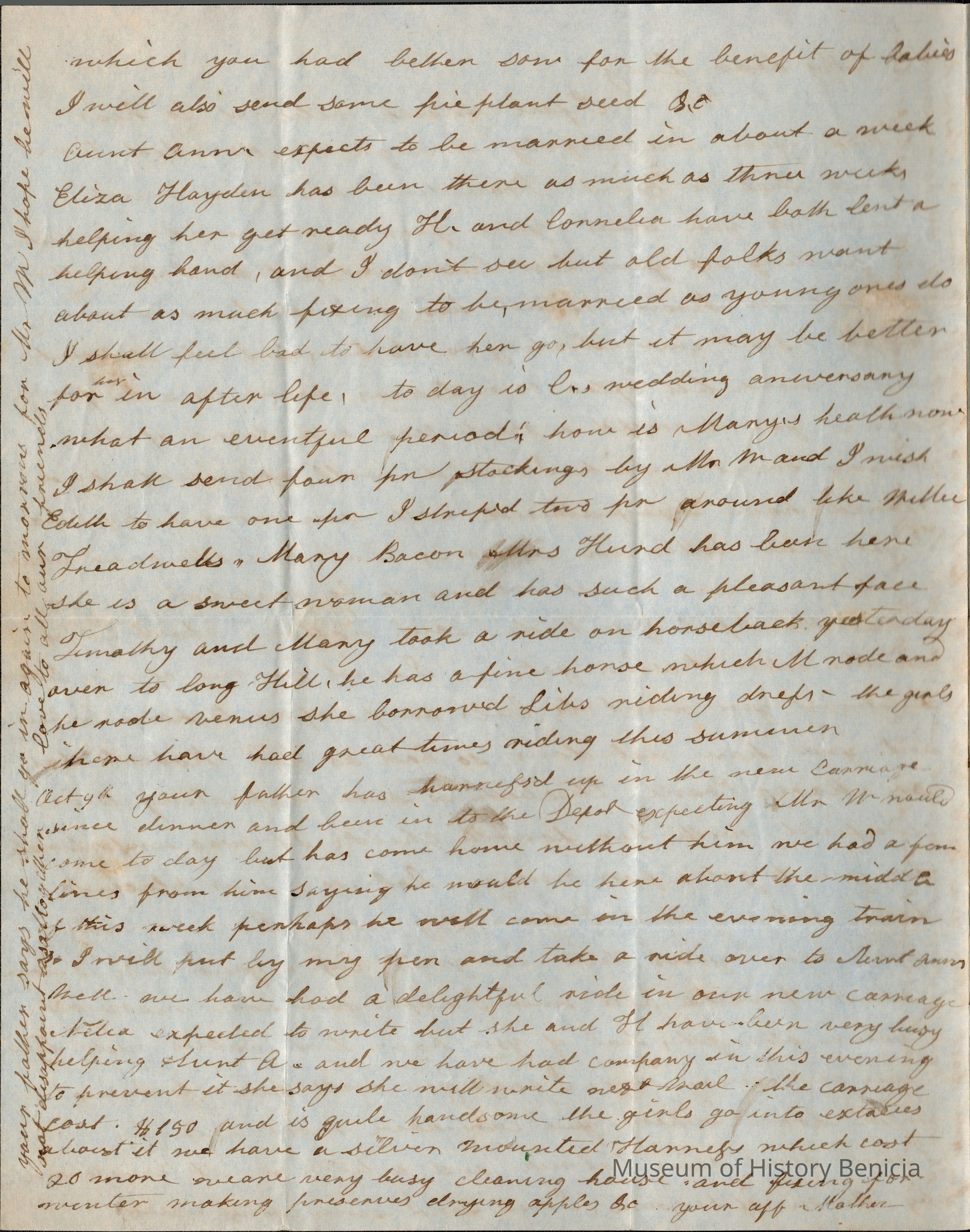 She is expecting a visit from Mr. Woodbridge any day. (This could be Rev. Woodbridge's son who studied for the ministry on the East Coast.)