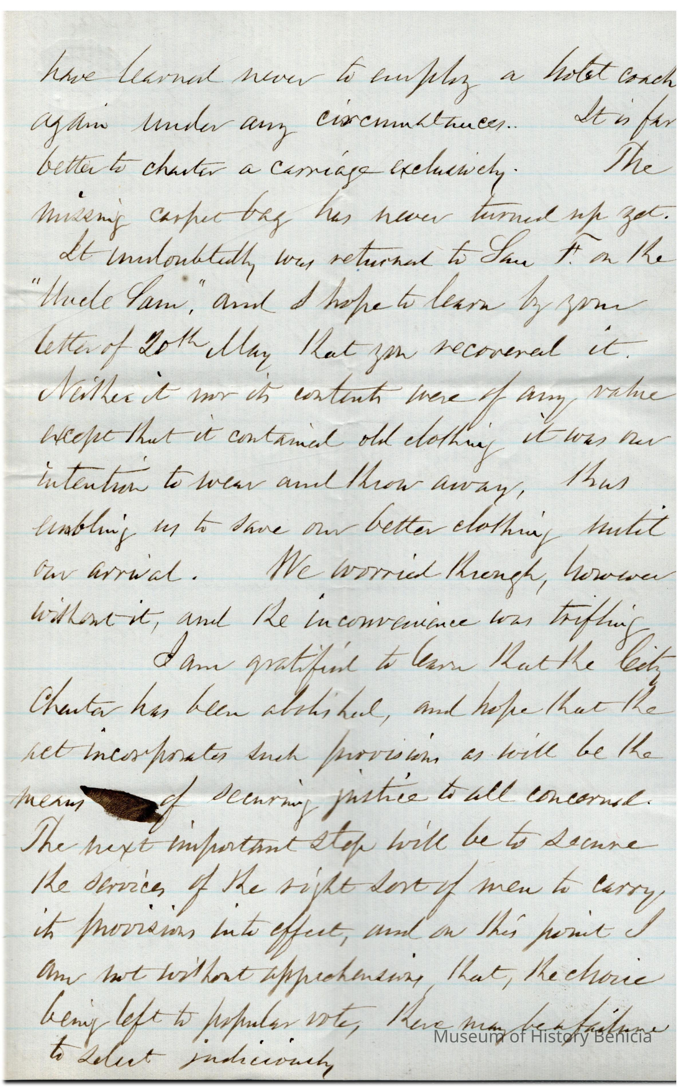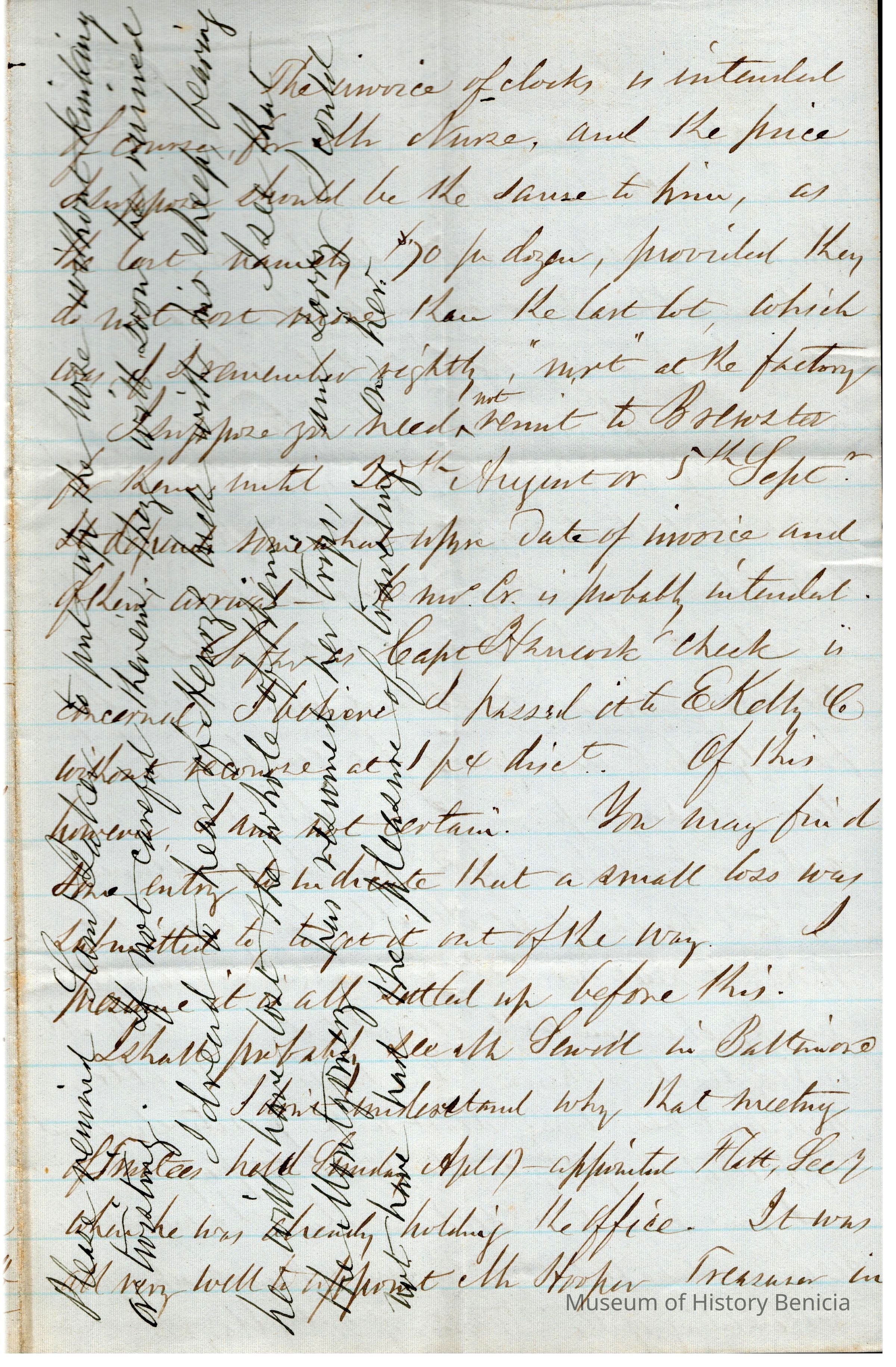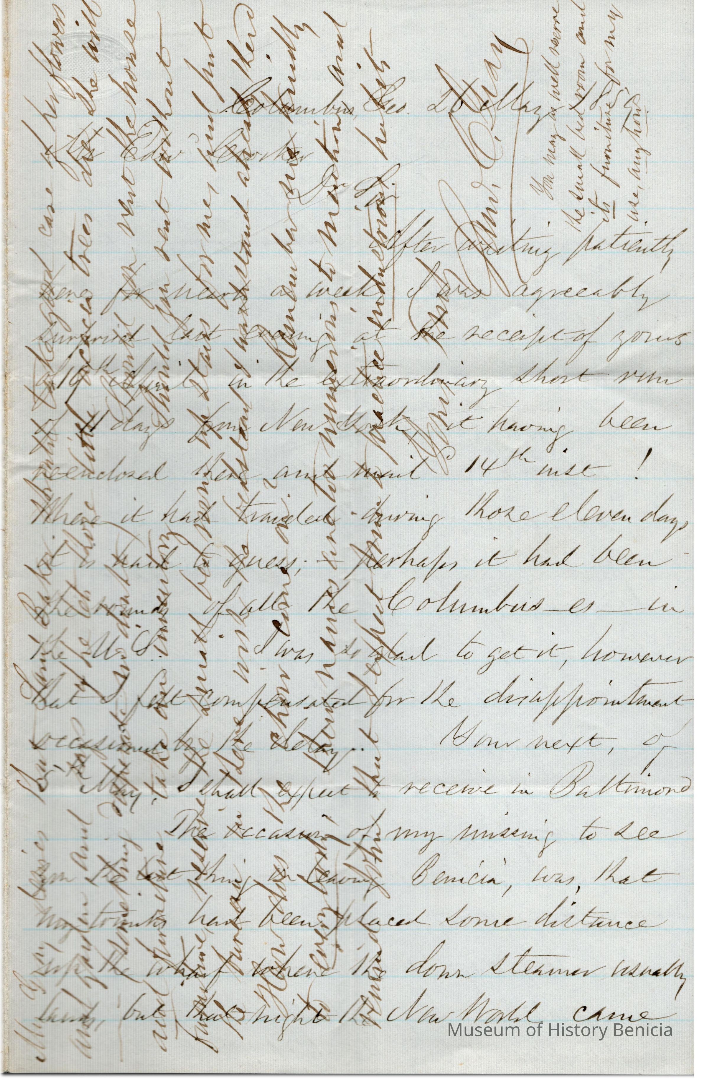 The image shows a handwritten letter, crafted in a cursive style typical of the 19th century, from Samuel Gray to Edward Crocker. The letter is written on lined, slightly yellowed paper, and the ink used appears to be a rich brown, which may indicate aging. This correspondence is marked by a characteristic slant, with lines crossing paths in some areas, a common practice in the era for economizing on paper. The writing is dense, suggesting a detailed message. Though some parts are crossed out or written over, adding to the complexity, the letter maintains readability, preserving its historical and personal significance.