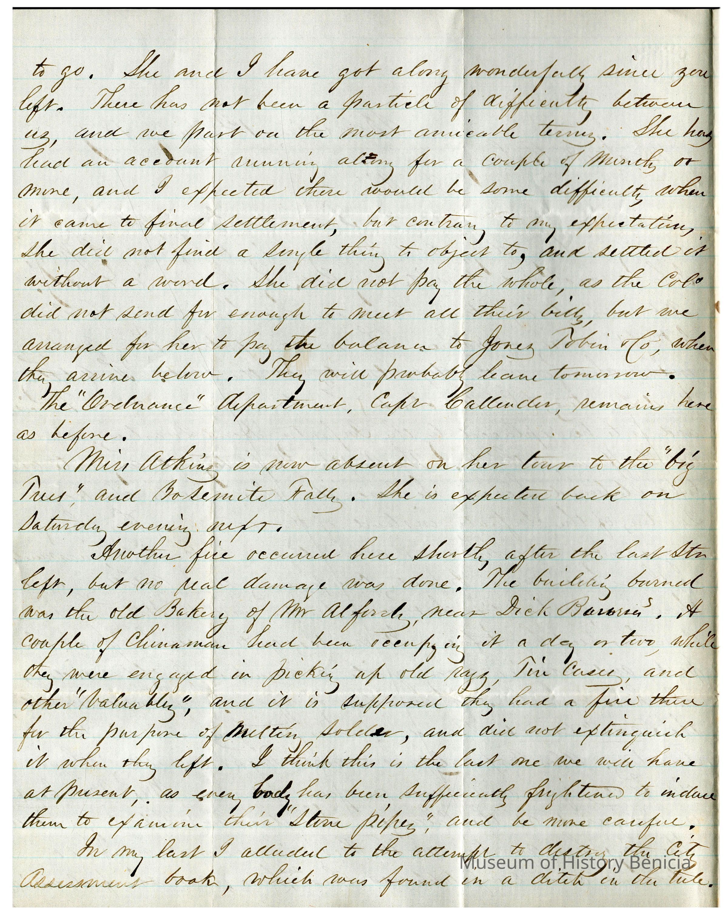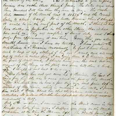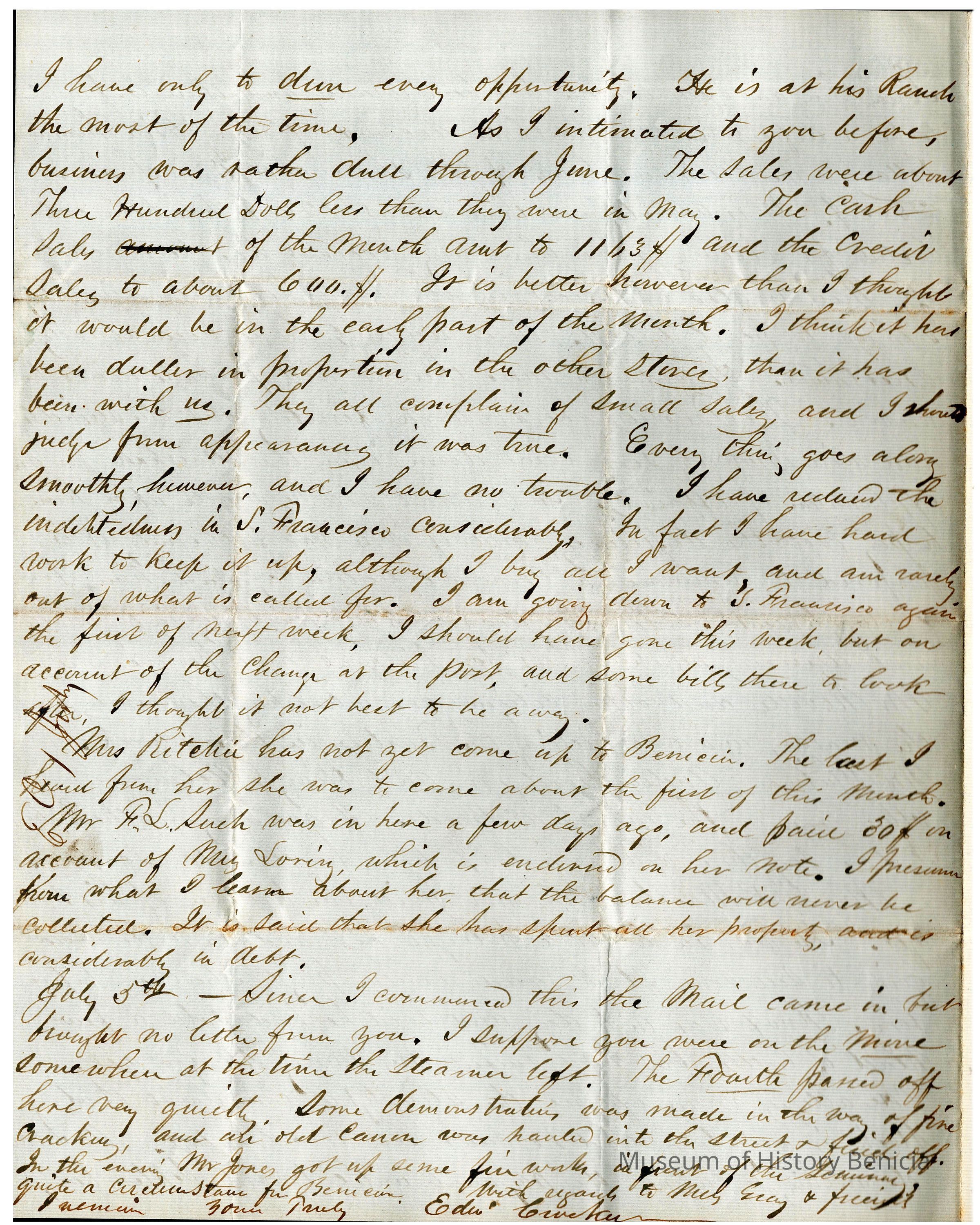 The image depicts a handwritten letter dated July 1, 1859, from Mr. Crocker to Mr. Gray. The letter is written on lined paper with blue margins, typical of 19th-century correspondence. The writing is composed in cursive script, displaying neatly formed letters and demonstrating the formal style of the period. It begins with “Mr. Samuel C. Gray” and later “Dr. Sir” addressing the recipient, followed by the narrative content. The letter discusses changes happening at a military post, as noted by references to artillery and infantry adjustments. There is a mention of a potential impact on the local community due to these troop movements. A sense of painstaking attention to detail is evident, reflecting the importance of the communication being shared. The paper condition appears aged, with slight discoloration and folds, suggesting the document's historical usage and preservation.