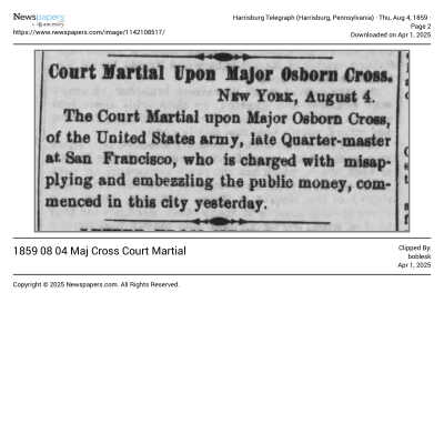 (note: Mr. Crocker has in parenthesis, "E Walsh". This probably refers to Eleanor Walsh who in the 1870 census shows a boy, A.W. Fergusson age 10, living with her and her husband John. In the 1880 census a boy named Arthur Fergusson is living with John and shown as his grandson.) Mr. Crocker mentions that John Walsh is in the East testifying at the trial of Maj. Cross.