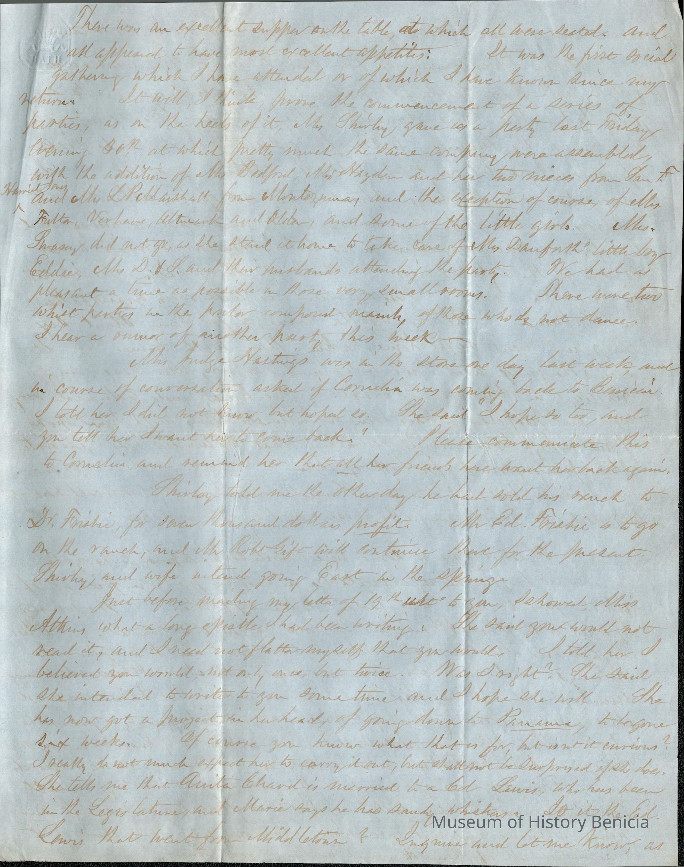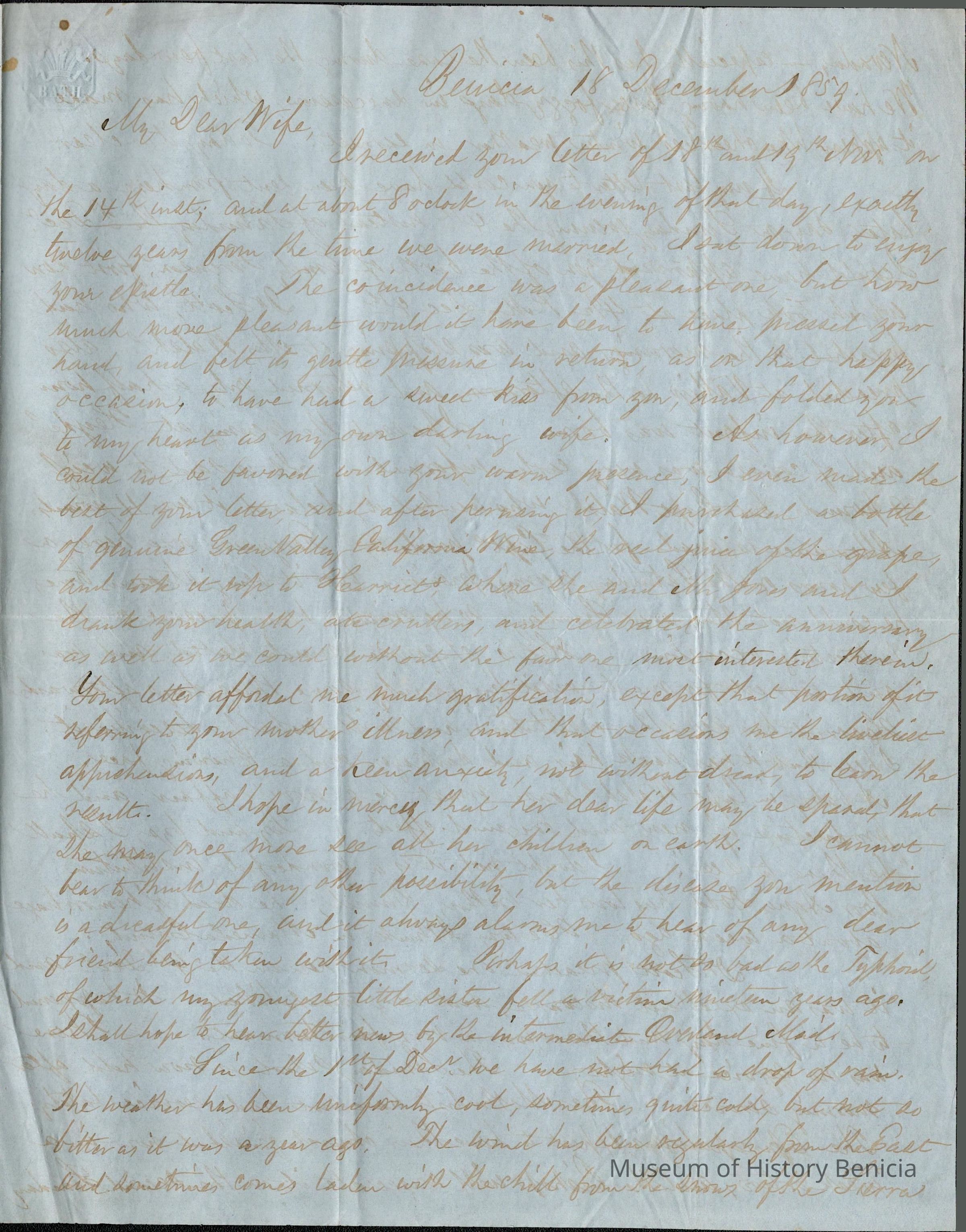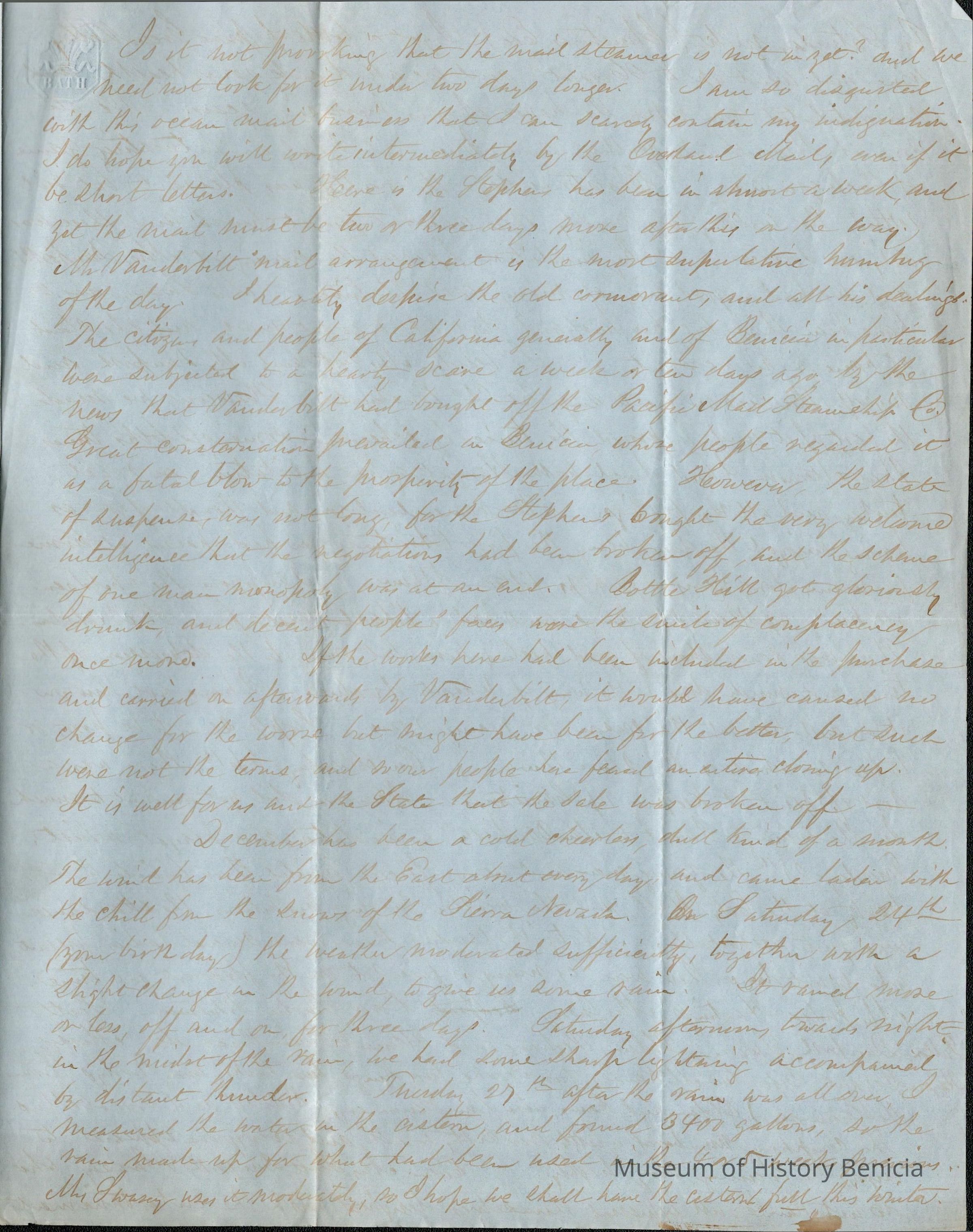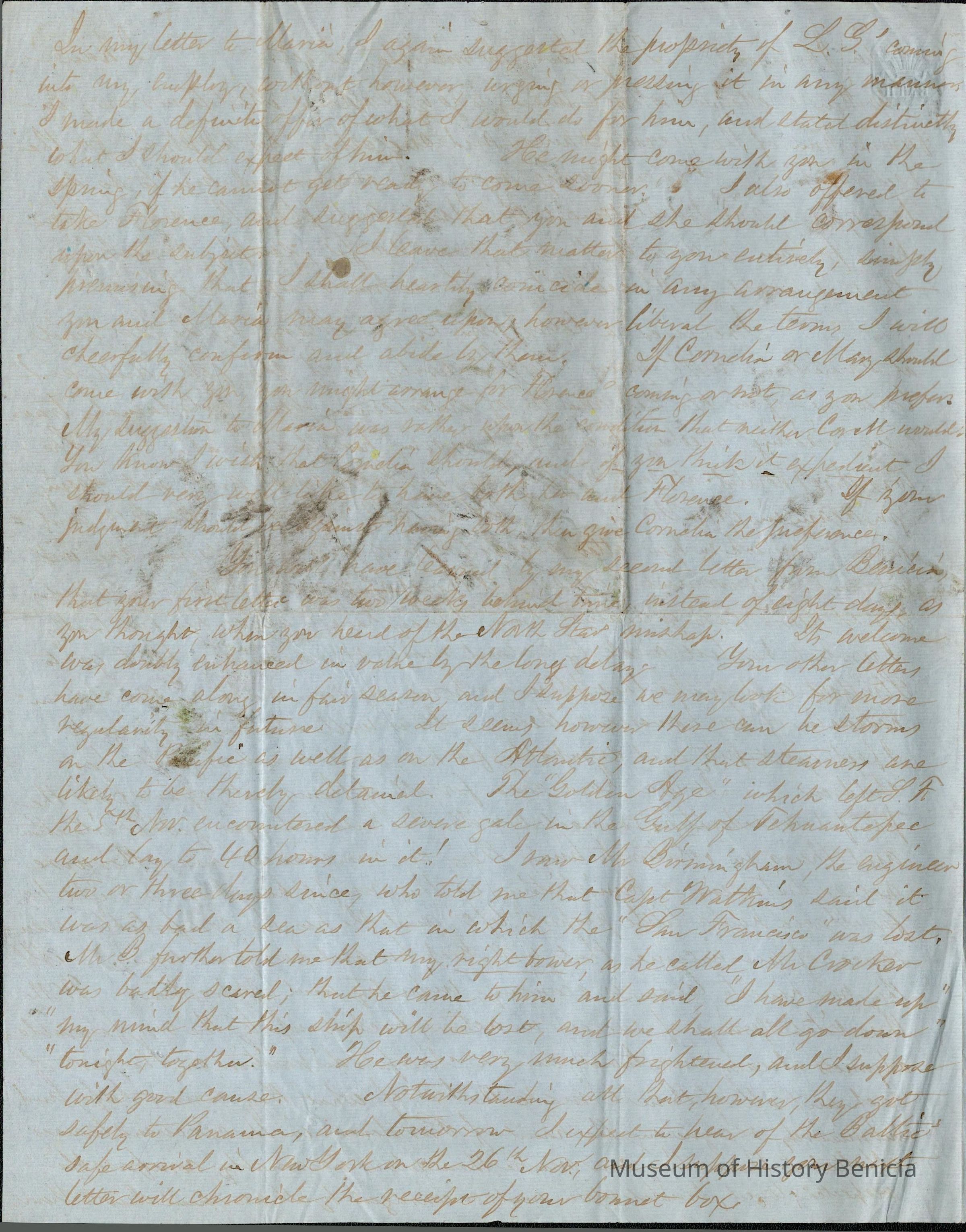 This is a letter from Samuel C Gray to his wife Lucy Wetmore Gray when she was visiting on the East Coast.