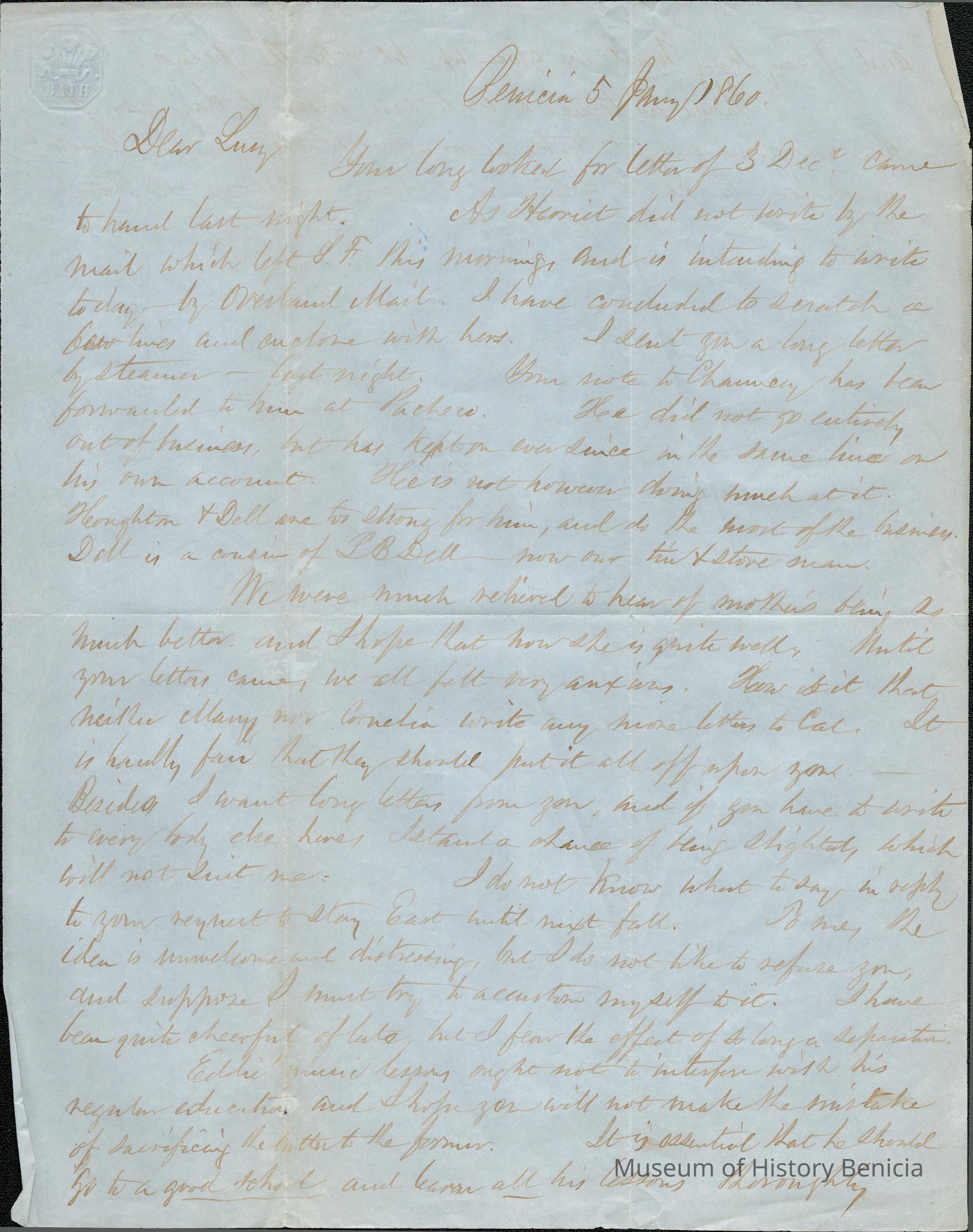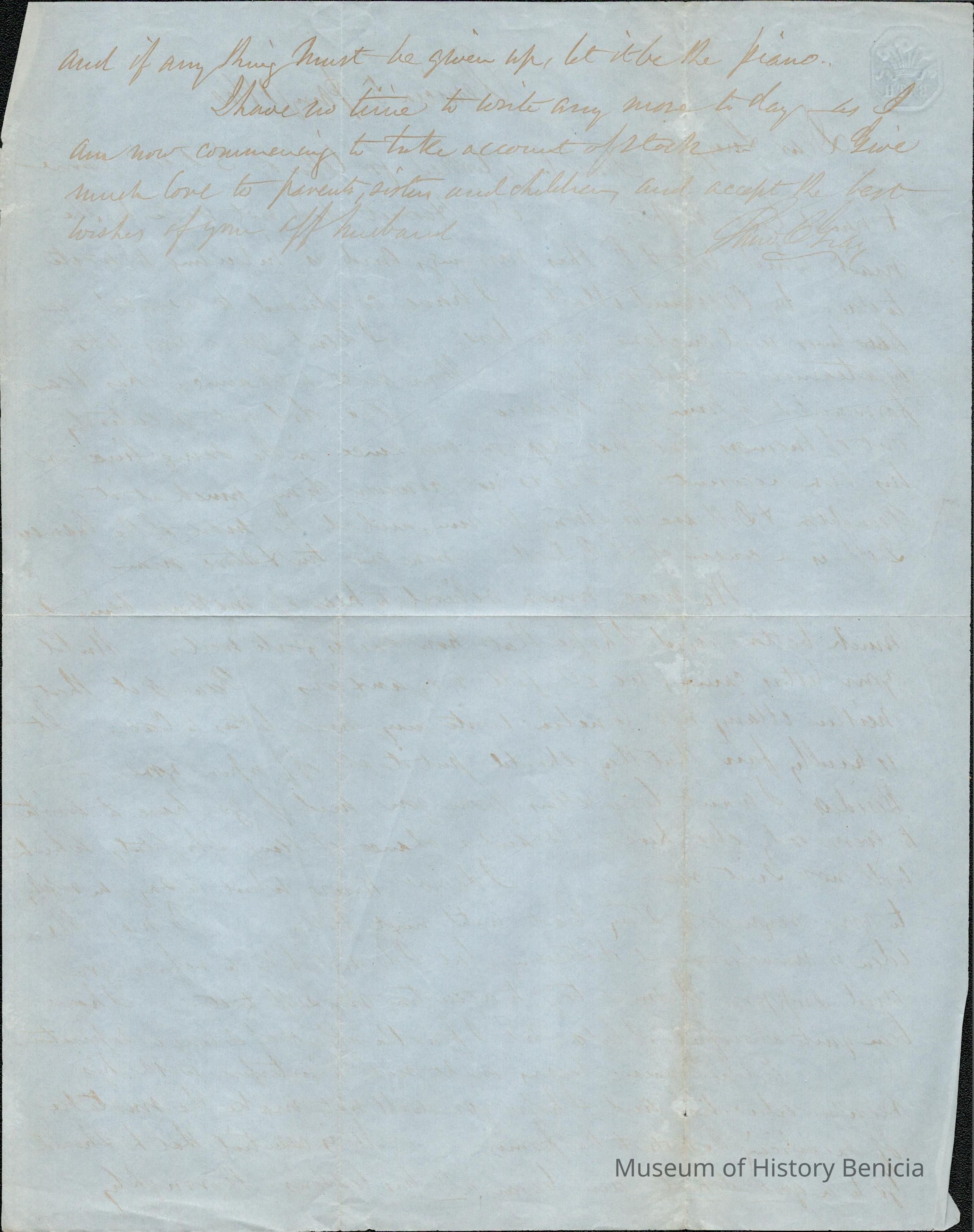 This is a letter from Samuel C Gray to his wife Lucy Wetmore Gray when she was visiting on the East Coast.