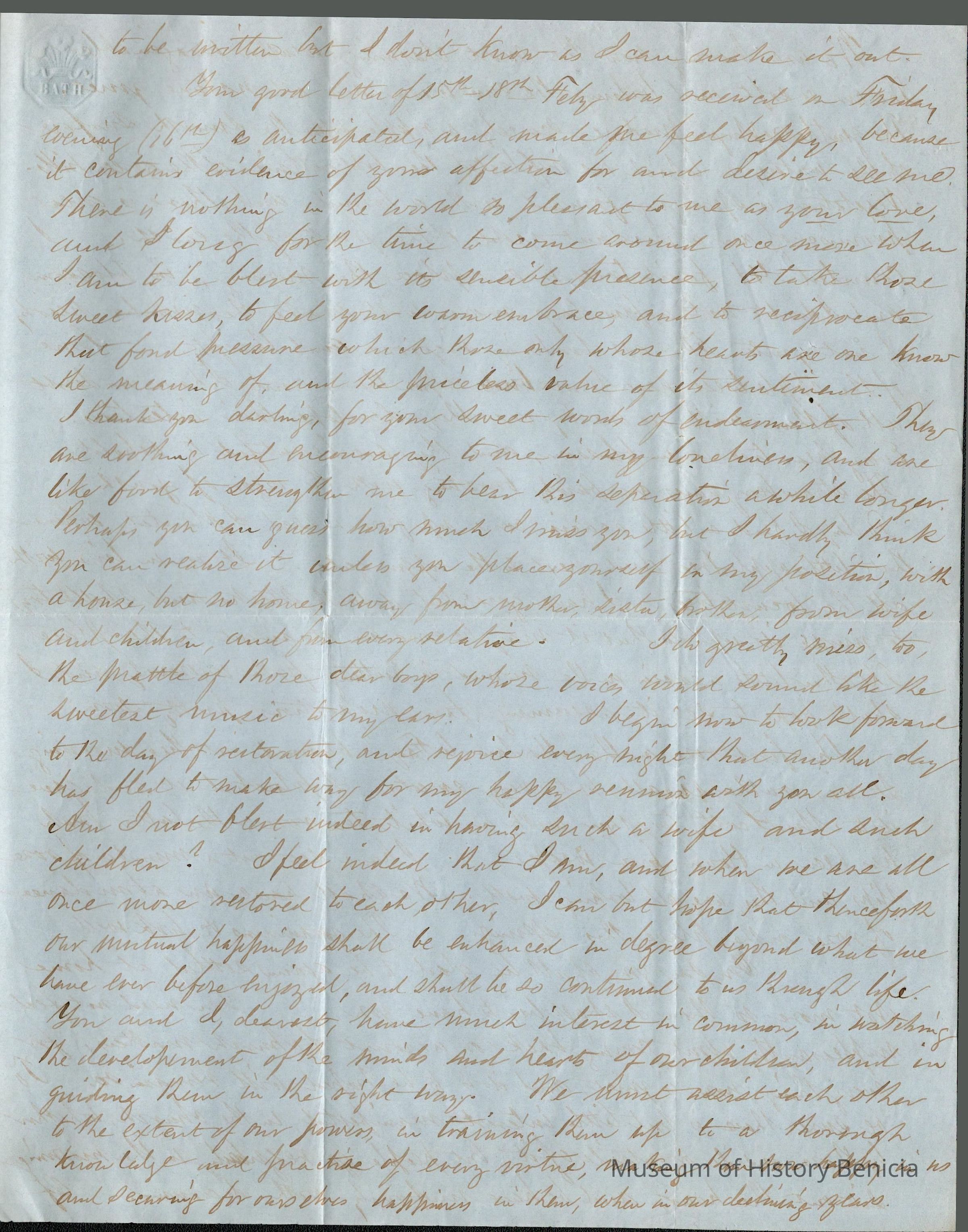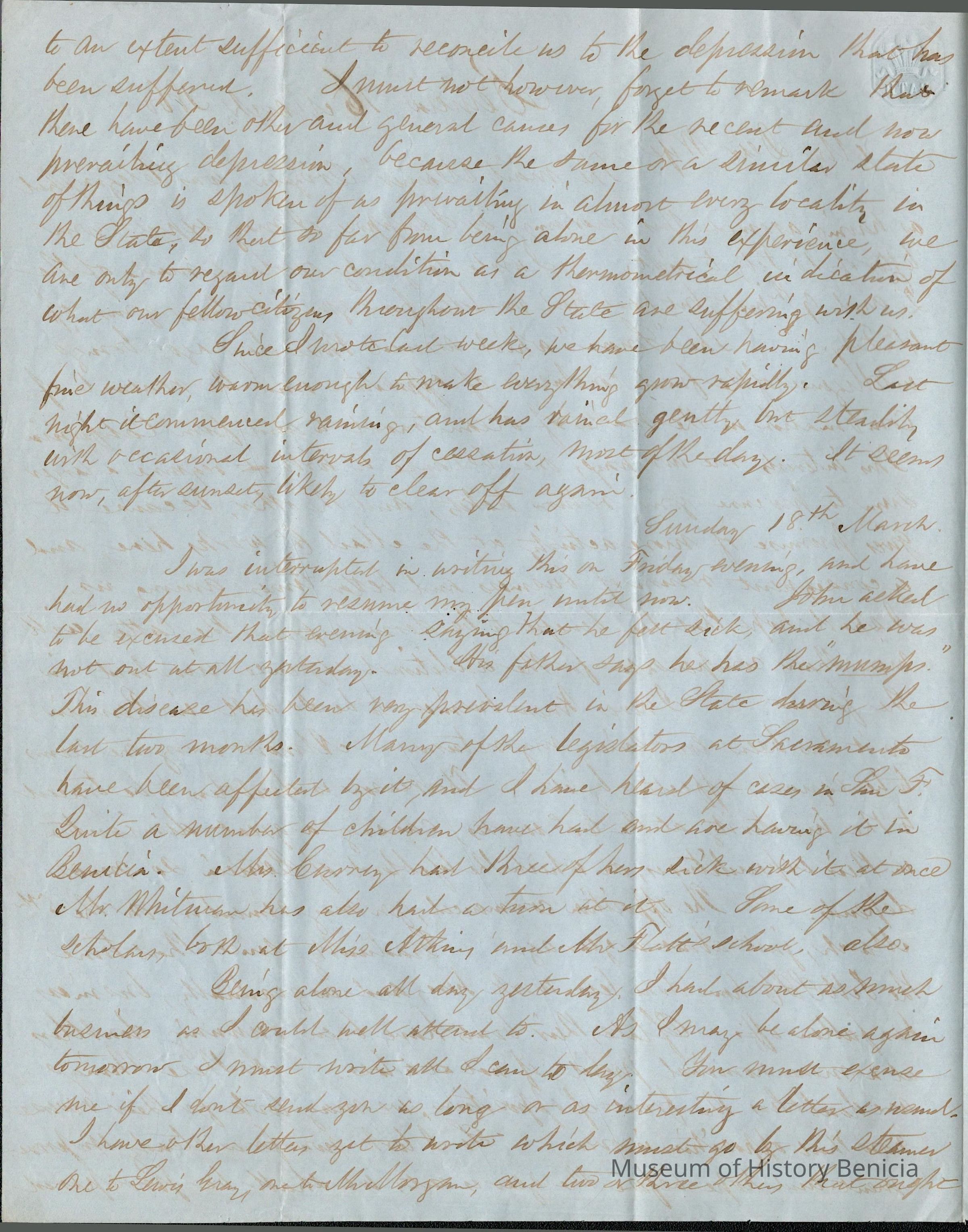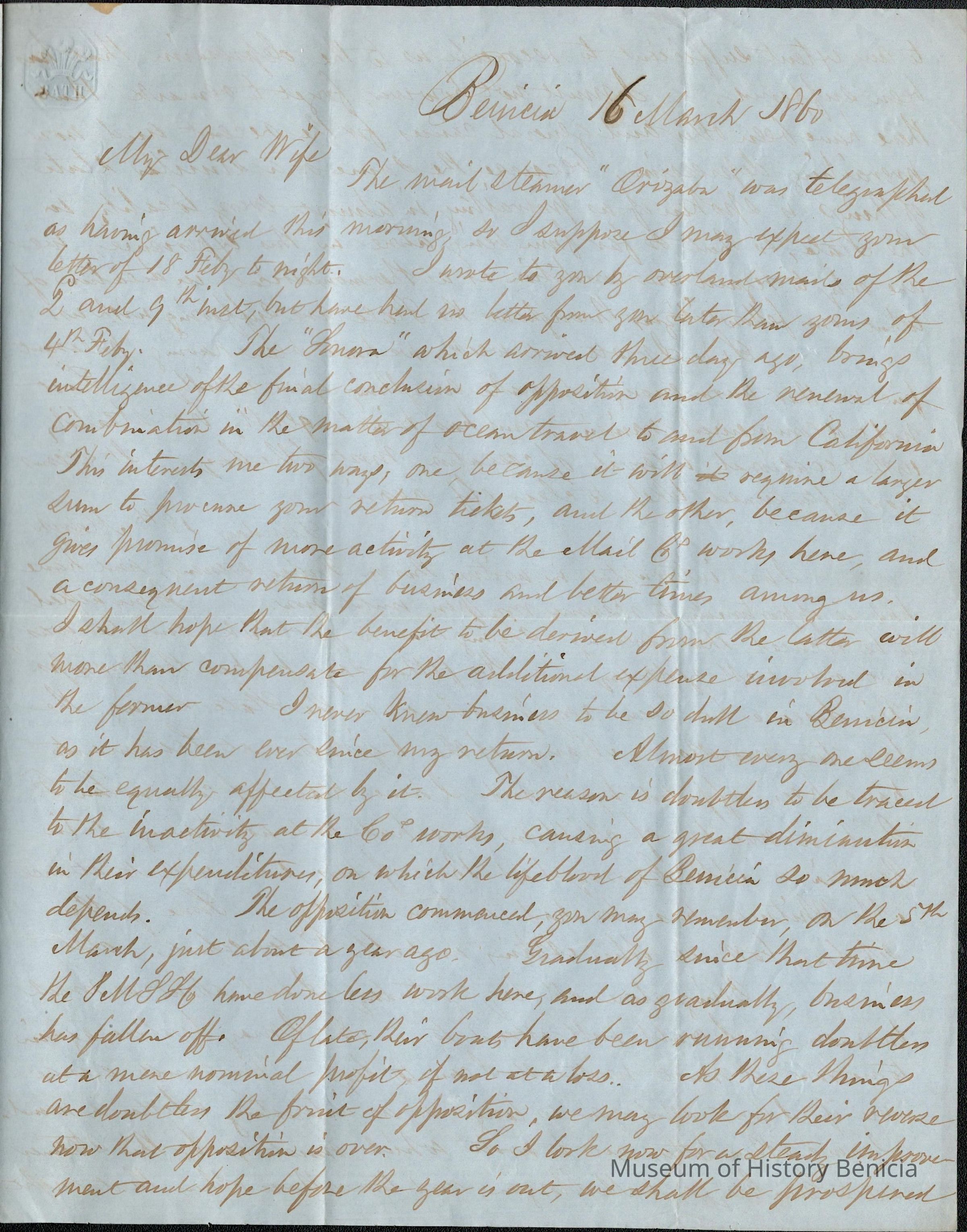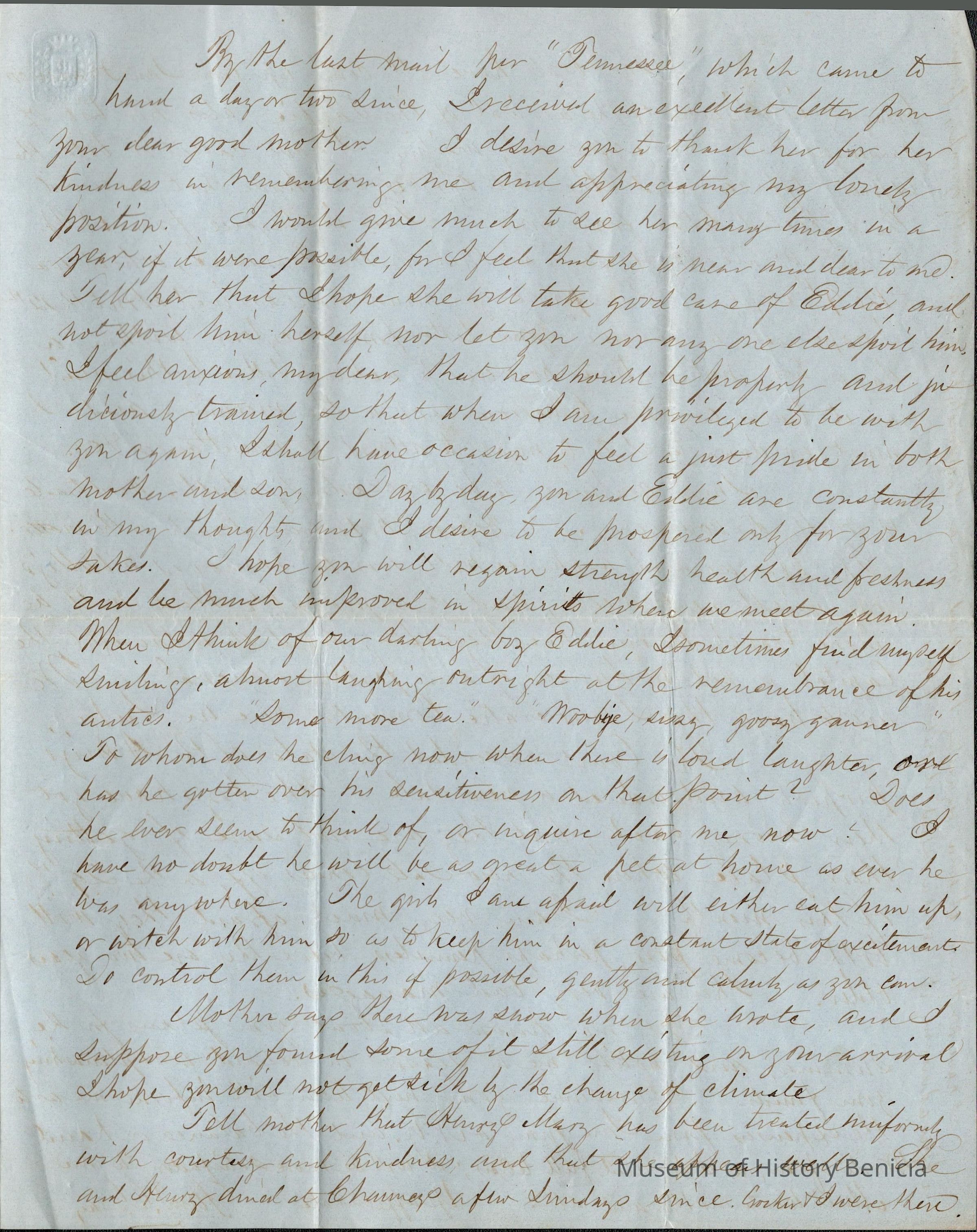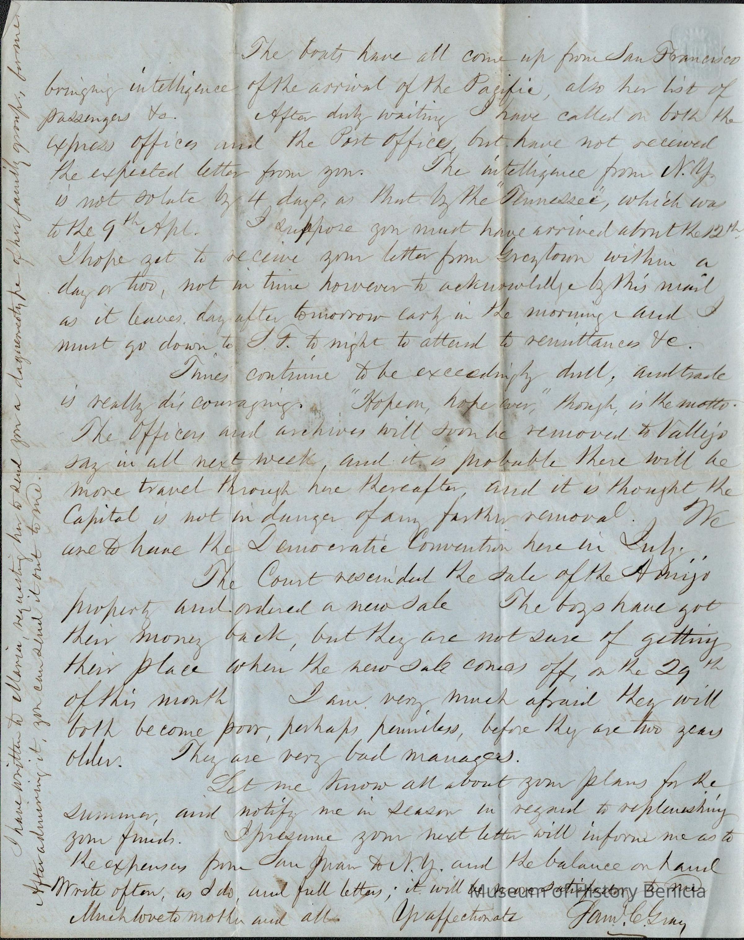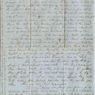 This is a letter from Samuel C Gray to his wife Lucy Wetmore Gray when she was visiting on the East Coast.