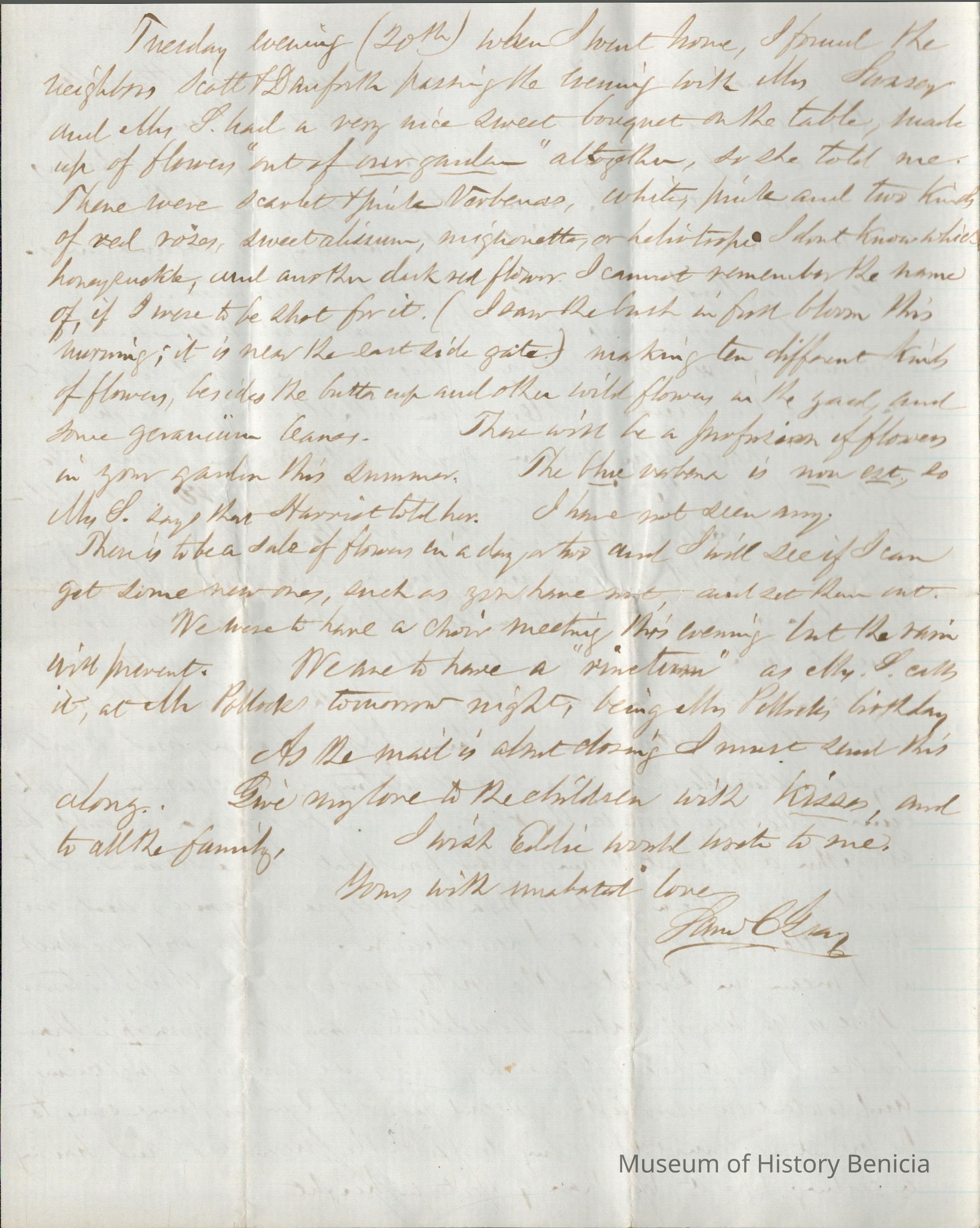 This is a letter from Samuel C Gray to his wife Lucy Wetmore Gray when she was visiting on the East Coast.
