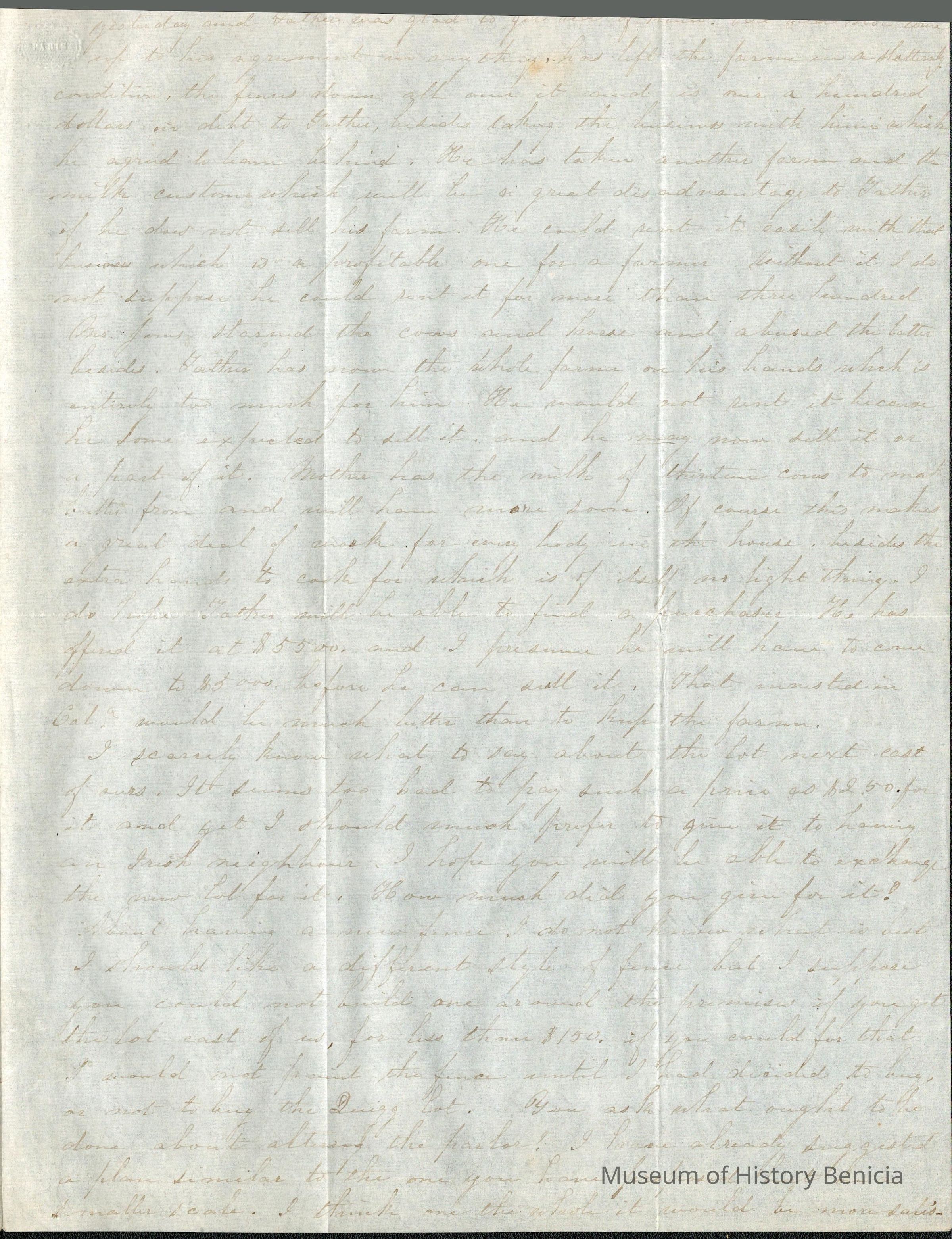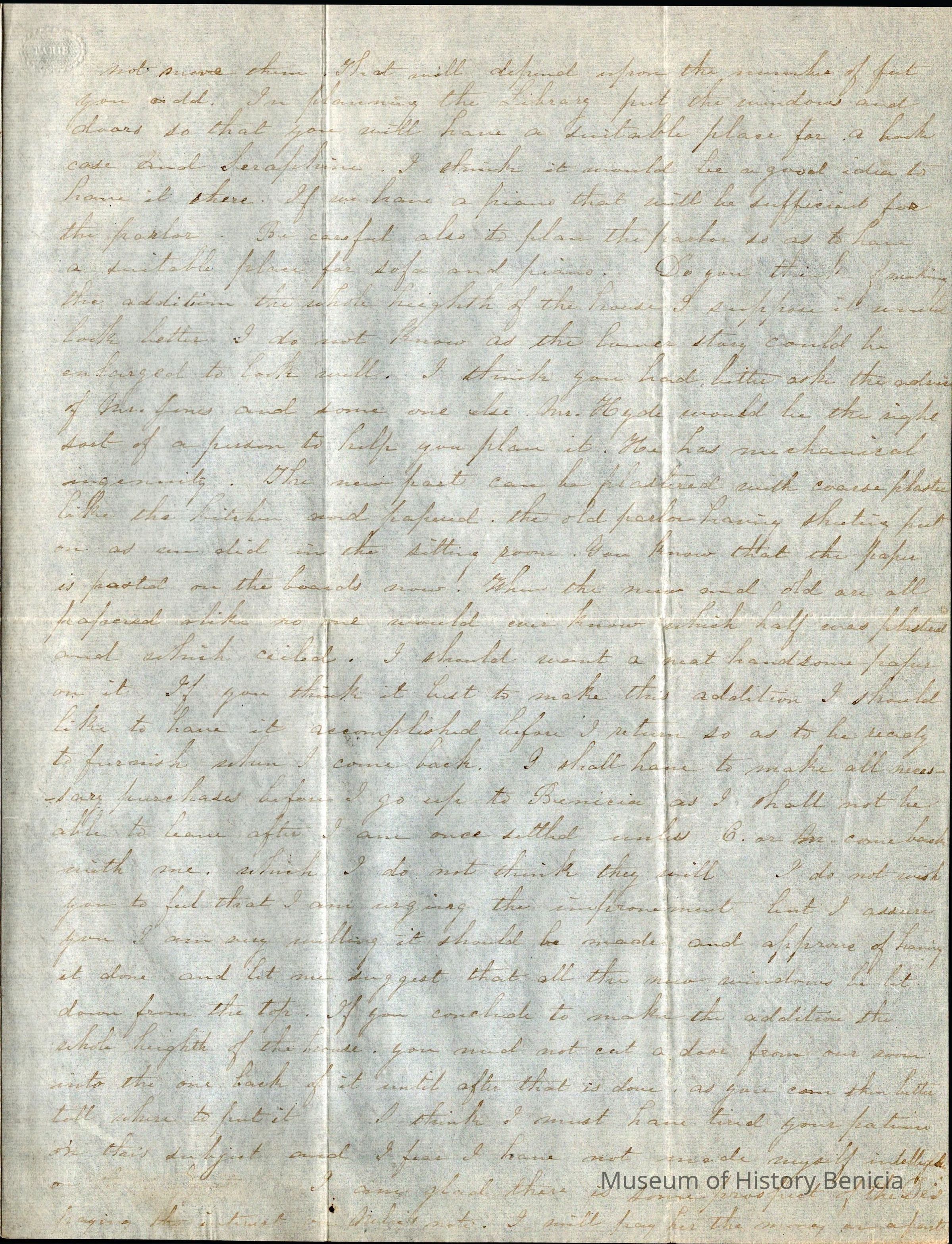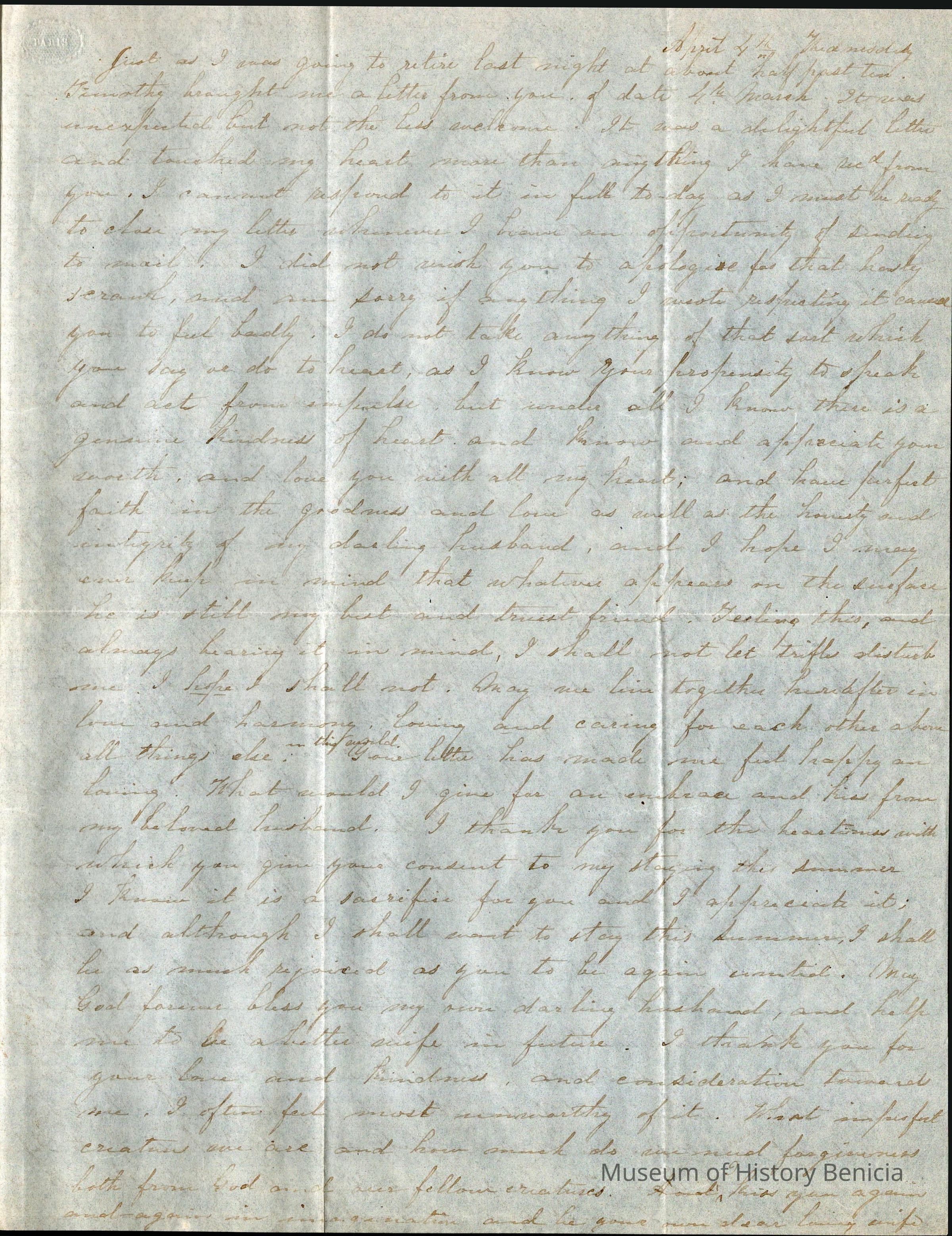 This is a letter from Lucy Wetmore Gray on the East Coast to her husband Samuel C Gray in Benicia.