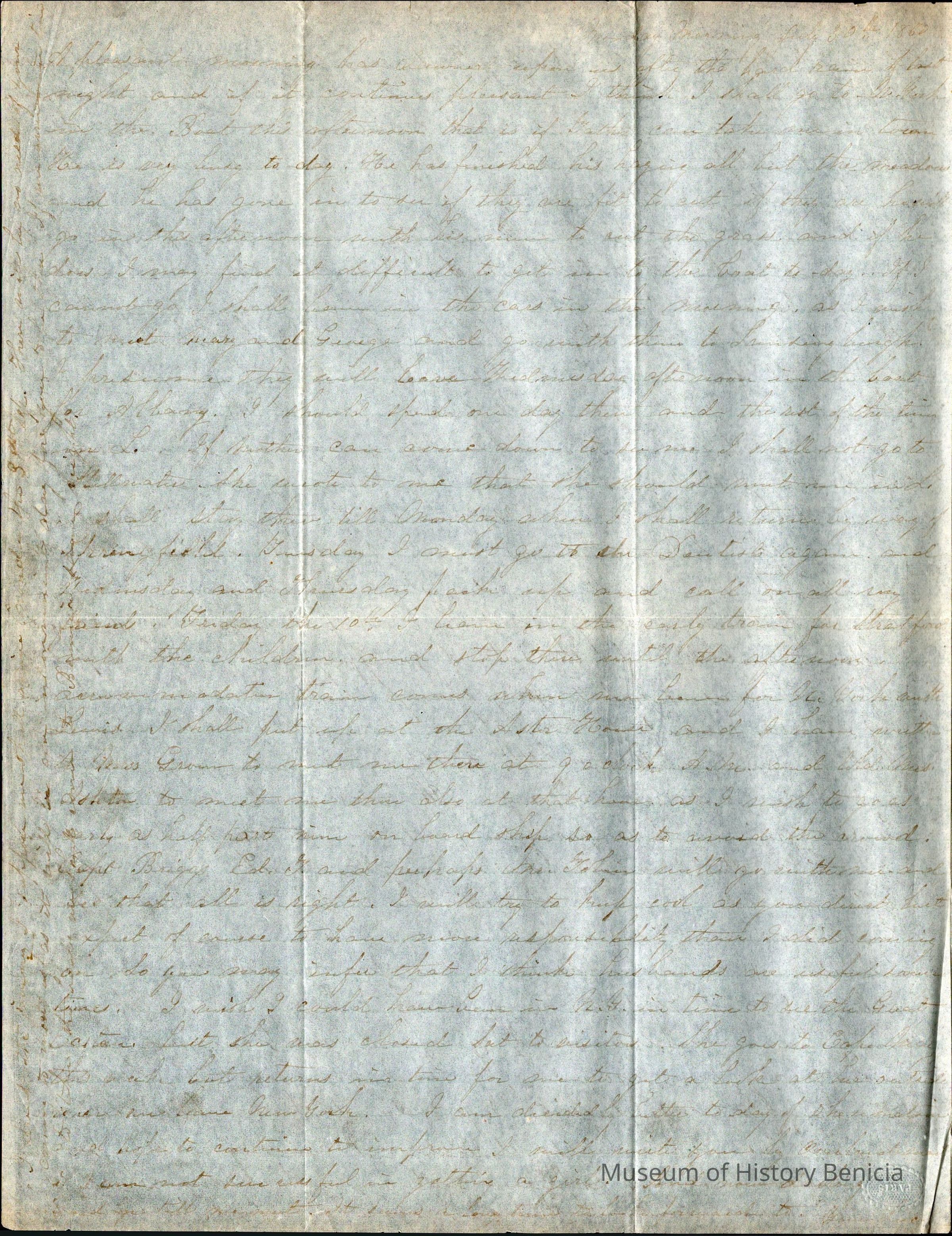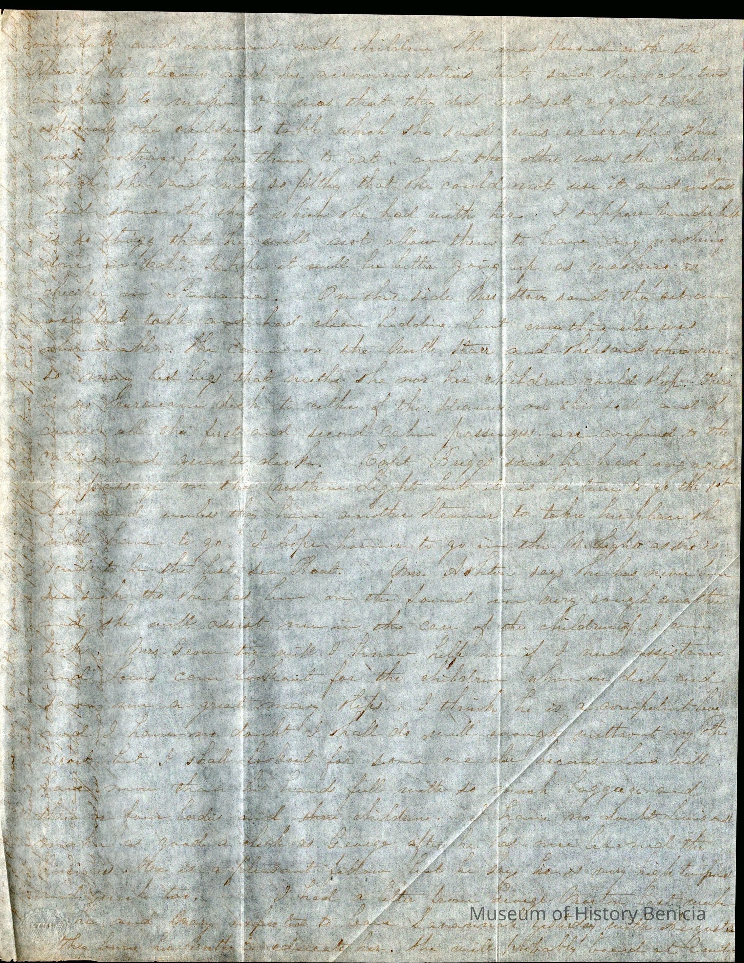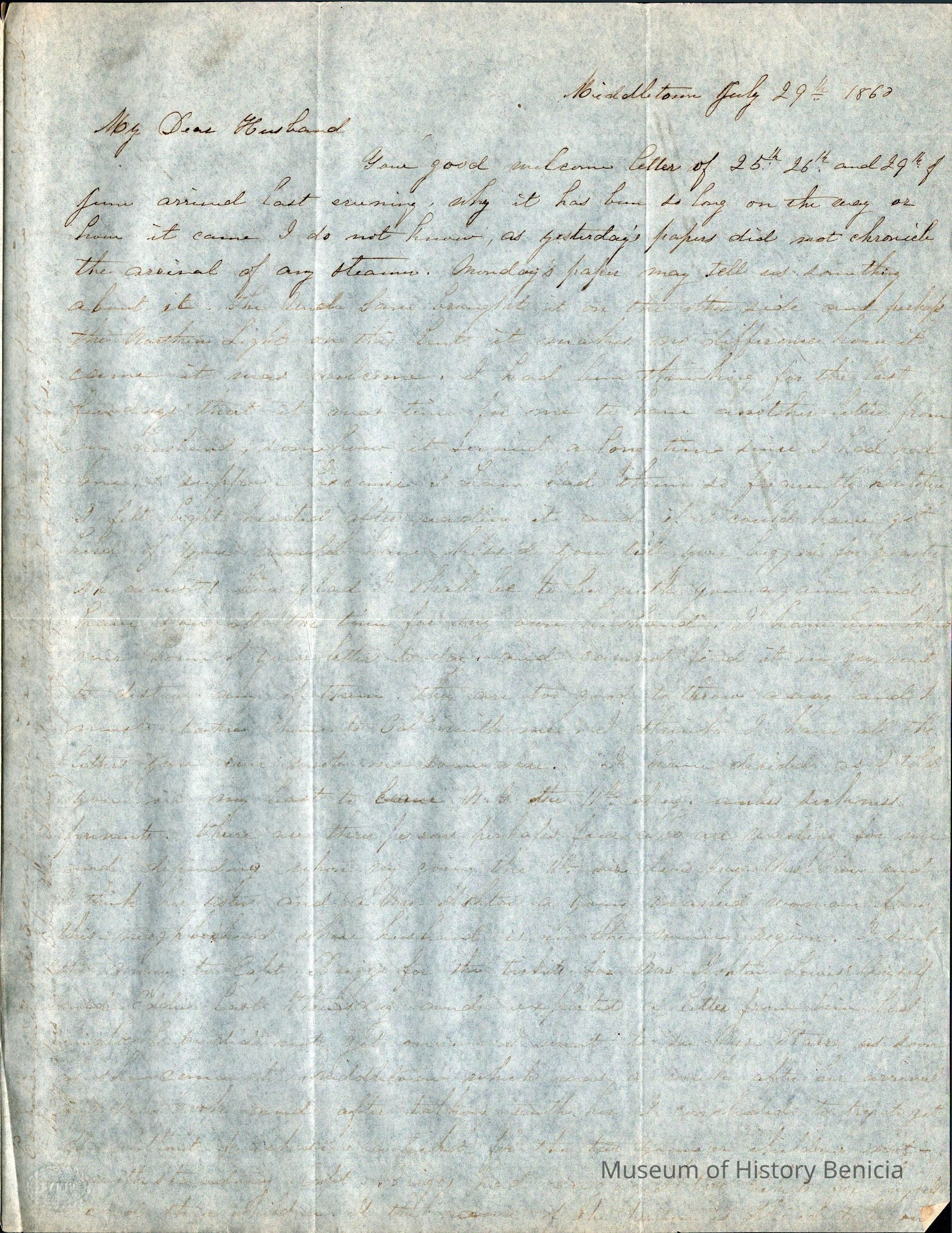 This is a letter from Lucy Wetmore Gray on the East Coast to her husband Samuel C Gray in Benicia.