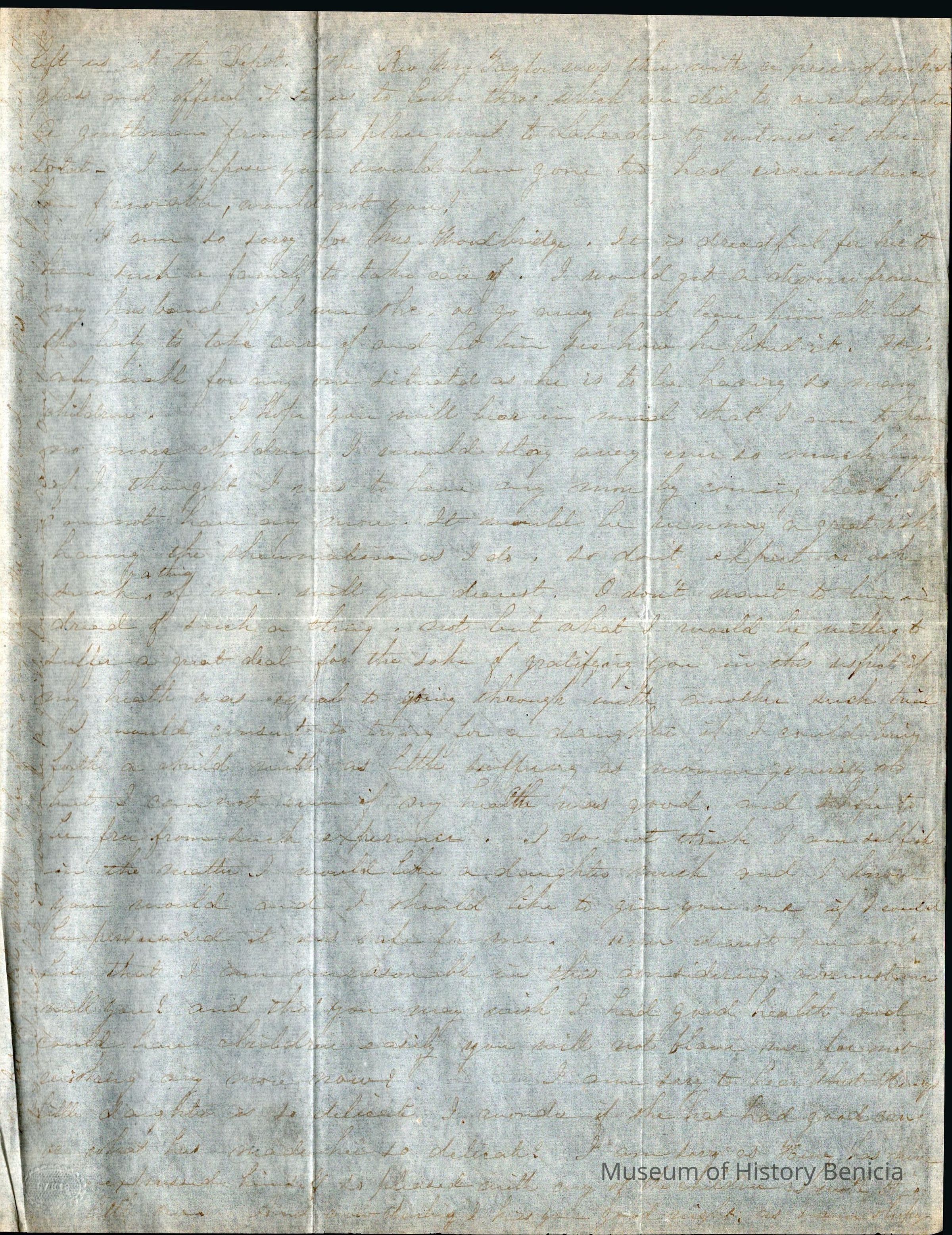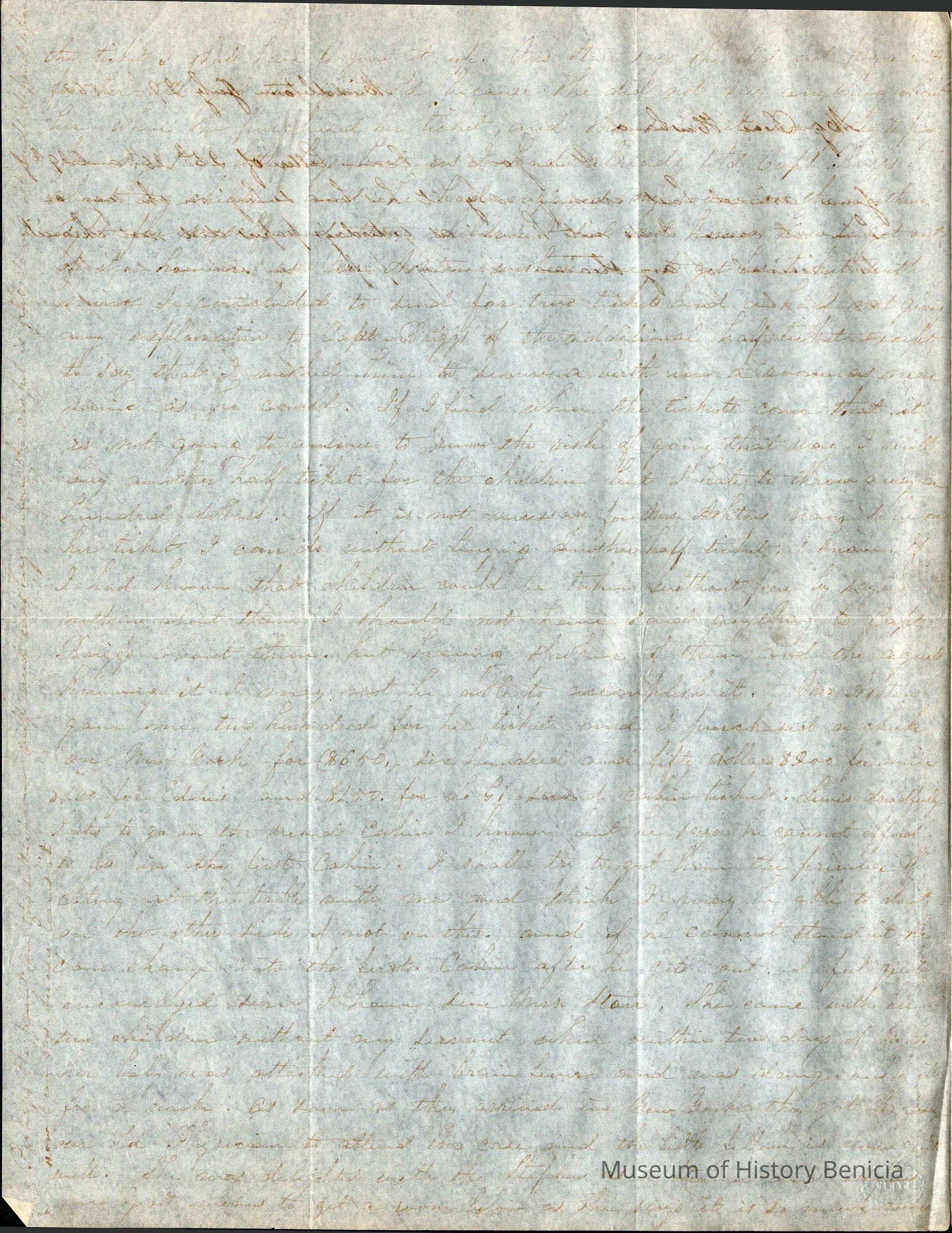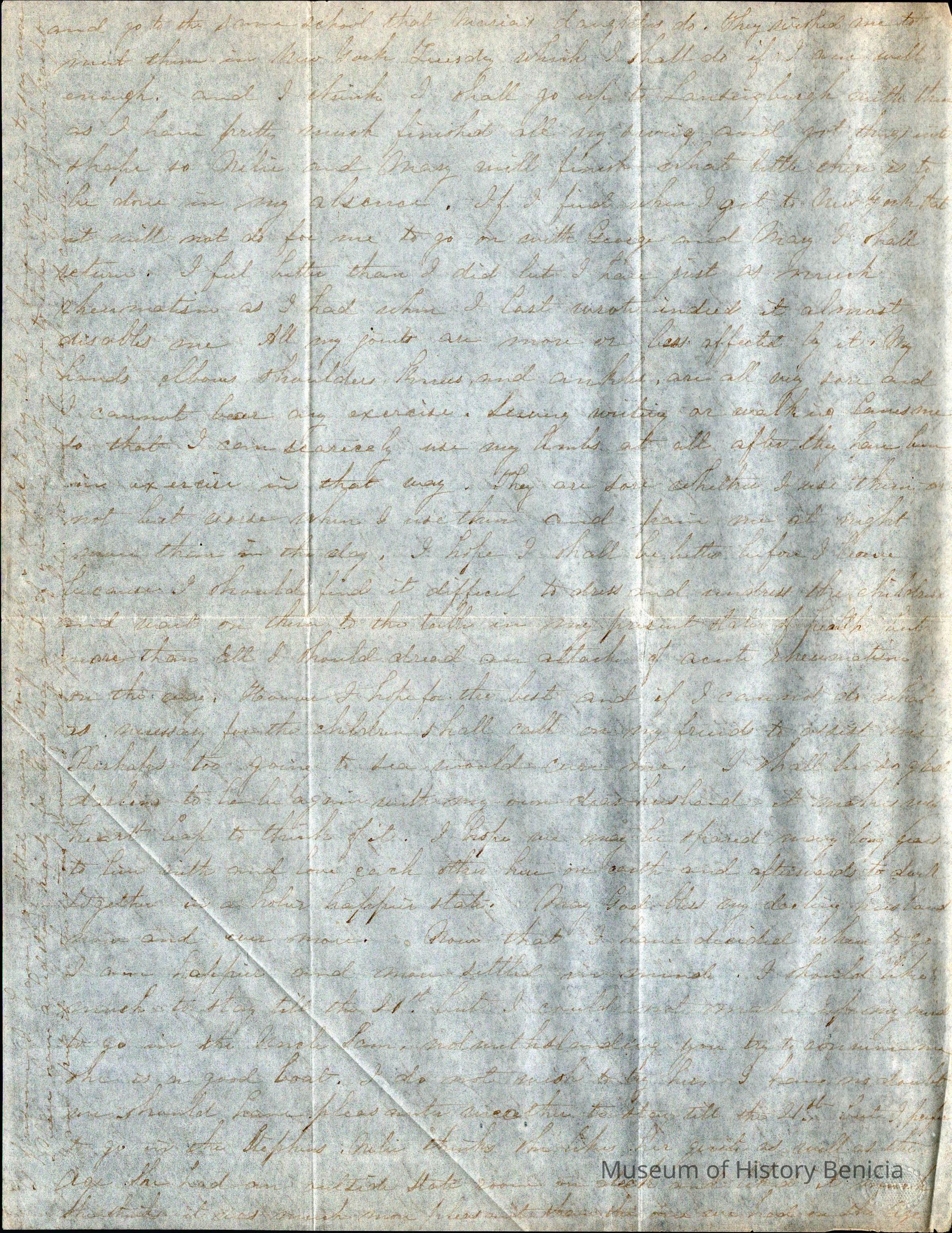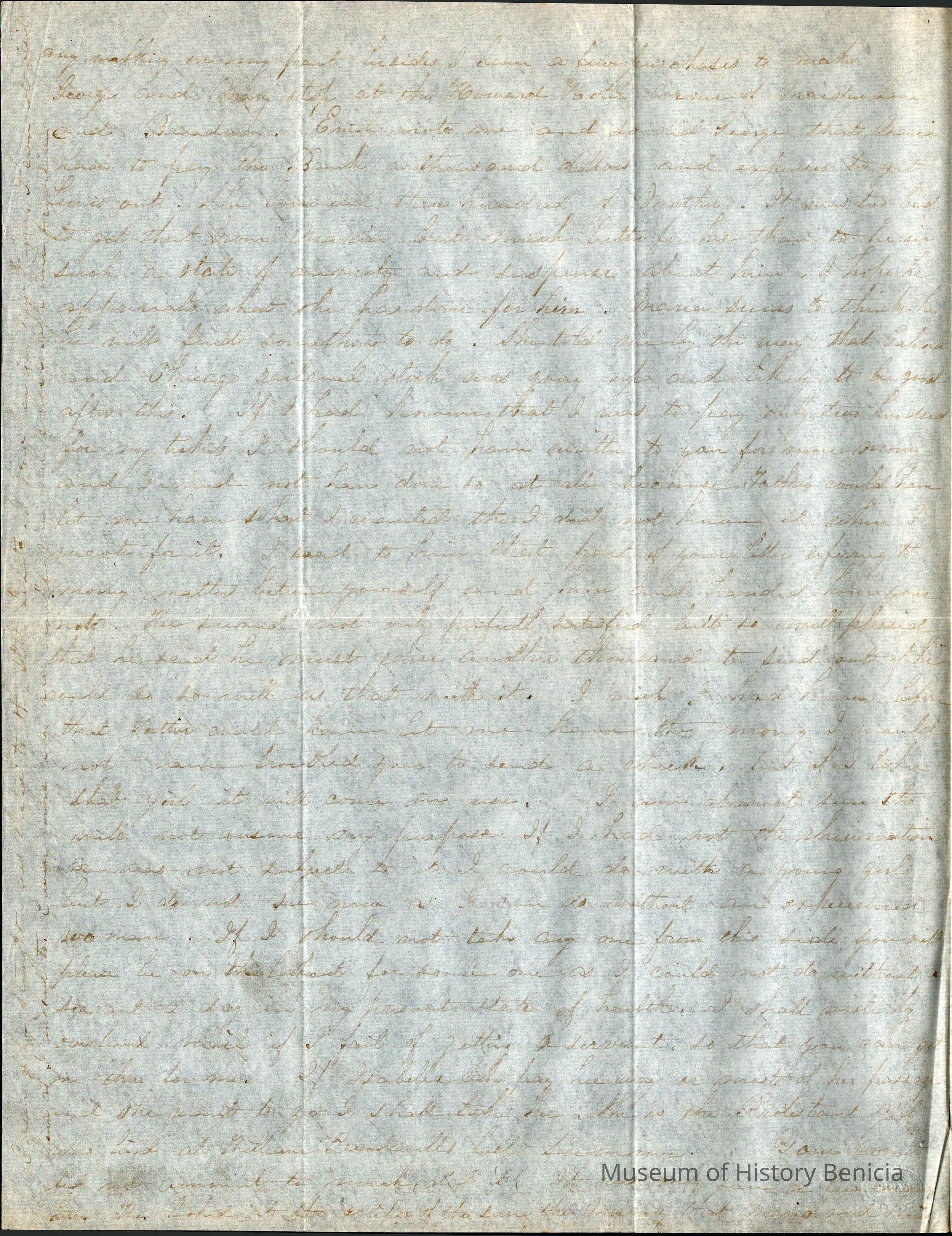 This is a letter from Lucy Wetmore Gray on the East Coast to her husband Samuel C Gray in Benicia.