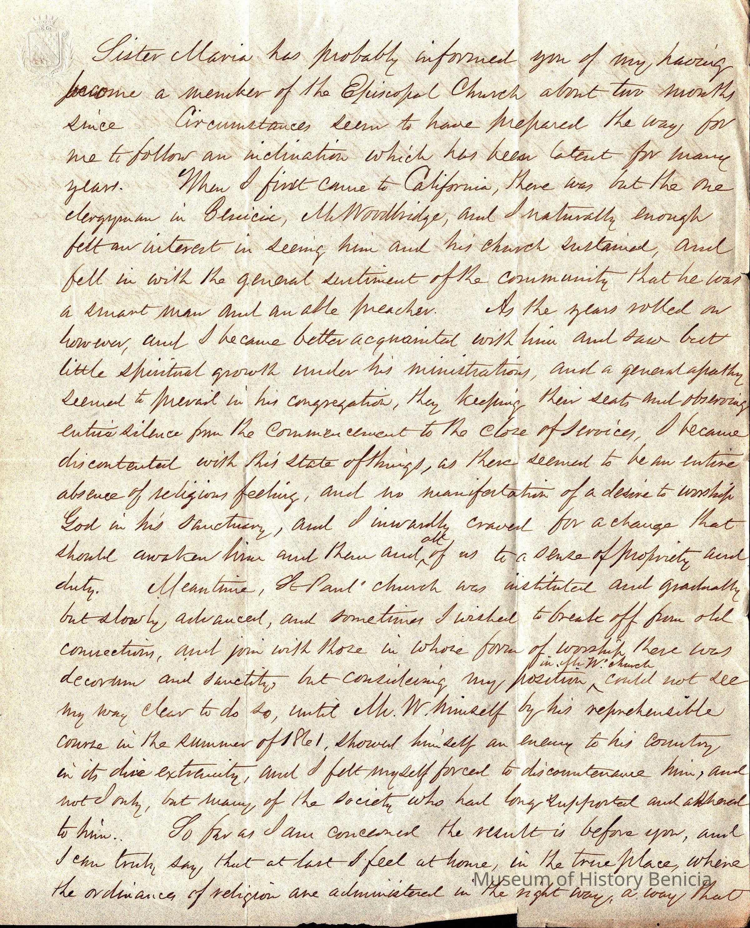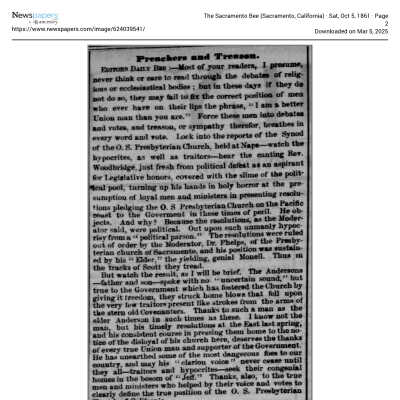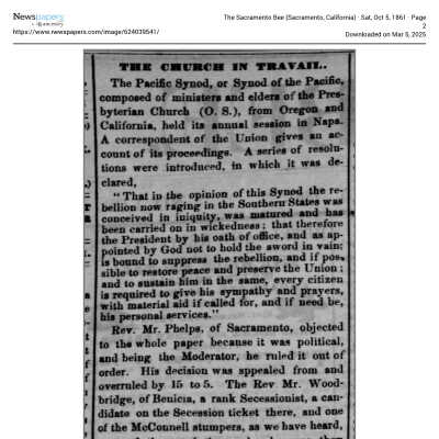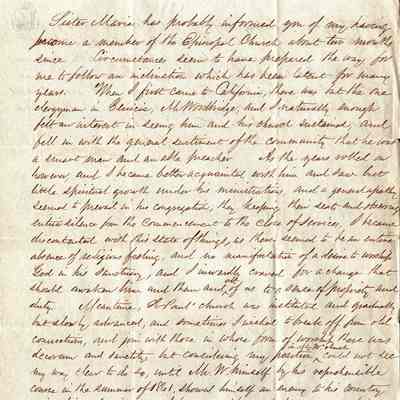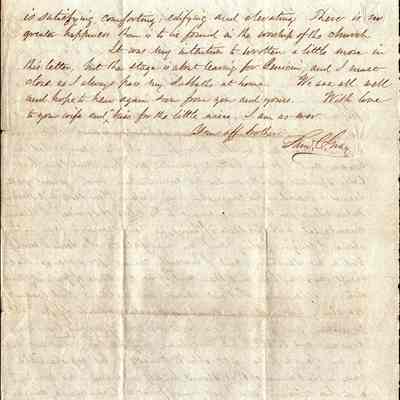 At the end of this letter, he explains why he left Woodridge's Church and joined the St. Paul's Congregation. In part, this was because of Mr. Woodridge's support of the Confederacy (see partial extract of Samuel's letter and newspaper articles of the time.).Collection