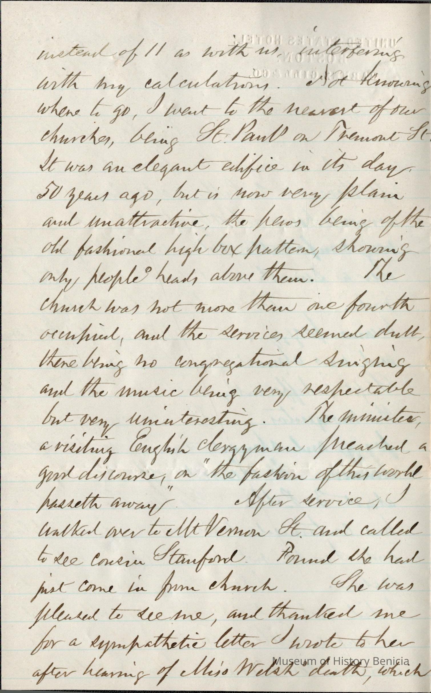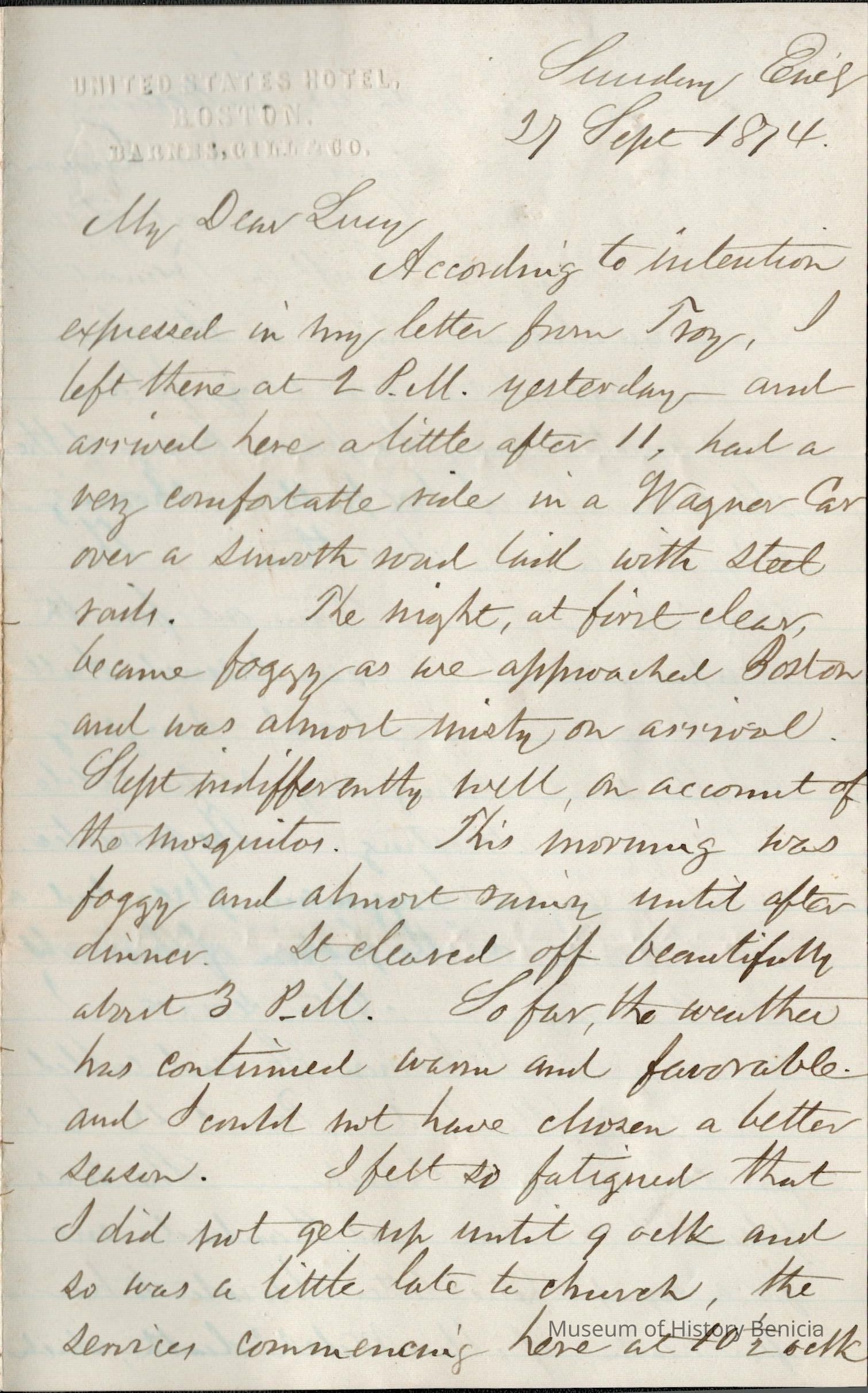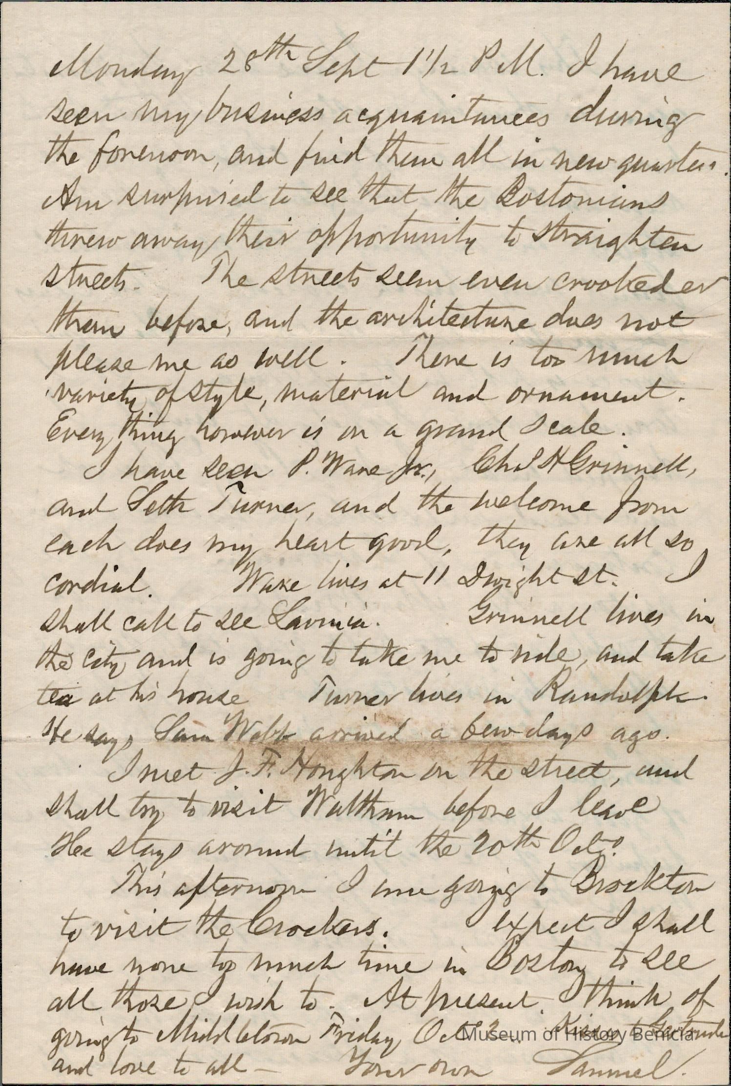 This is a letter from Samuel C Gray to his wife Lucy Wetmore Gray when he was visiting on the East Coast.