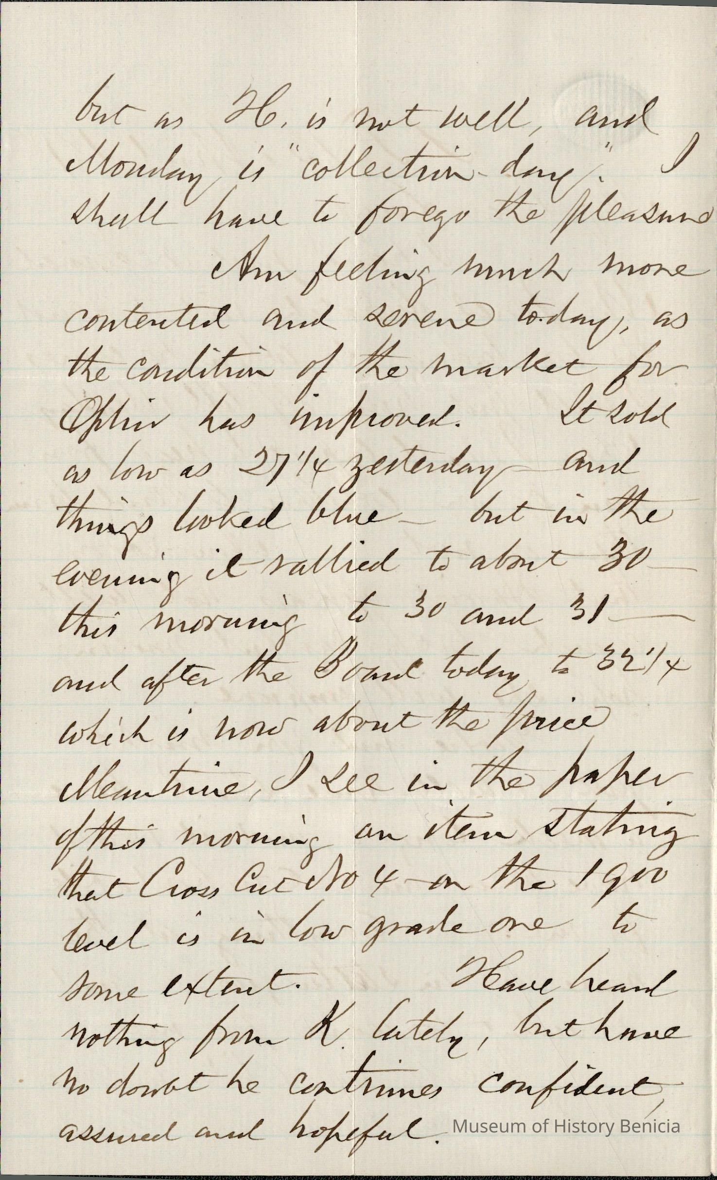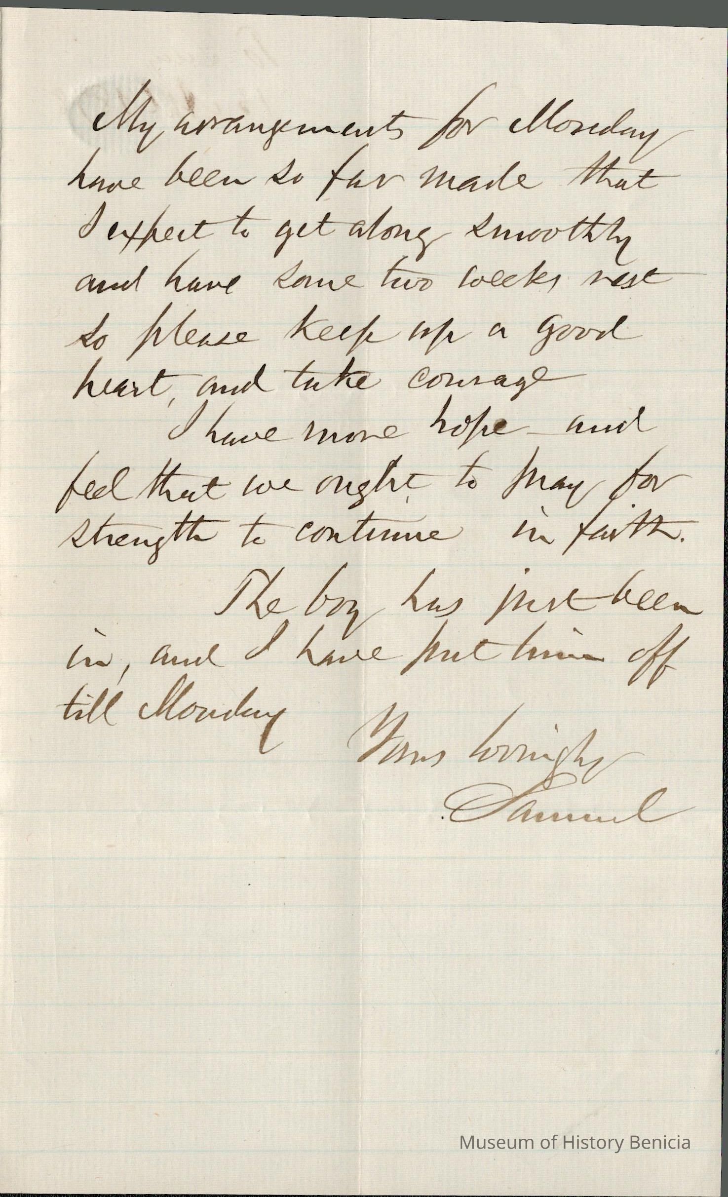 This is a letter from Samuel C Gray to his wife Lucy Wetmore Gray when he was in San Francisco, CA.