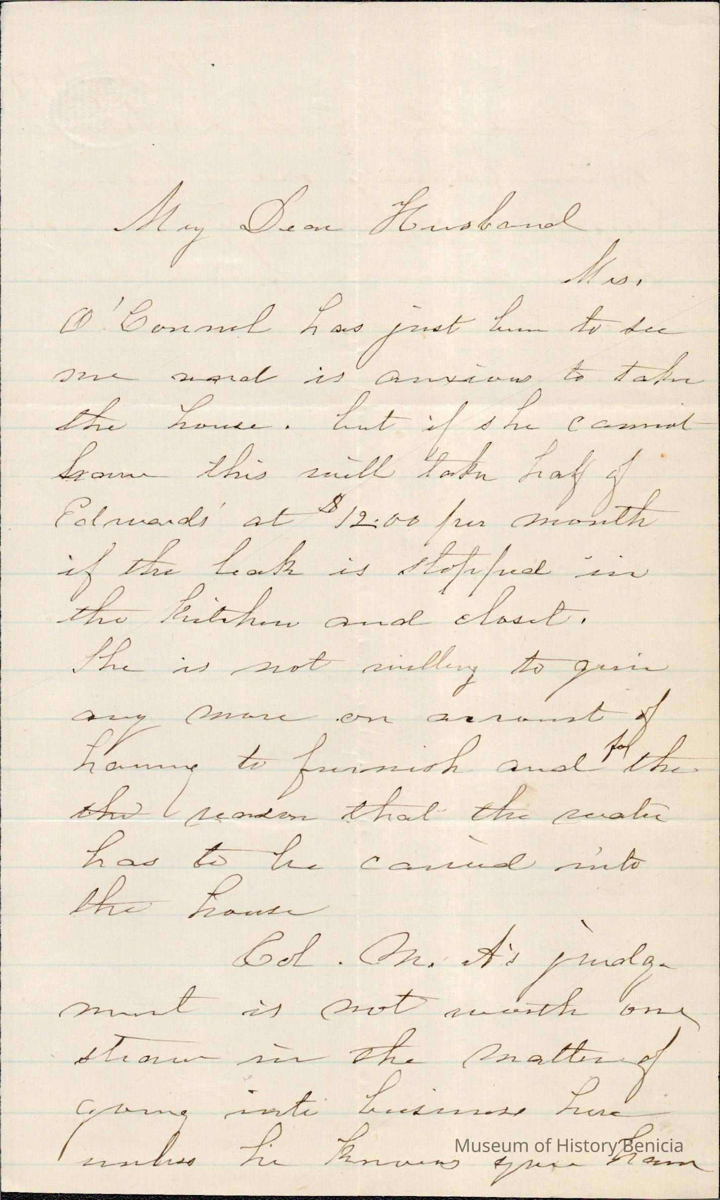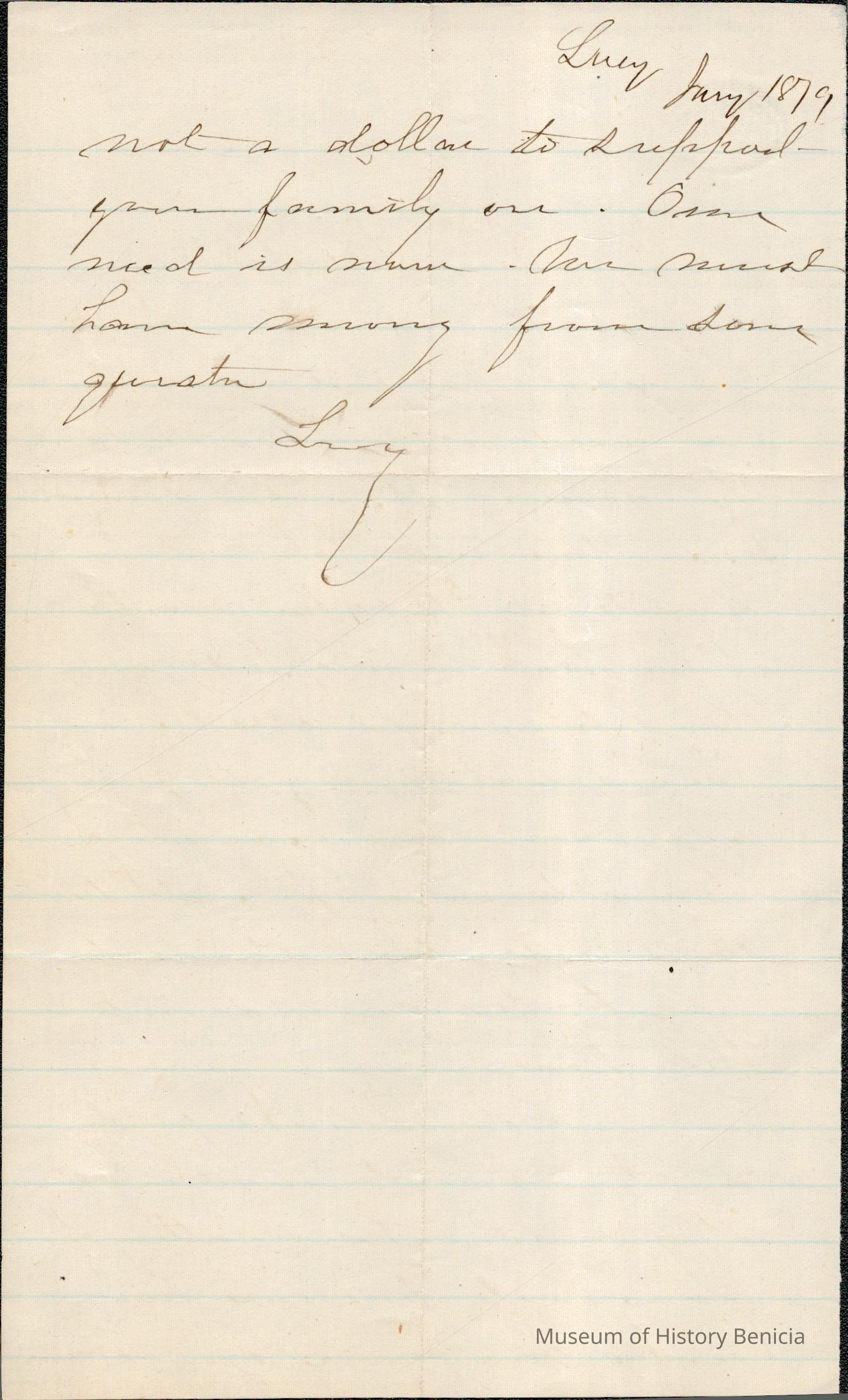 This is a letter from Lucy Wetmore Gray to Samuel Gray. The letter does not have the date shown but the estimated date is 01/1879.