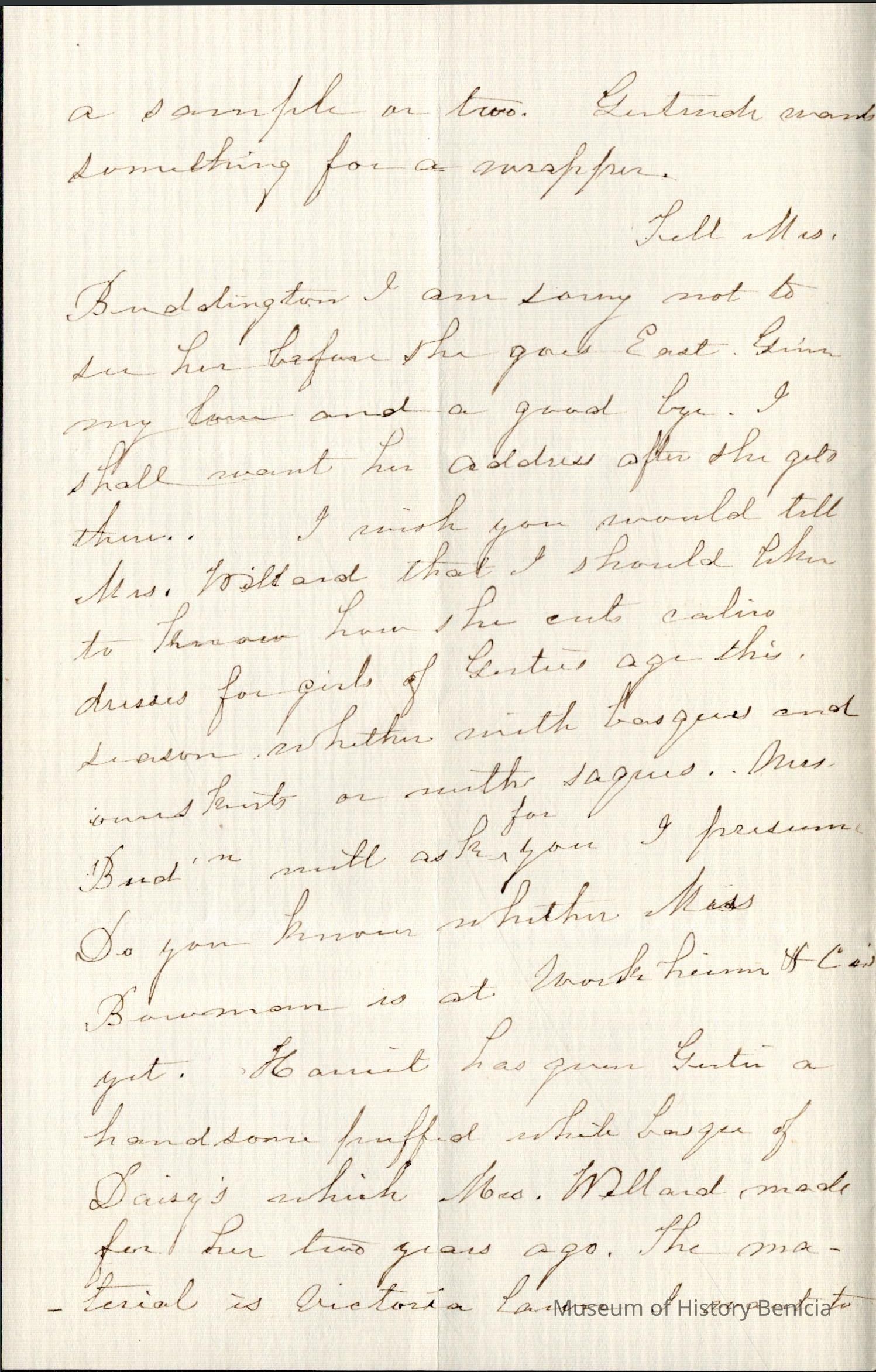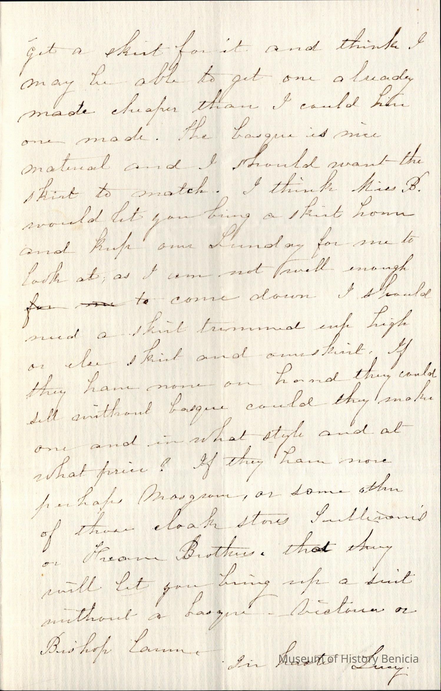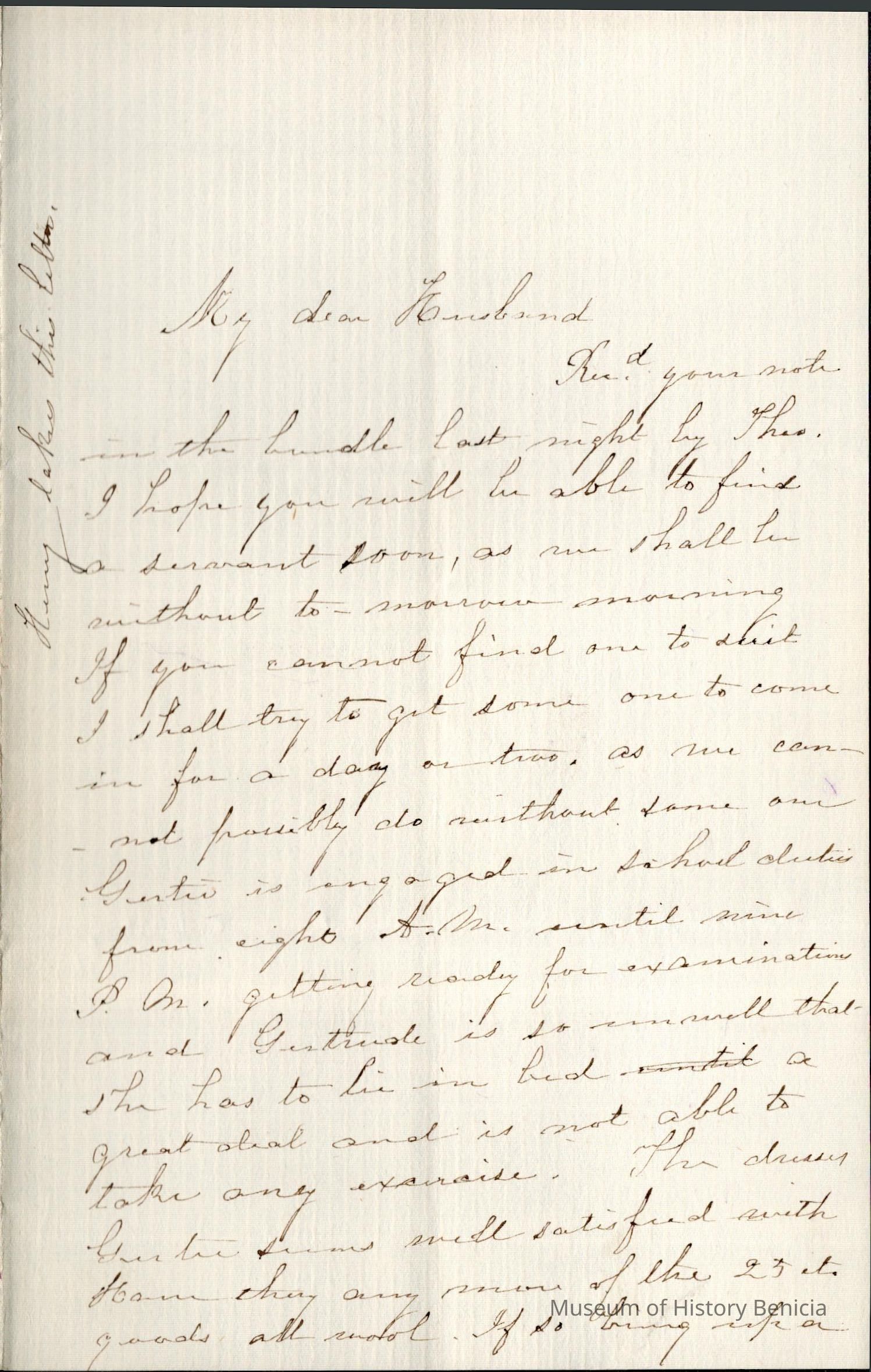 This is a letter from Lucy Gray in Benicia to Samuel Gray probably in San Fracisco.