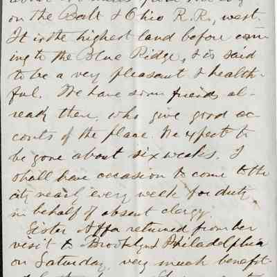 This is a letter dated 07/11/1881 from Mr. Edward Powers Gray to Mr. Samuel C. Gray regarding mainly family matters. Edward is taking his family to the country, Mt. Airy, for rest and health reasons. He talks about his daughter's travels and congratulates Samuel's son Theo on graduating from law school.