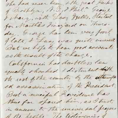 He mentions the assassination attempt on President Garfield and praises the reaction from the country. (The President later dies from his wounds.)