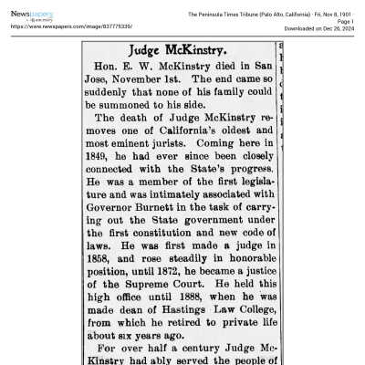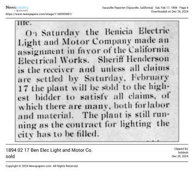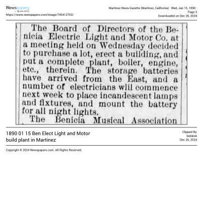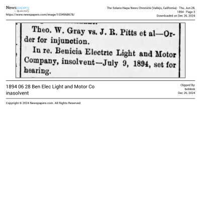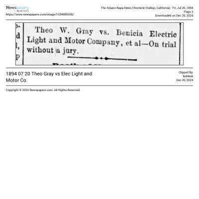 The image shows a handwritten letter from Samuel Gray to his son Theo Gray on Benicia Electric Light and Motor Co. stationery, dated November 29, 1890. The letter is written in cursive, detailing financial transactions related to Theo's bills related to Benicia Light Electric and Motor Co., totaling $6.24. Samuel Gray explains that he has paid certain bills and requests Theo to draw a check or postal money order at his convenience. He mentions that "everything now here all well, dry and warm,". The letter ends with a personal anecdote about meeting S.W. Holladay and attending a lunch at the "Bar Associations" rooms". Mr. Gray, Judge McKinstry and Mr. Holladay all came to California on the Panama in May 1849. They enjoyed reminiscing about 1849 times.