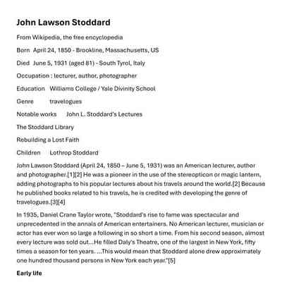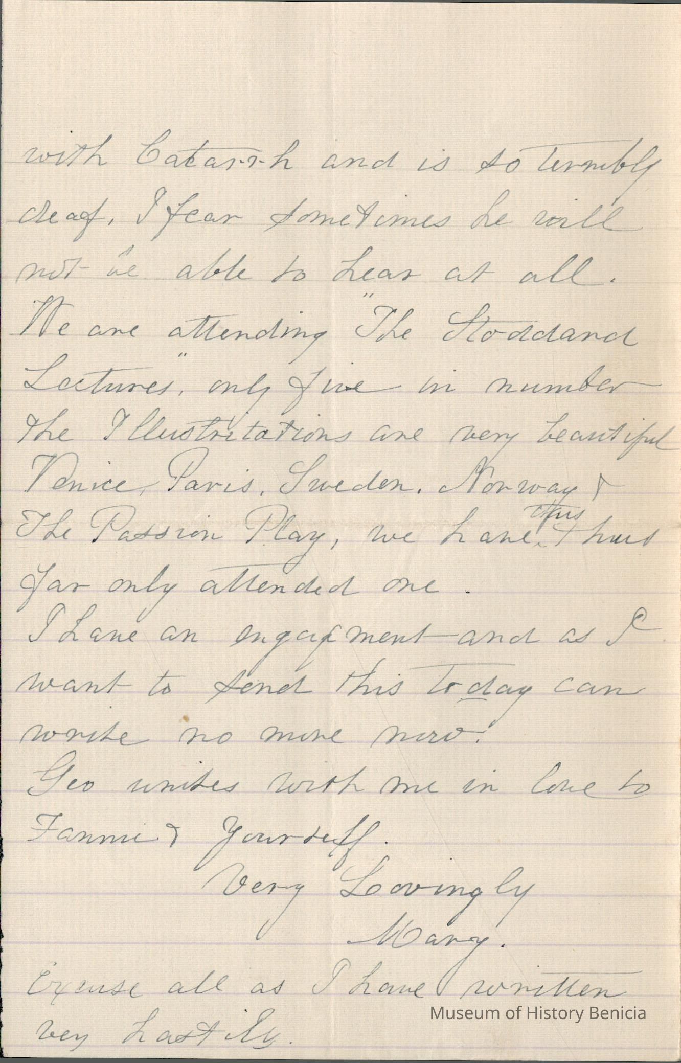 At the end she says they are going to the Stoddard lectures. Stoddard was a world traveler who gave lectures about his travels using photographs using the magic lantern projector and glass slides.