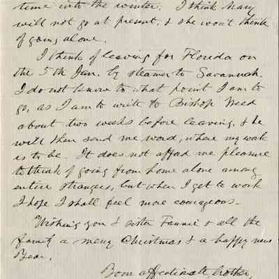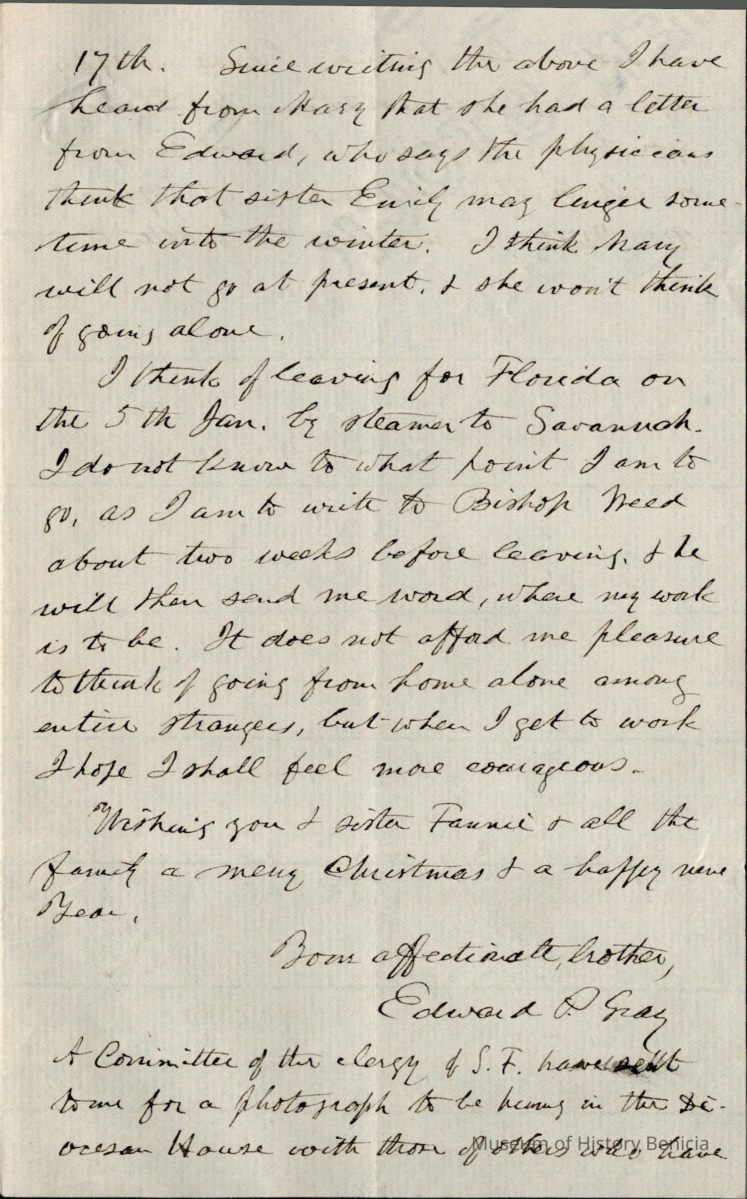 At the end he mentions going to Florida with the Bishop's approval. He also says the clergy in San Francisco have asked for a photo of him as one of the clergies that have served there. He thinks Samuel's son Arthur can make a copy of the photo Samuel has. (Arthur is a professional photographer.)