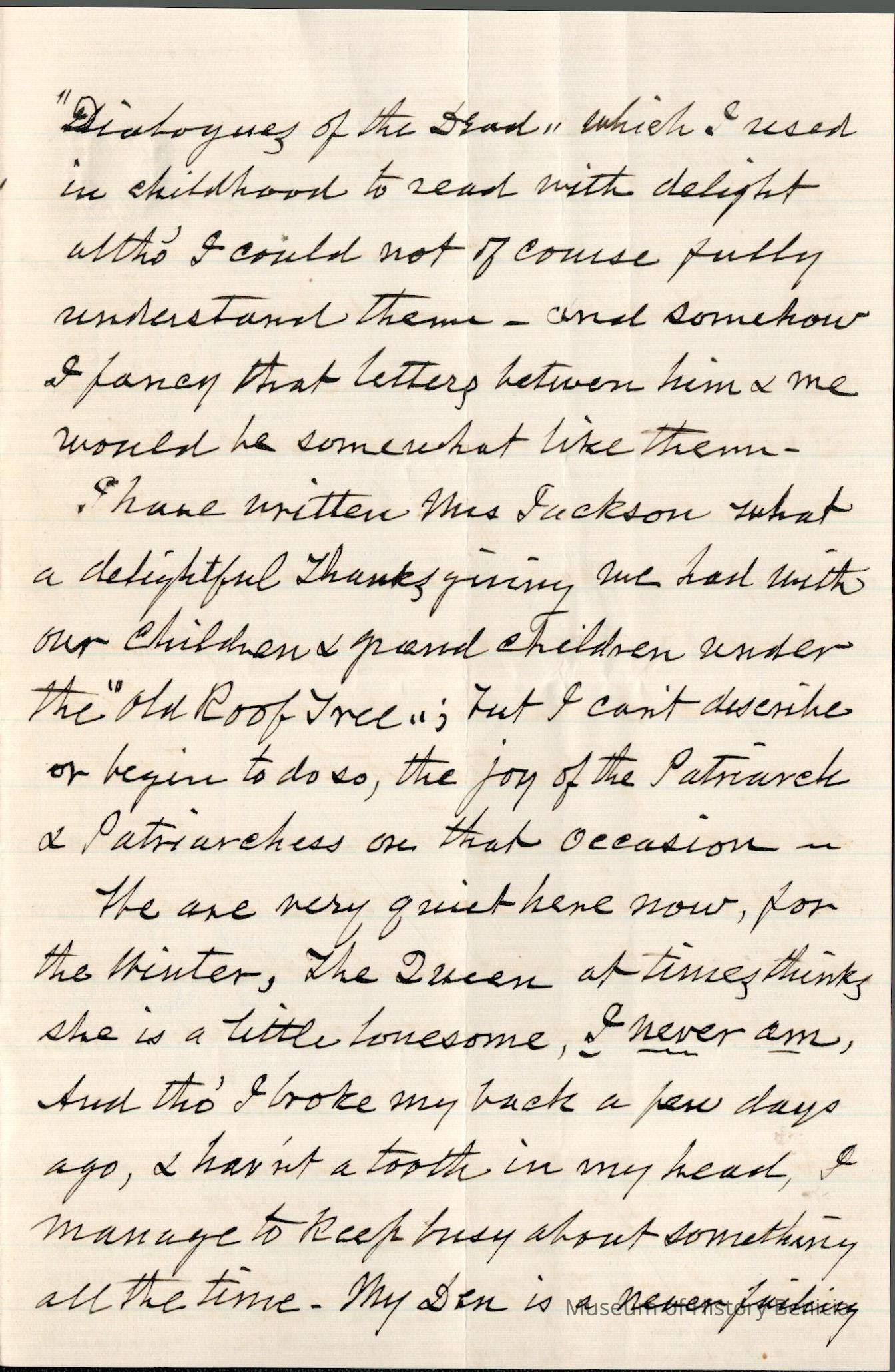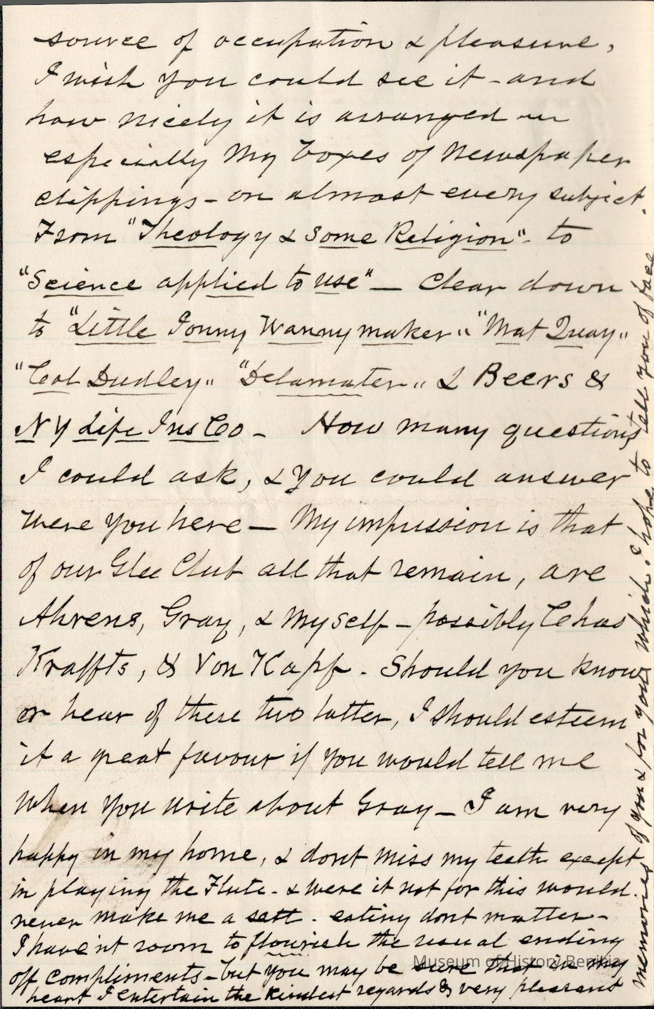 This is a letter dated 12/unk/1891 from William Pratt to Sarah L Dennie who sent it to Mrs. Mary Gray Morton who sent it to her brother Mr. Samuel C. Gray. (The letter from Sarah L. Dennie is 348.2 and one from Mary Morton is accessioned as 348.1).