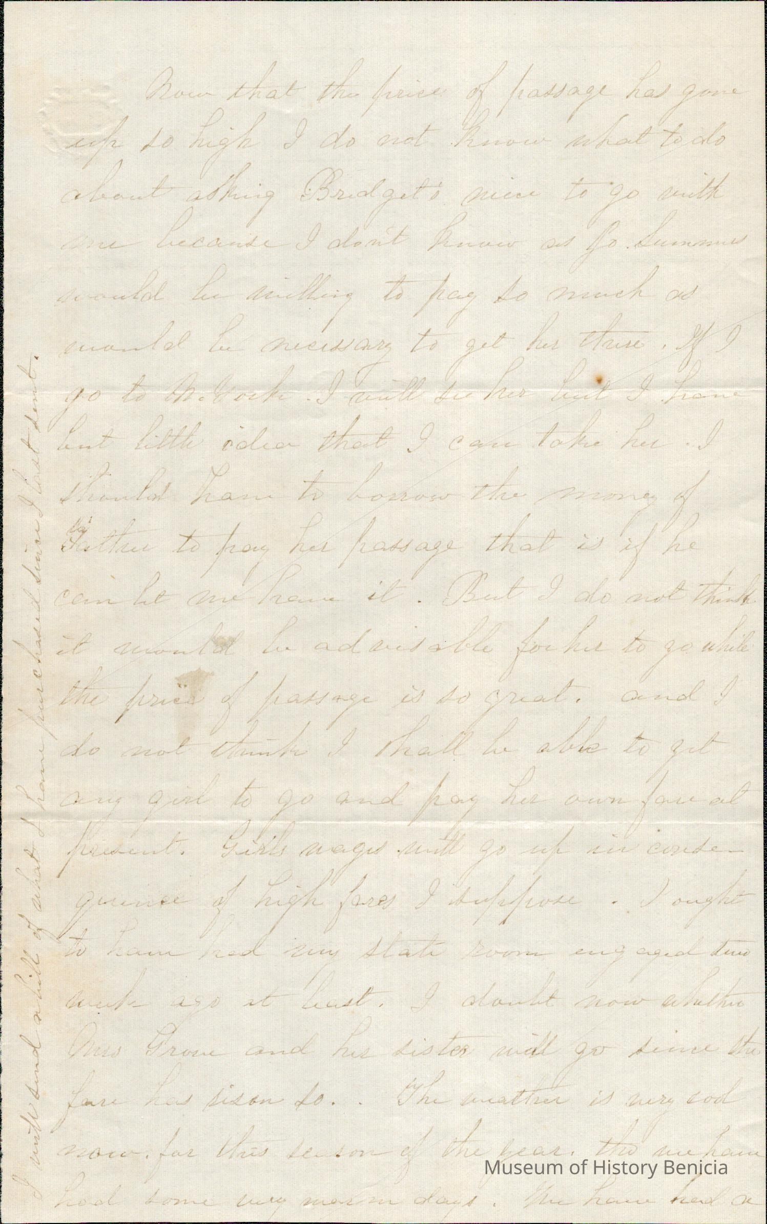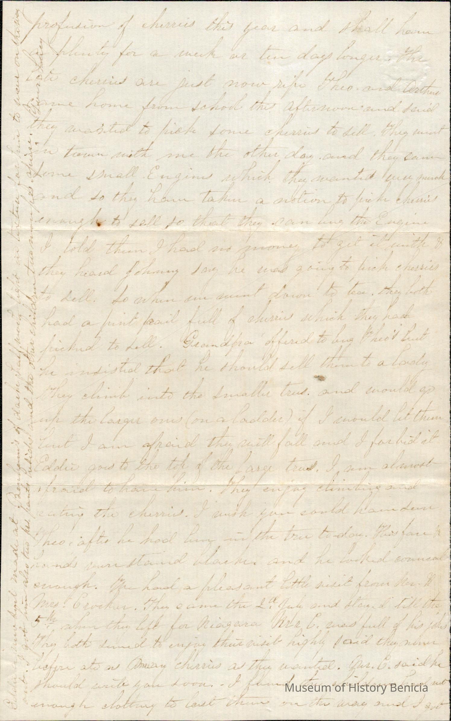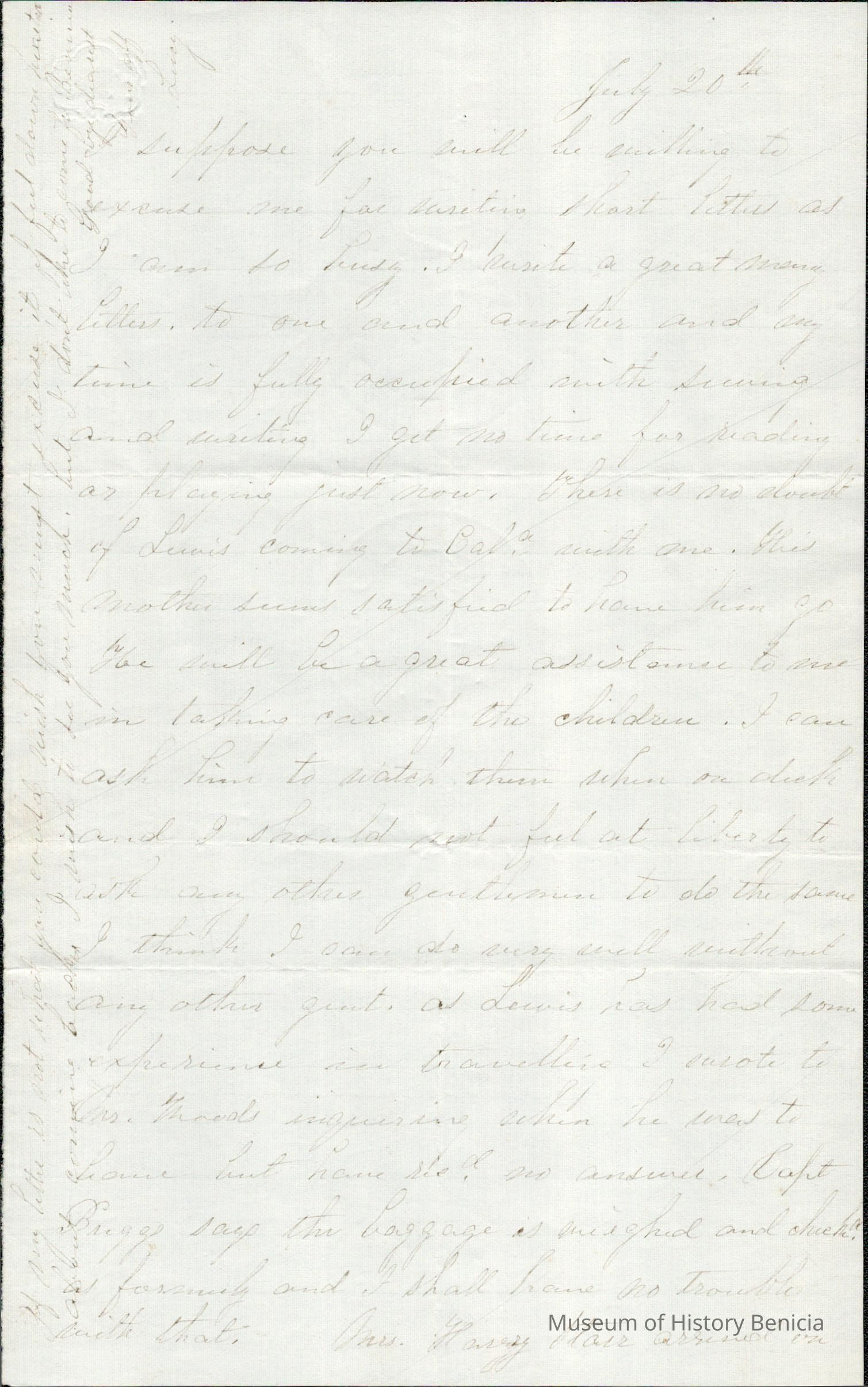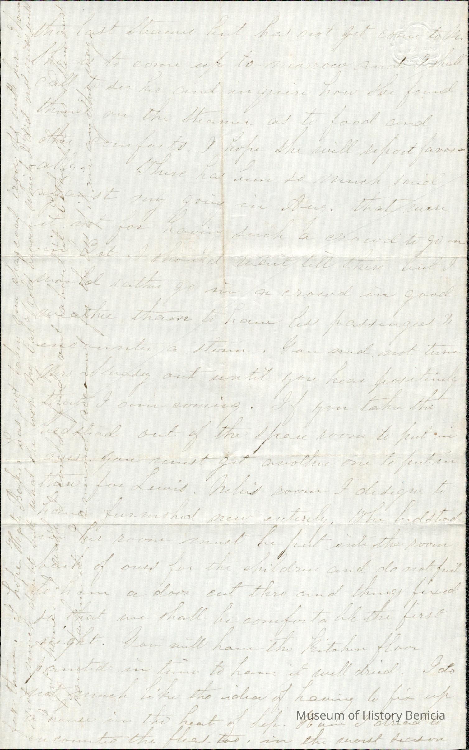 This is a letter from Lucy Wetmore Gray on the East Coast, to Samuel Gray when he was in Benicia. The letter does not have the year shown.