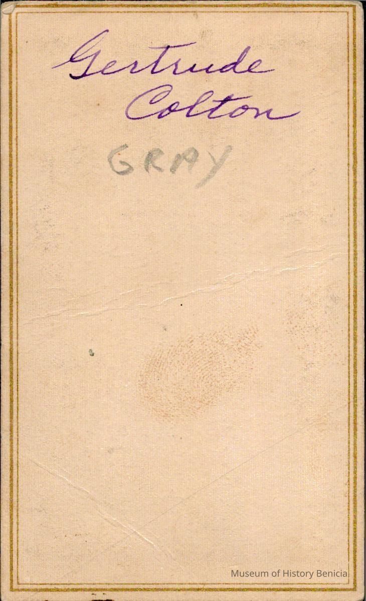 This is a carte de visite of Gertrude Colton Gray. She is related to Samuel Cotton Gray.