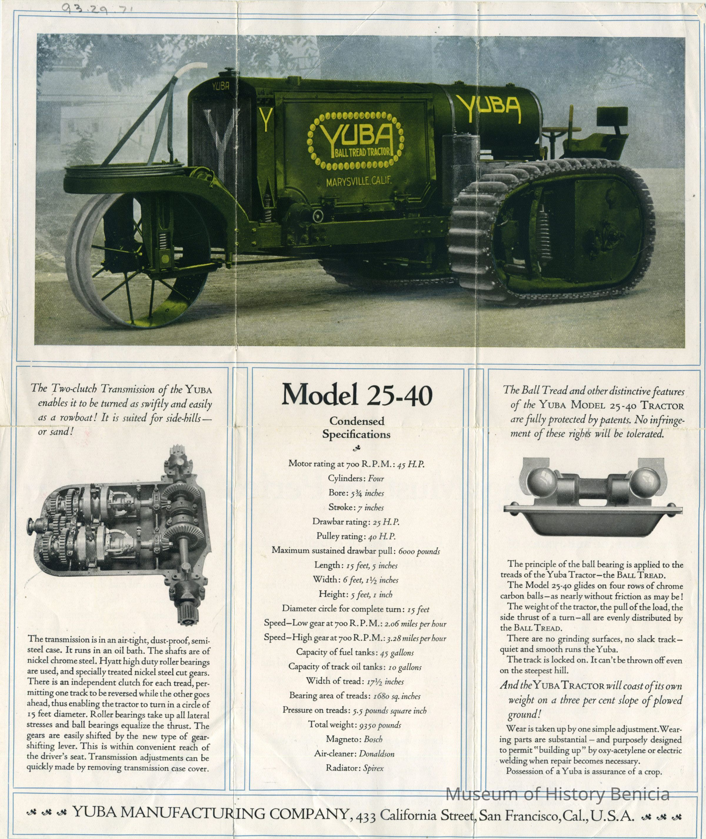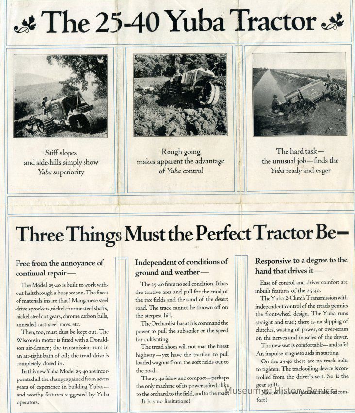 Advertisement flyer for Yuba 25-40 tractor. 2 sided. good color photo of tractor.