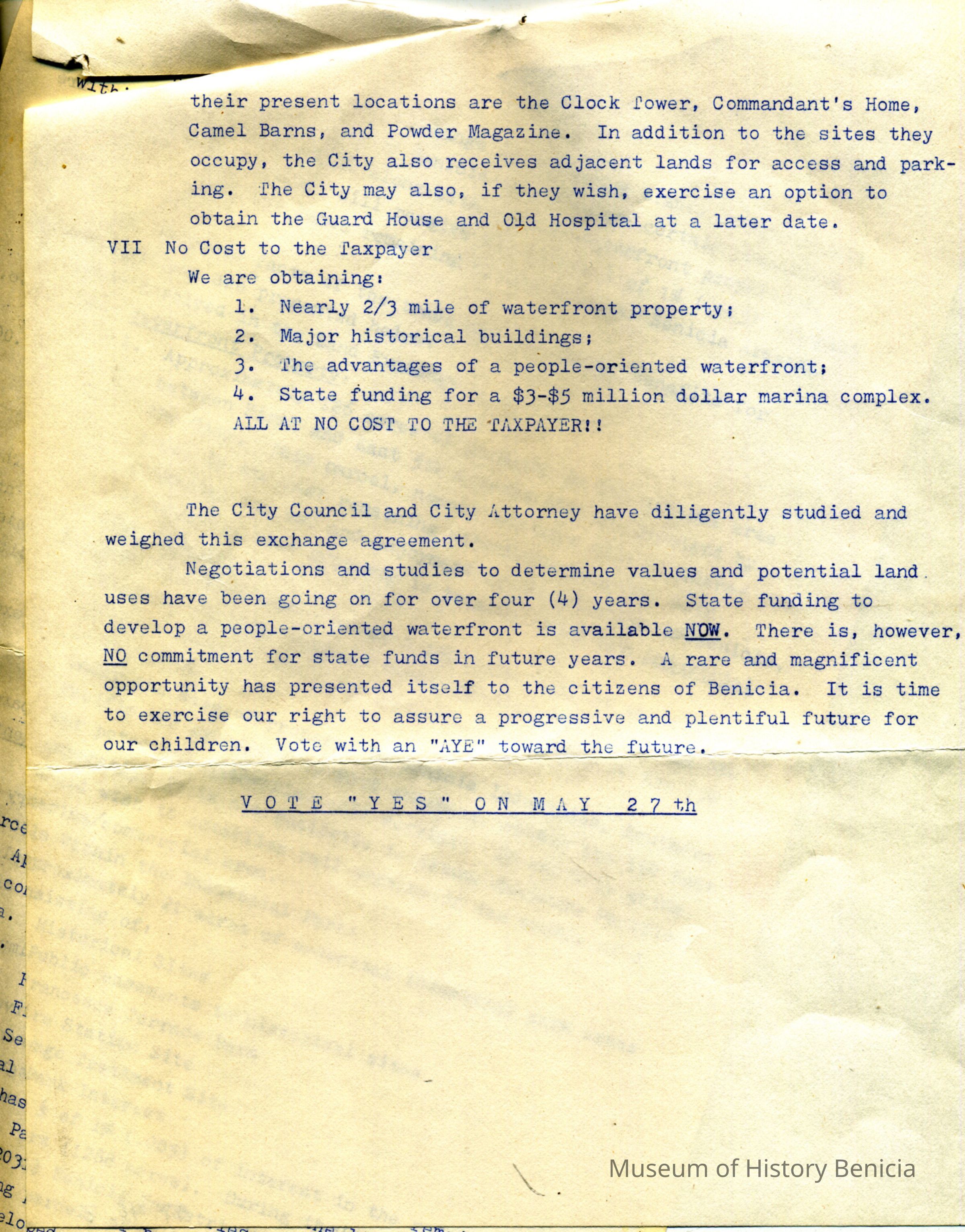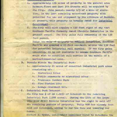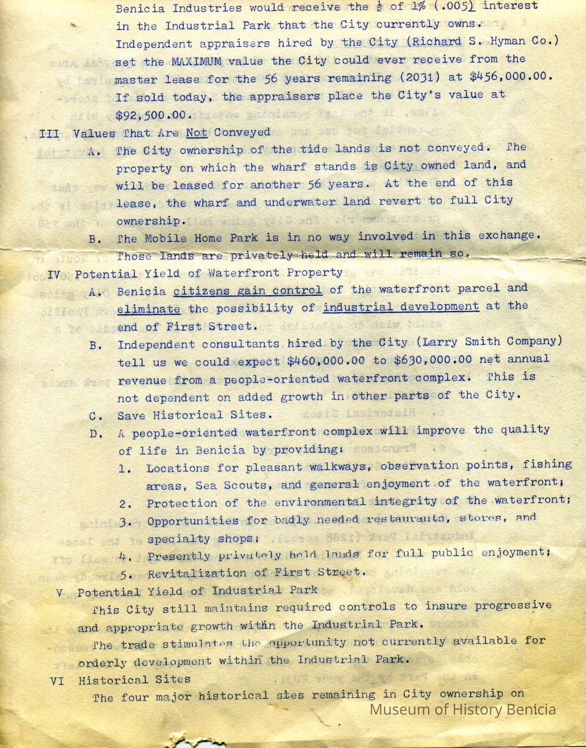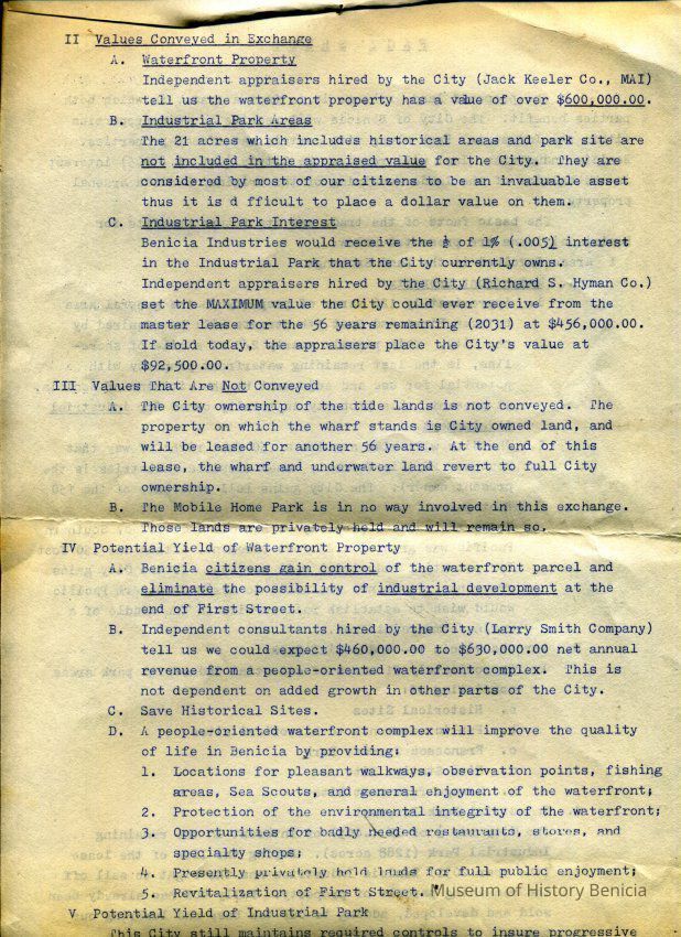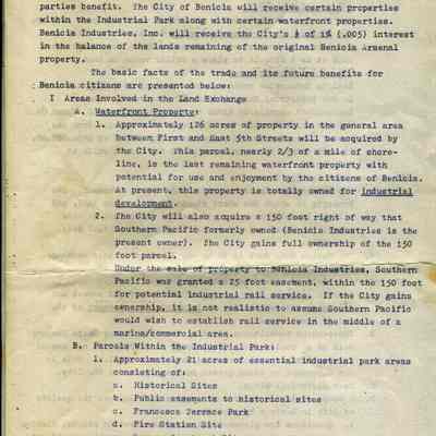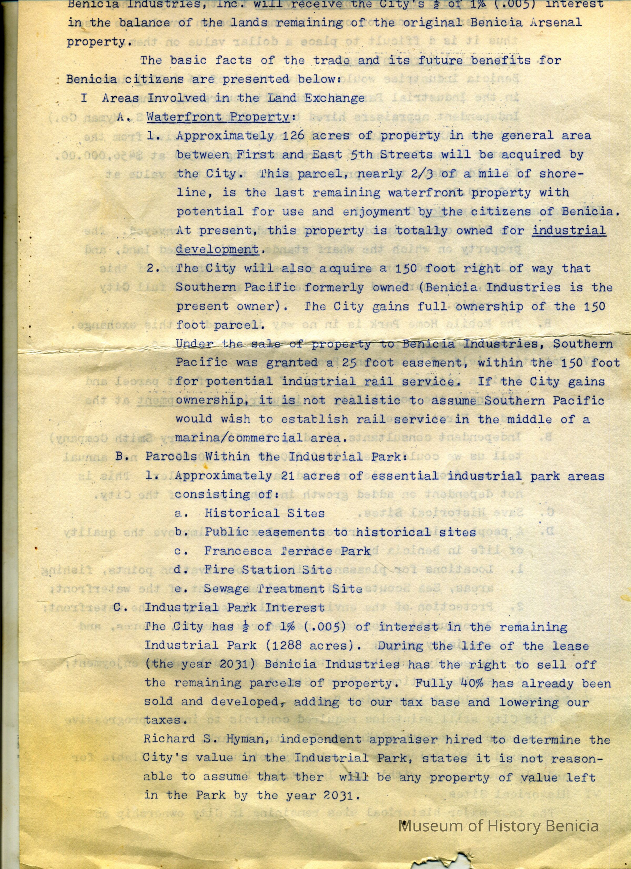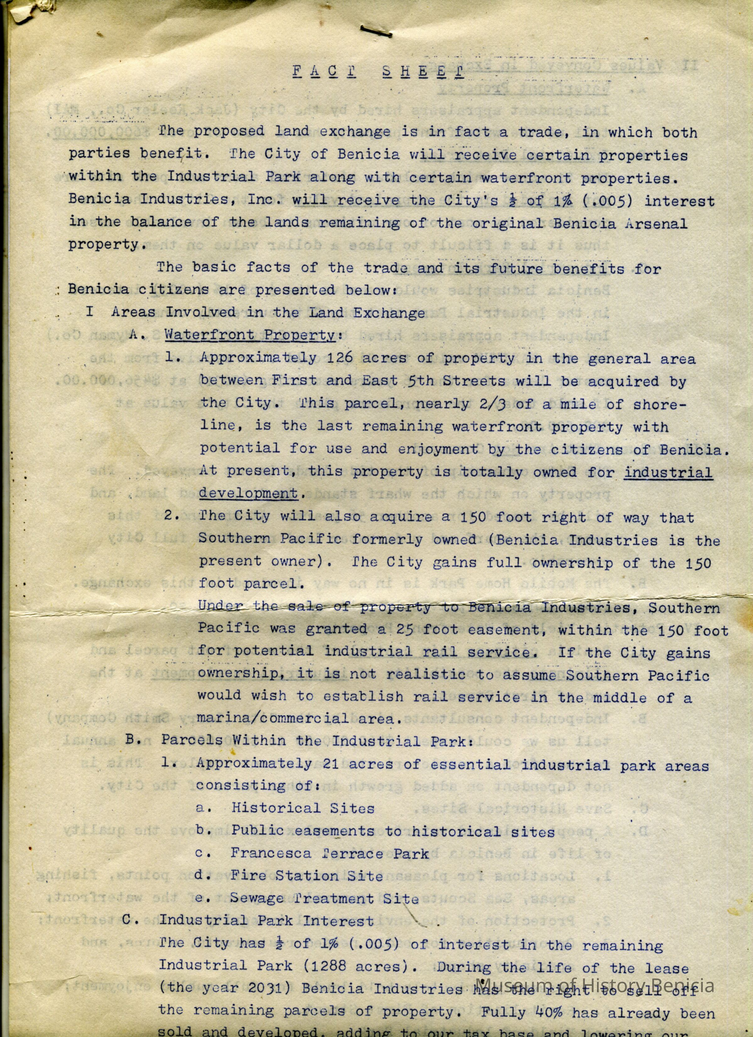 RE: the proposed land exchange between the City of Benicia and the Industrial Park