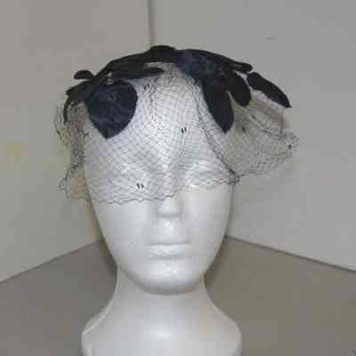 Black net with black leaves plus velvet ribbon