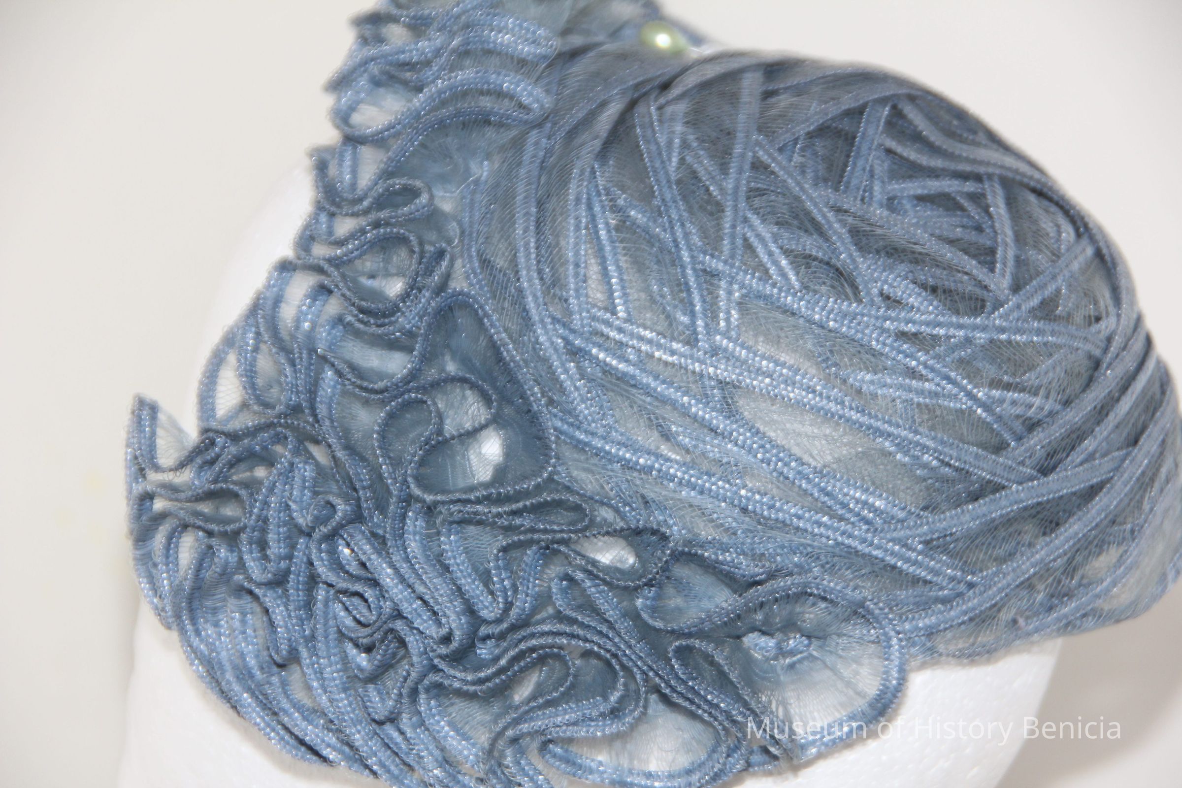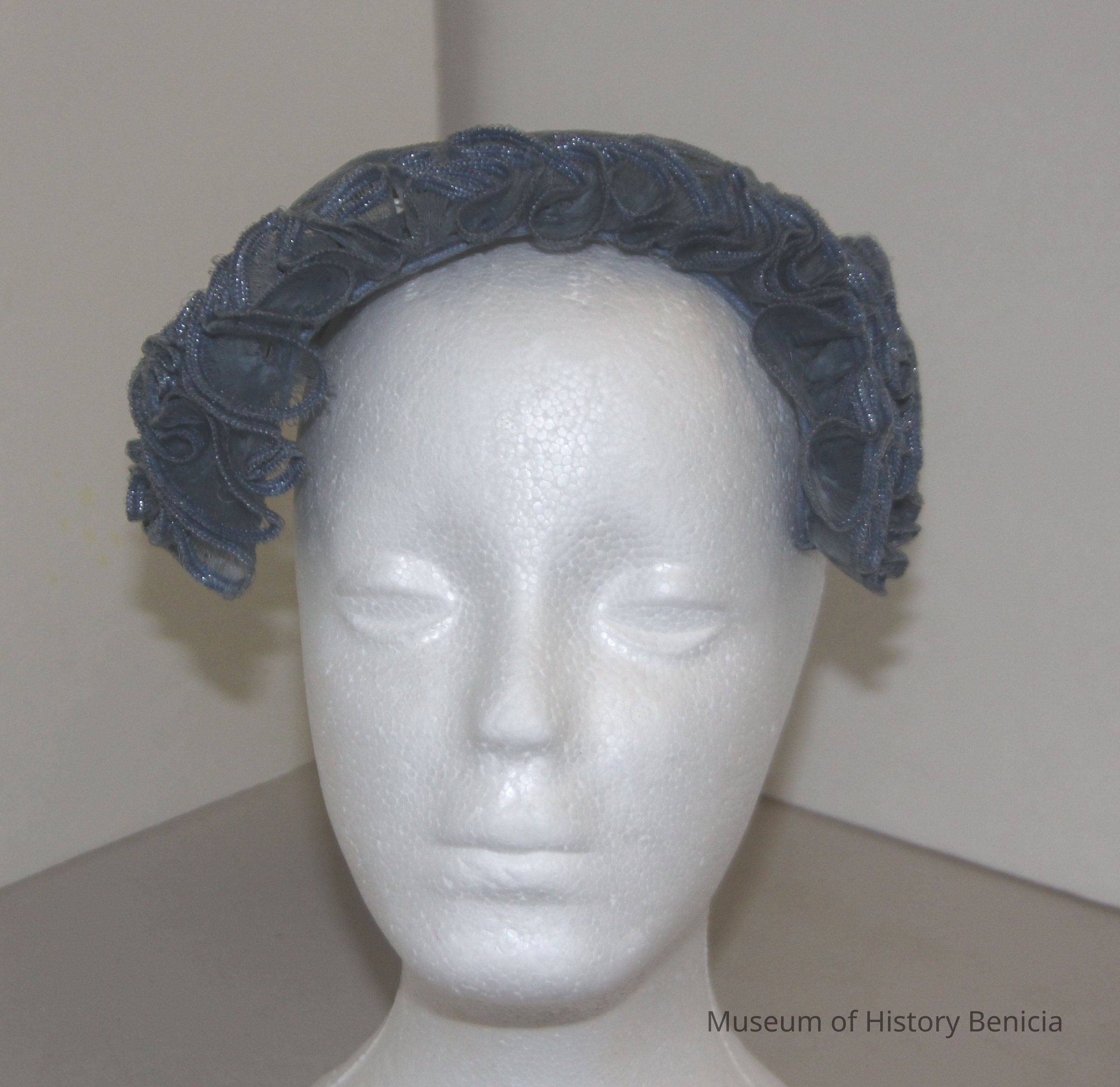 Blue grey skull band ruffles aruond face