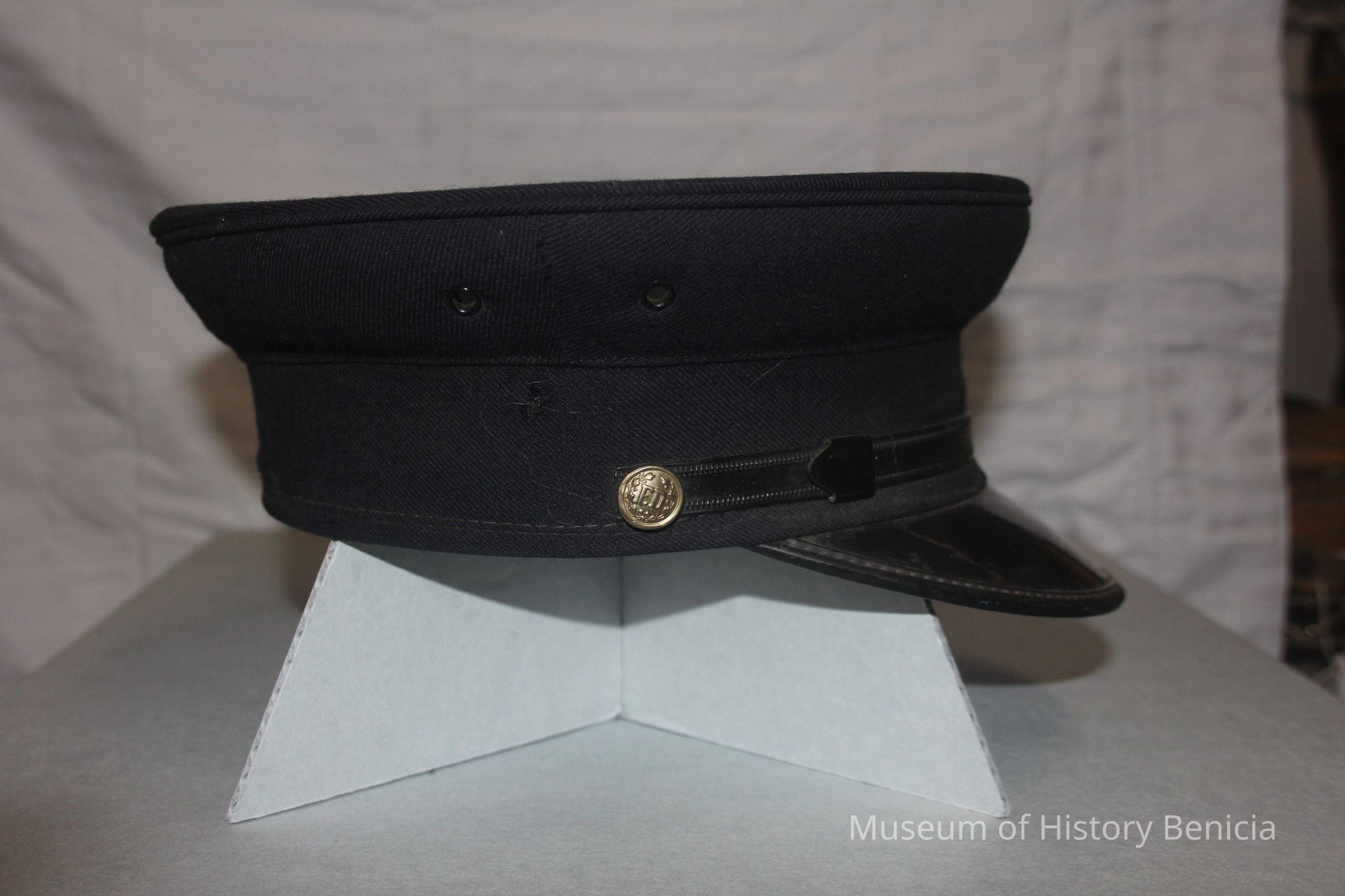 Benicia Fire Dept blue wool station hat - Custom made by Head Master for FF Skip Candell 24 El Paso Union Made WPL 8916 All Wool Benicia Ca
